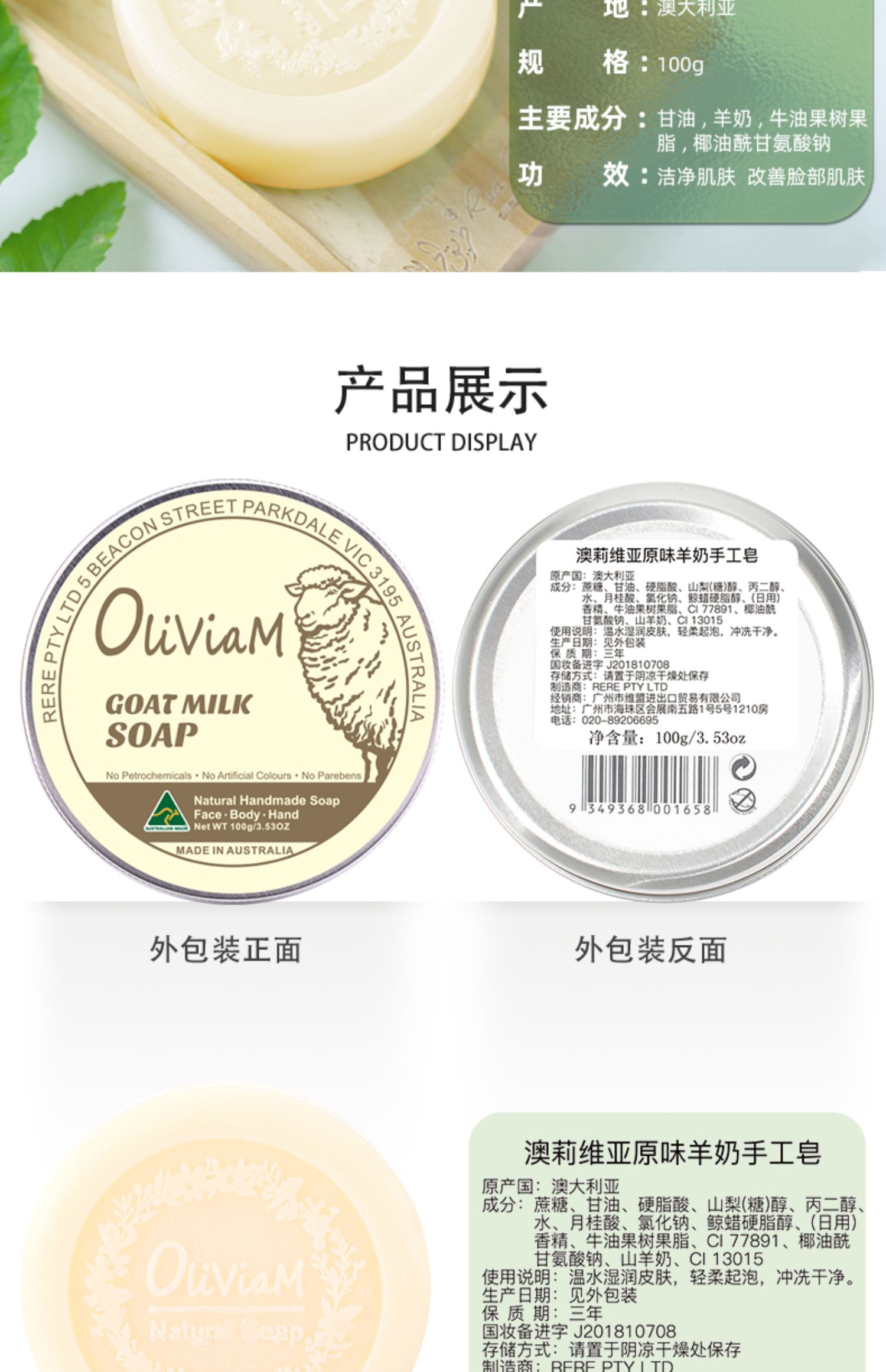 【35元会员福利】澳莉维亚山羊奶手工皂100g(葡萄籽/原味/橄榄)