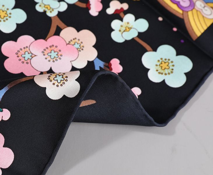 采用柔滑轻盈的桑蚕丝面料,搭配丝路山水卷轴的图案,致敬丝绸之路,整体布局均衡大气。