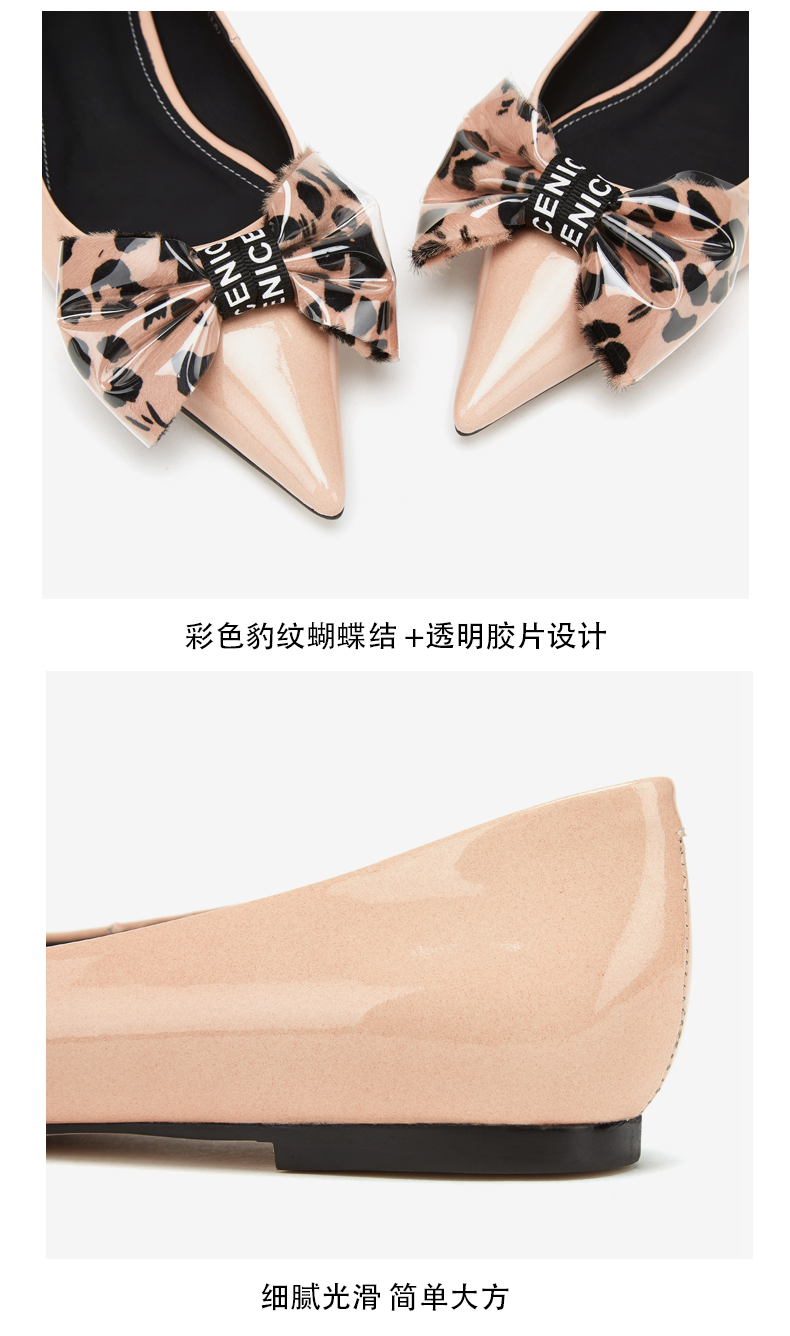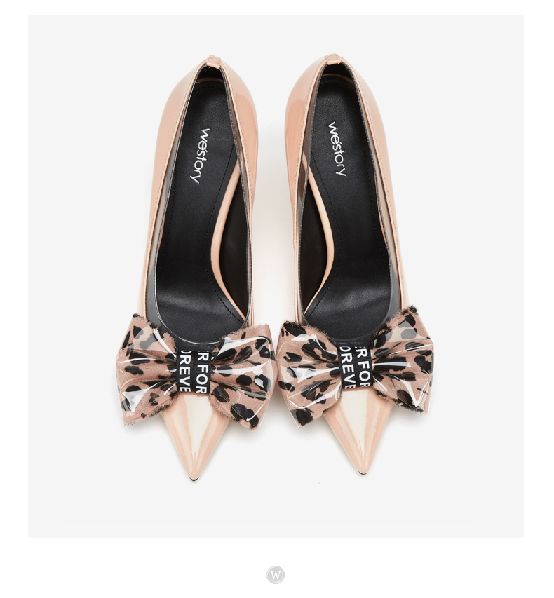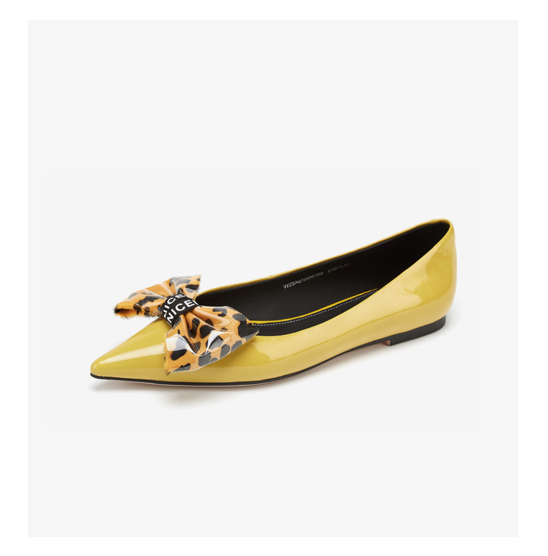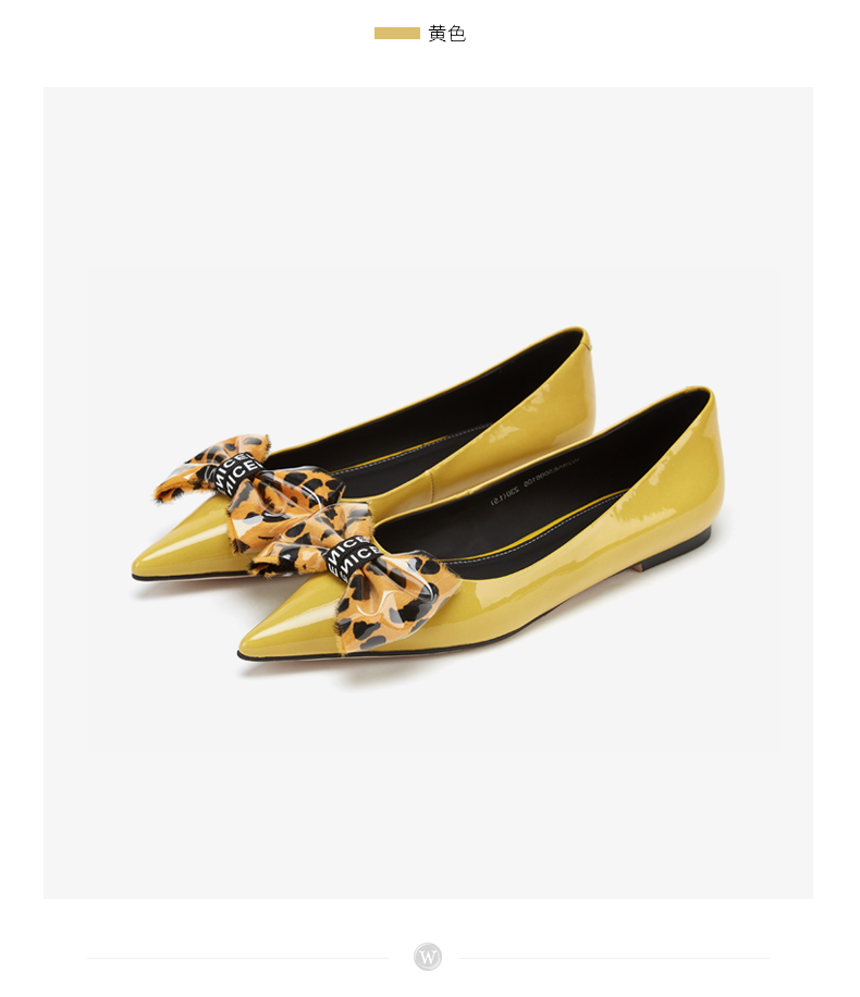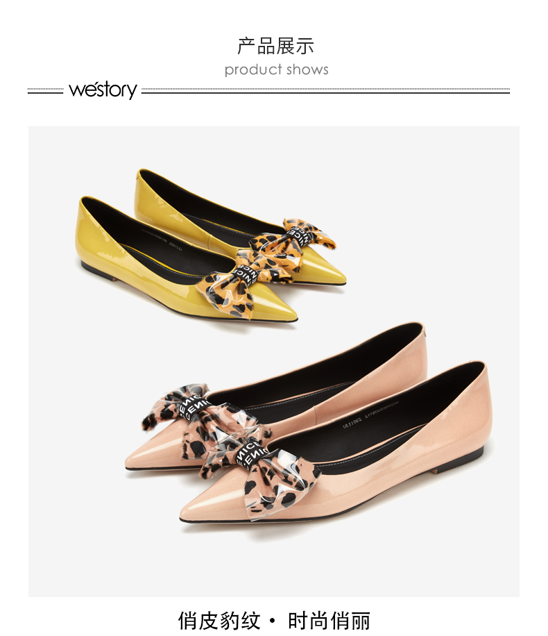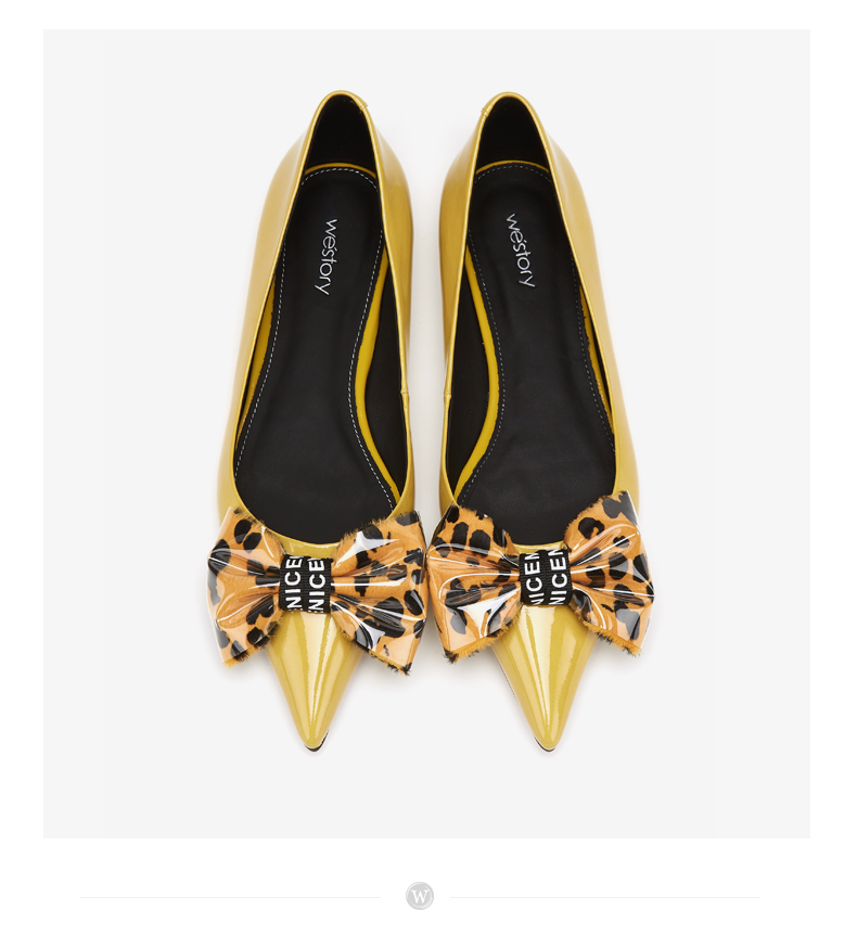 westory2019新款性感豹纹尖头平底单鞋女蝴蝶结休闲风W29AE50081
