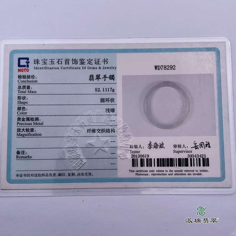 派瑞翡翠 翡翠手镯 糯种 浅绿