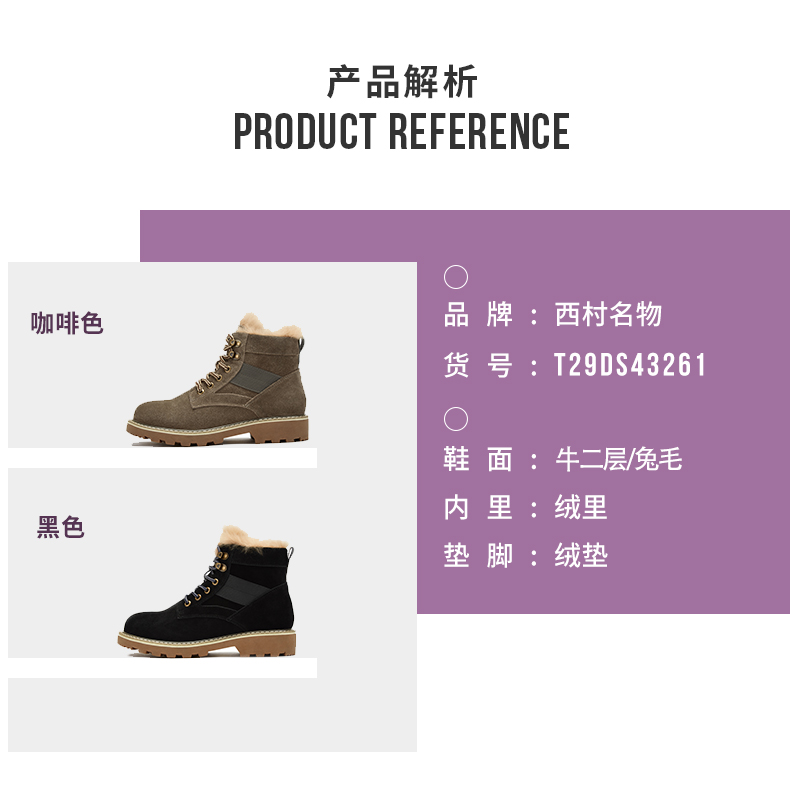 西村名物马丁靴女英伦风靴子短靴短筒百搭加绒冬款T29DS43261