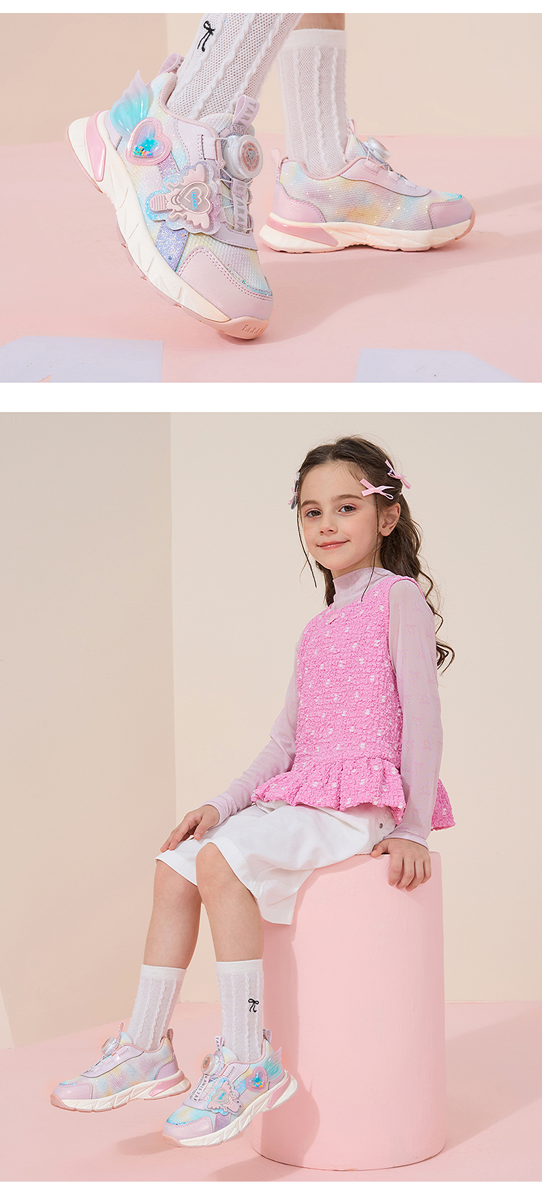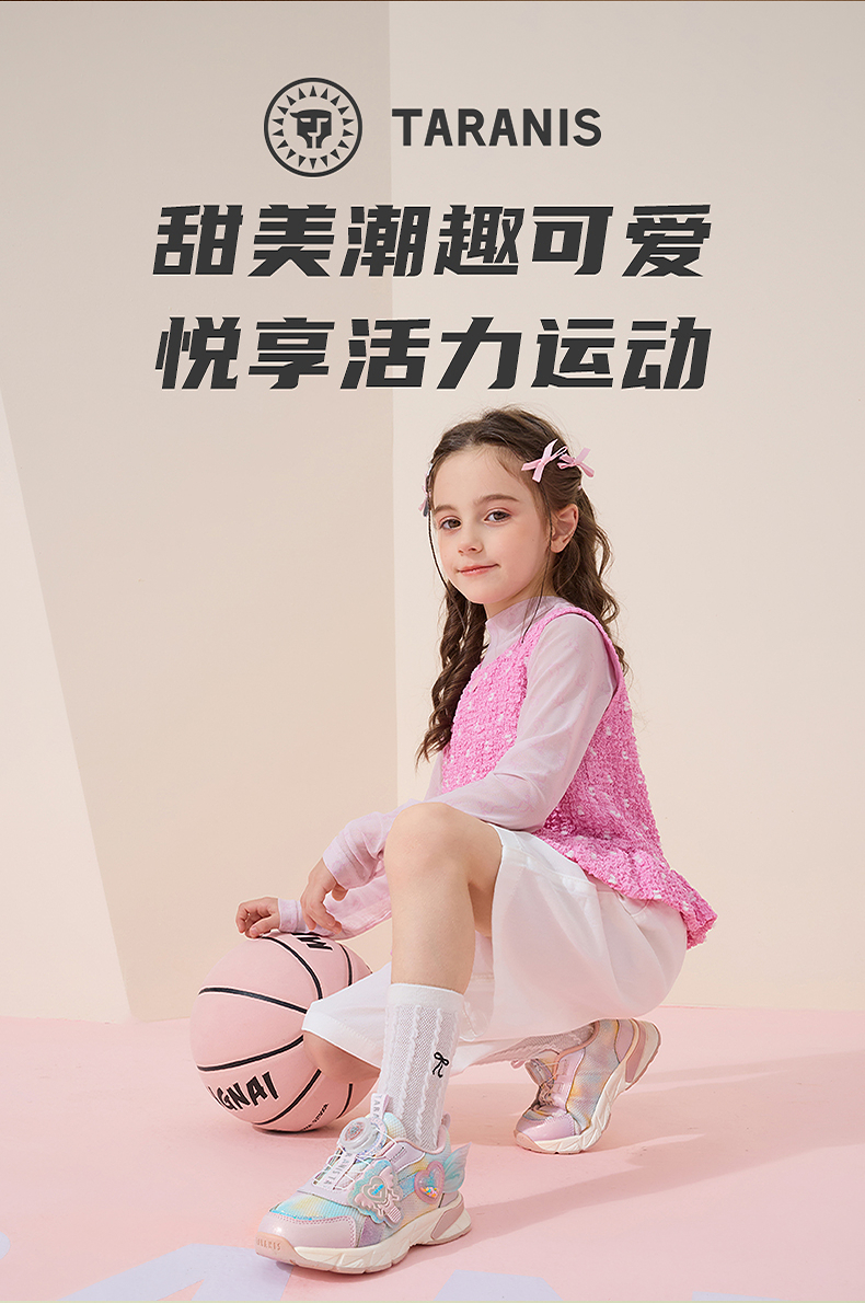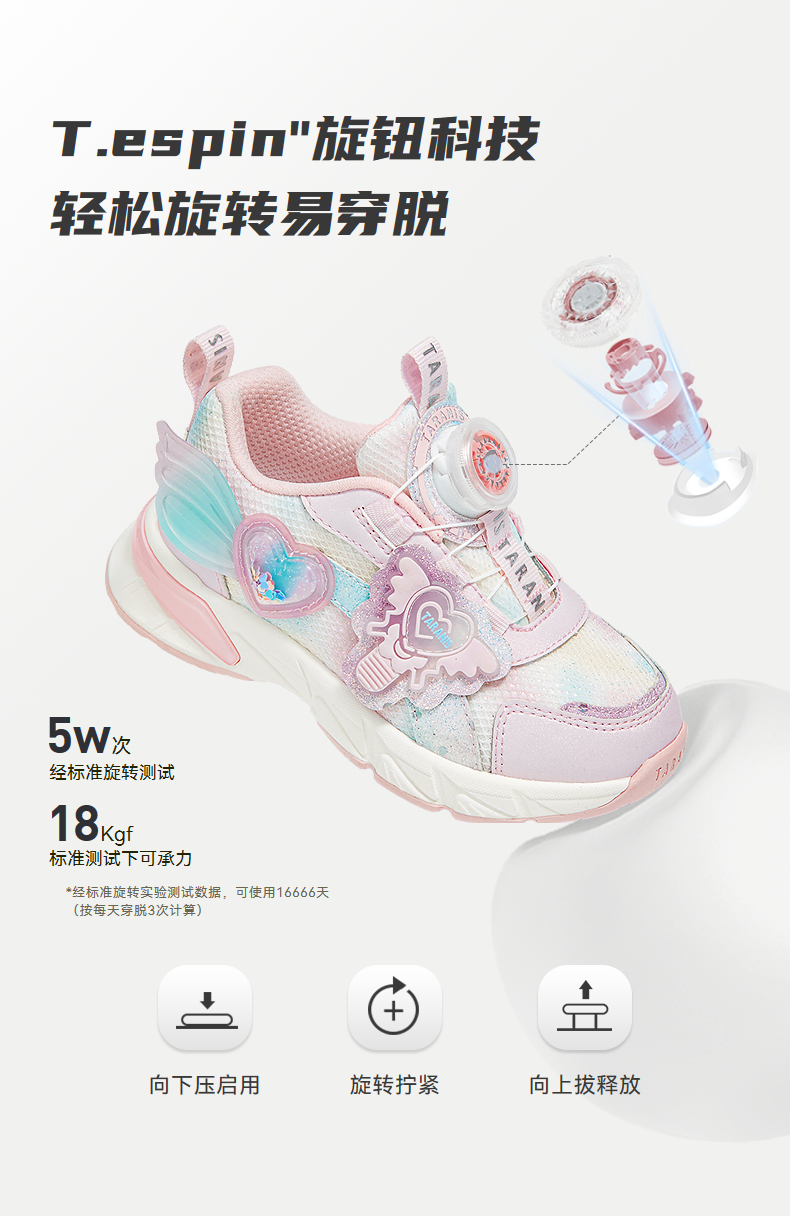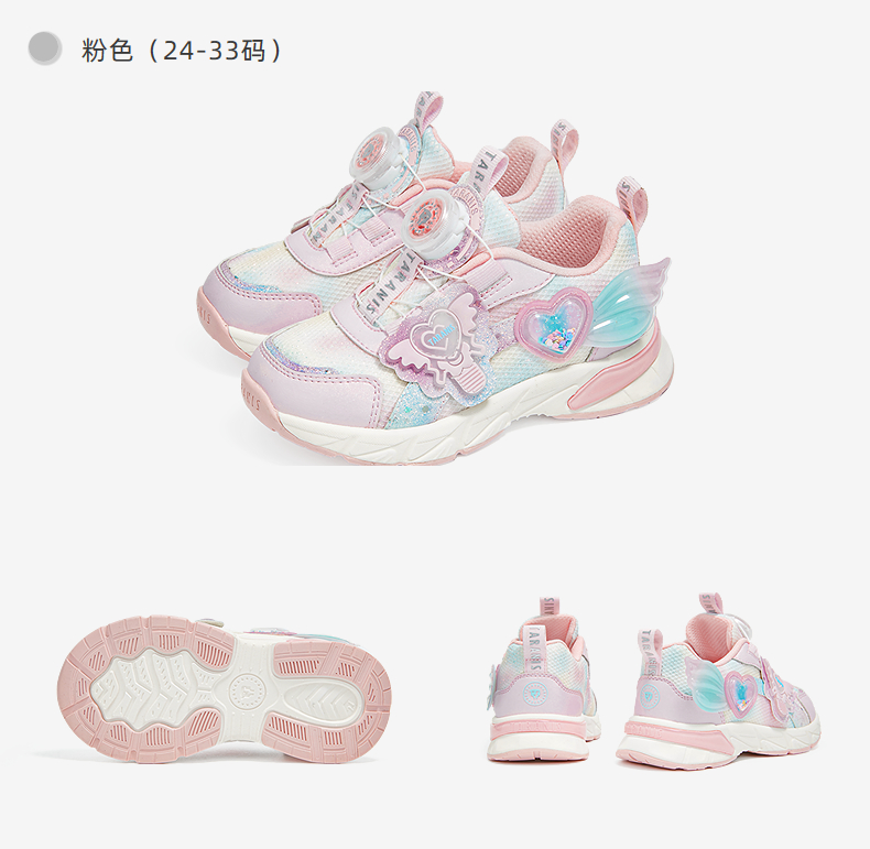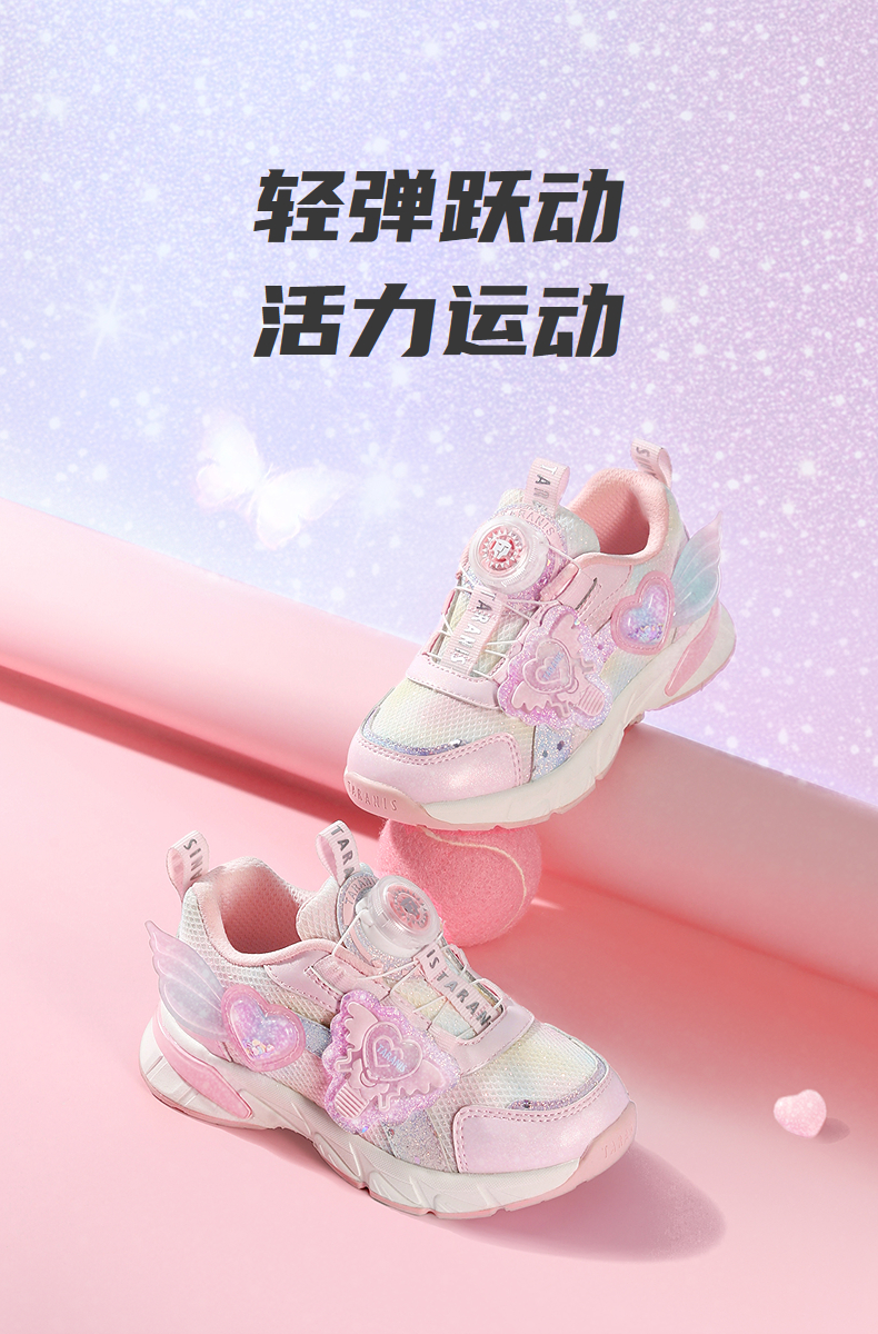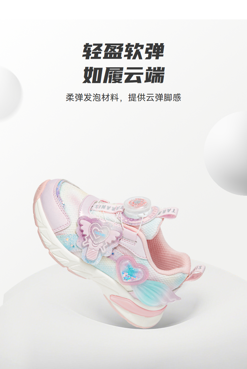 泰兰尼斯秋季新款女童运动鞋轻便软底旋转扣休闲鞋减震防滑儿童鞋 T01X5C7396