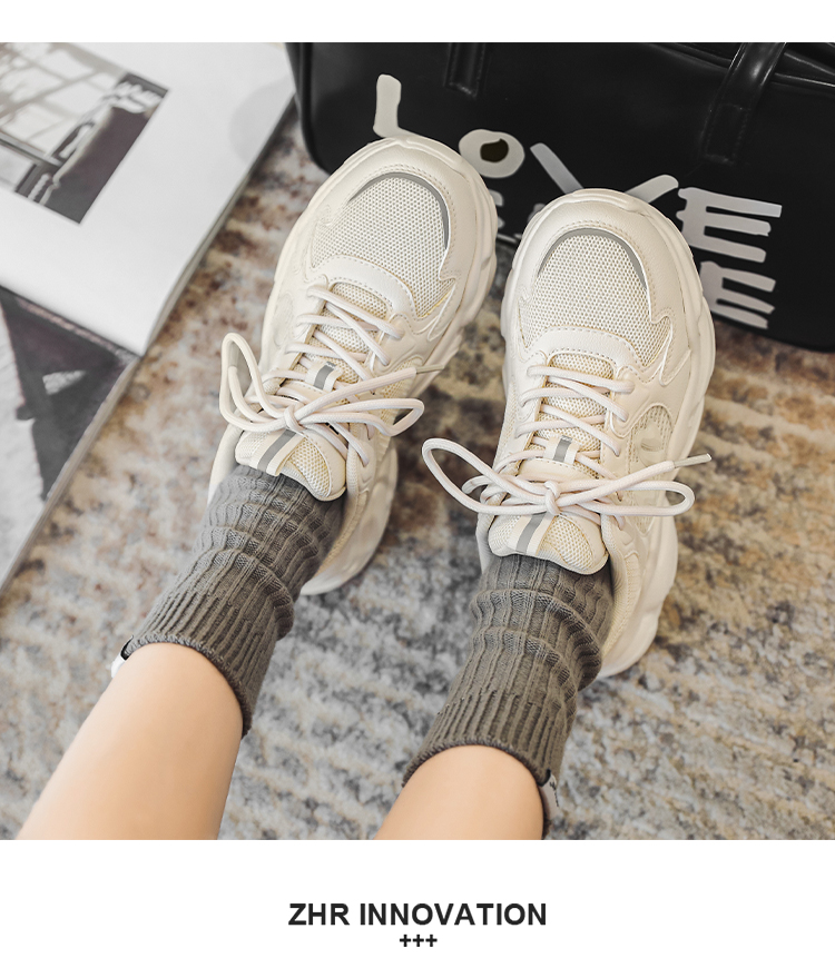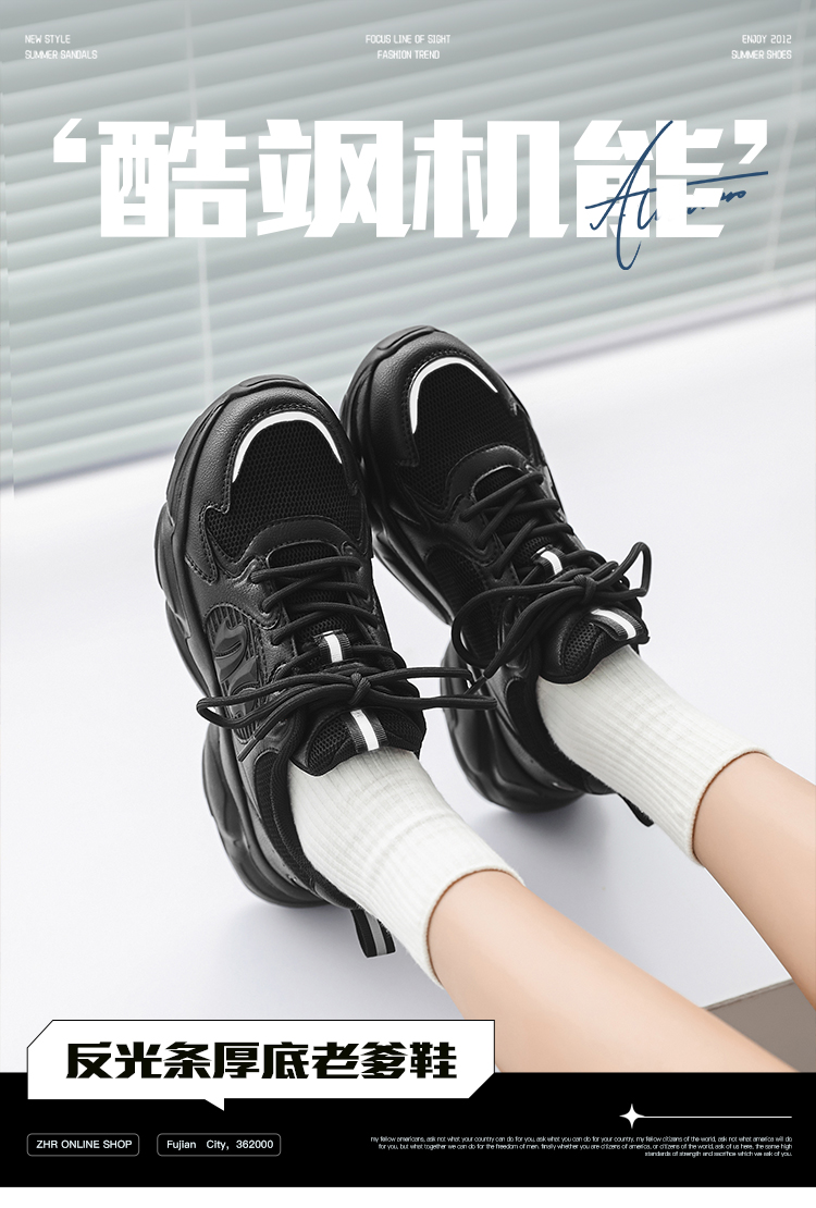 情侣款酷飒机能风反光条厚底老爹鞋复古2023新款高端潮牌鞋子