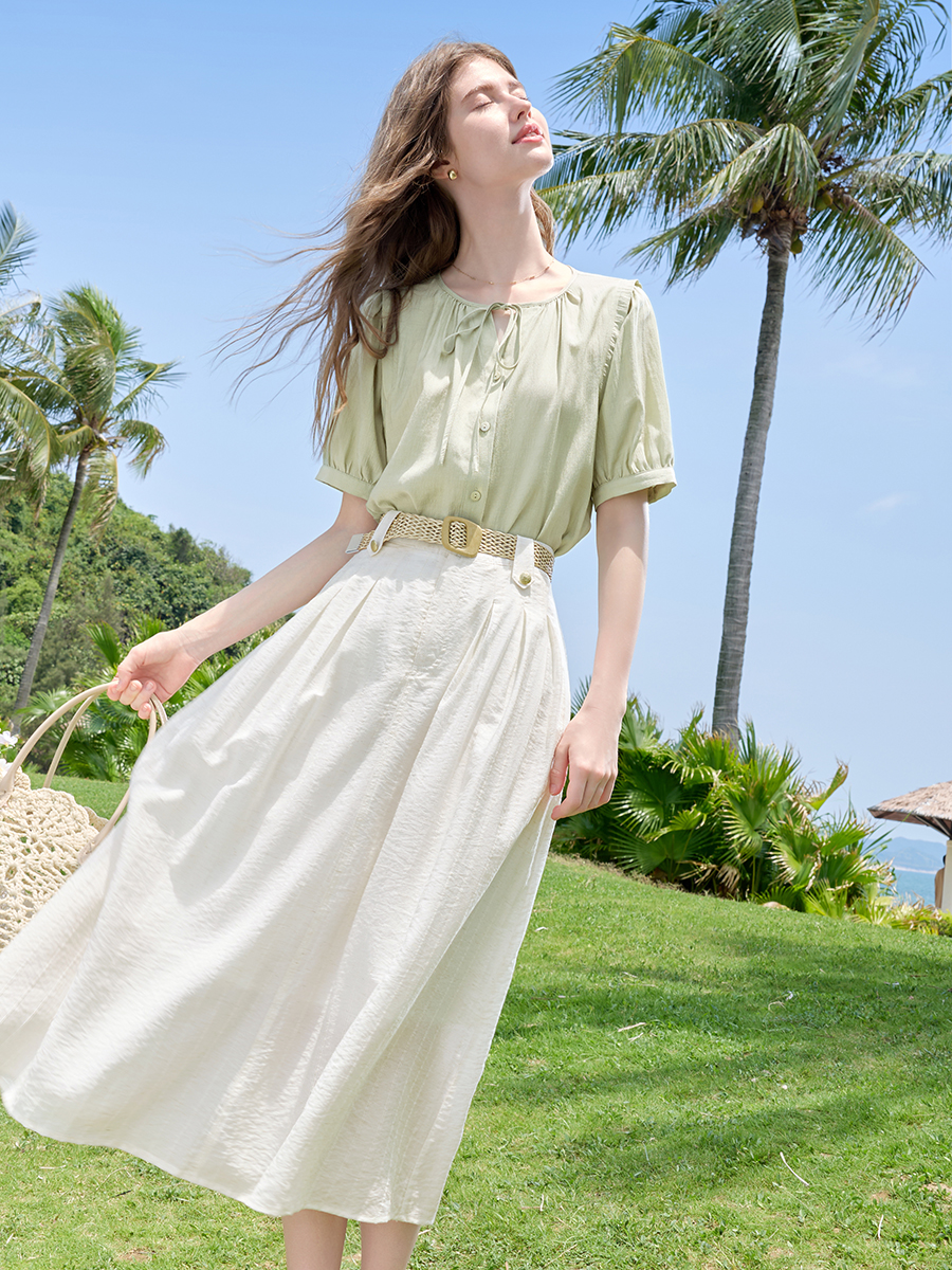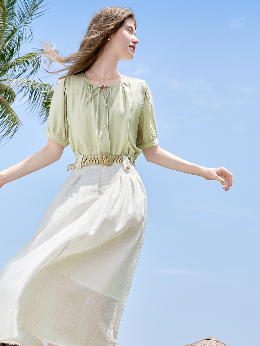 触感:柔软亲肤,有类似真丝或棉的滑爽感,细腻,然纤维素再生纤维,吸湿透气性好(接近棉)、手感柔软垂顺,光泽感强,适合夏季穿着。