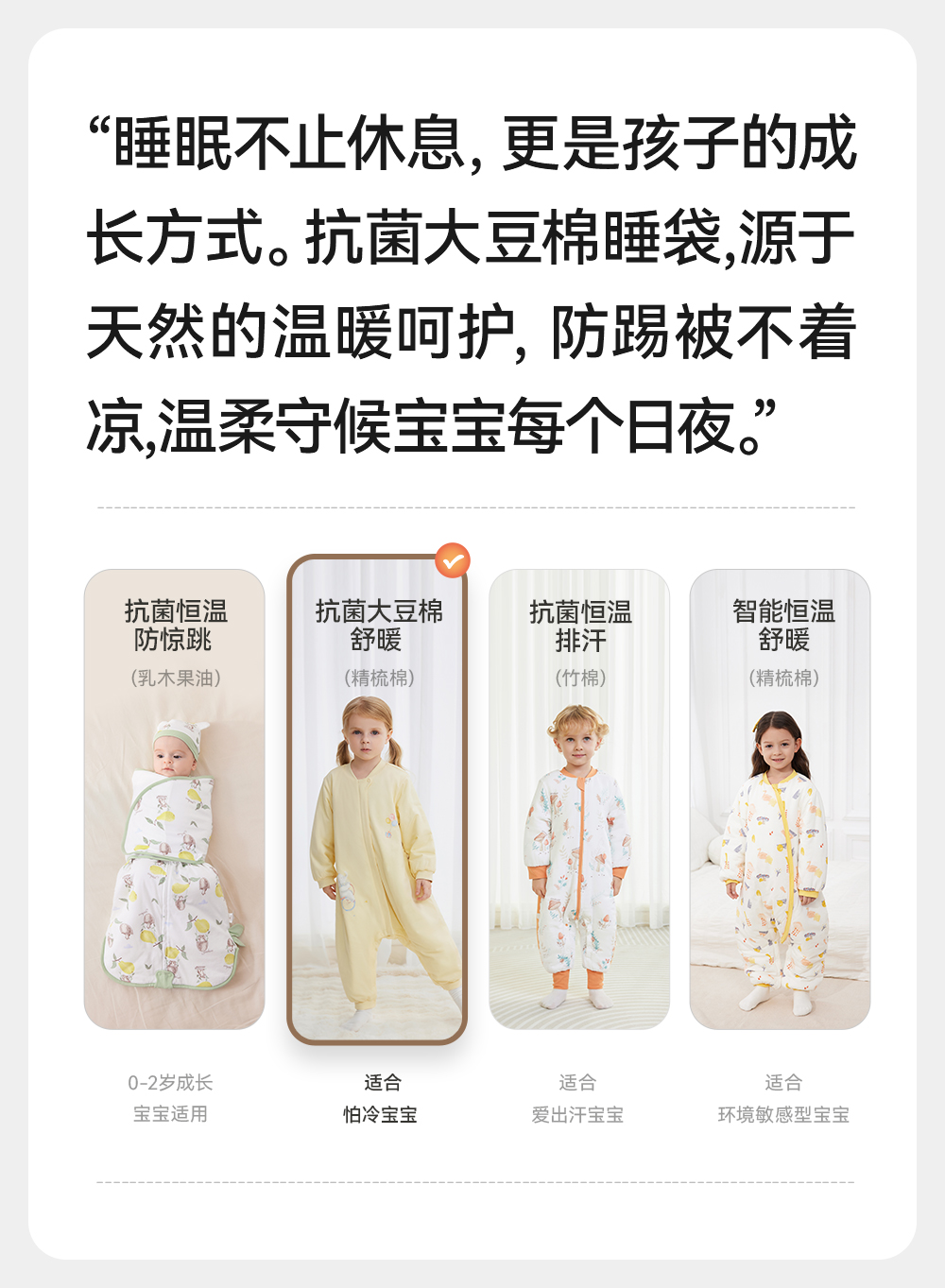 英氏儿童分腿睡袋四季防着凉春秋款新生儿婴儿防踢被YESFJ0Q009A