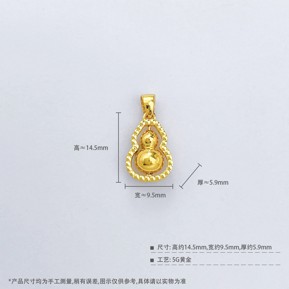 【限时7.5折】【定价黄金】足金999 #葫芦 #时来运转 5G黄金CNC空心可转动葫芦吊坠(AG5GDZ00149)(预售产品下单后不退款不退货不换货不补差价)