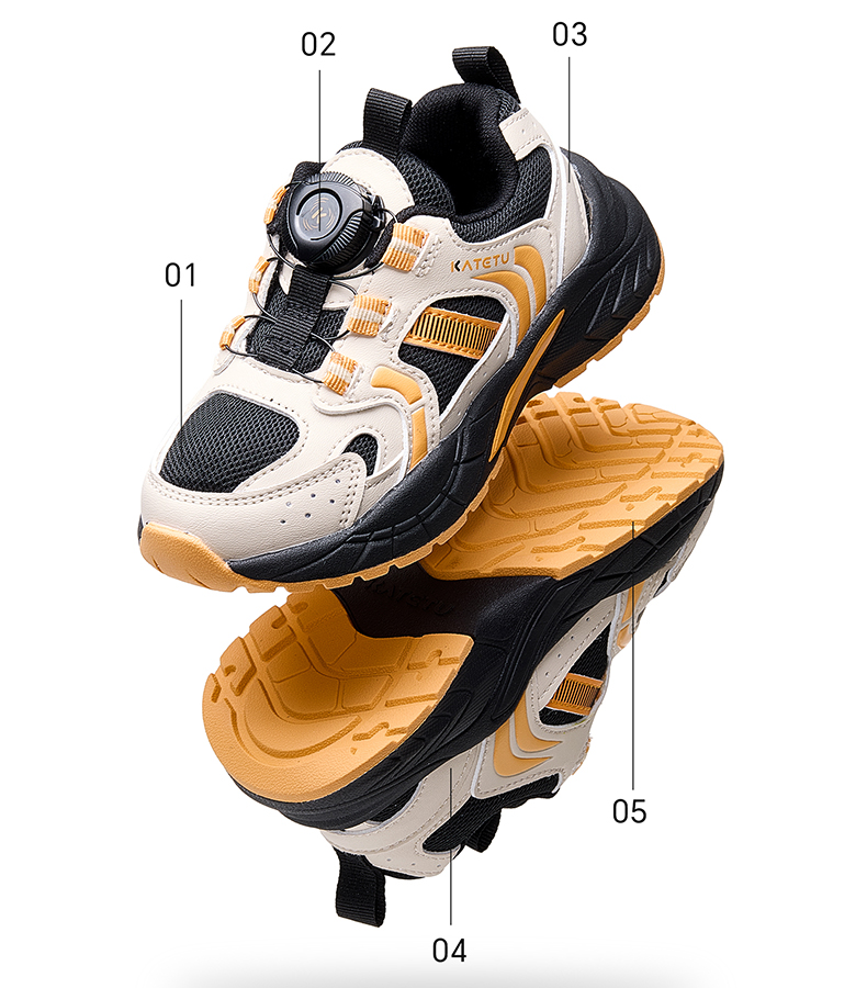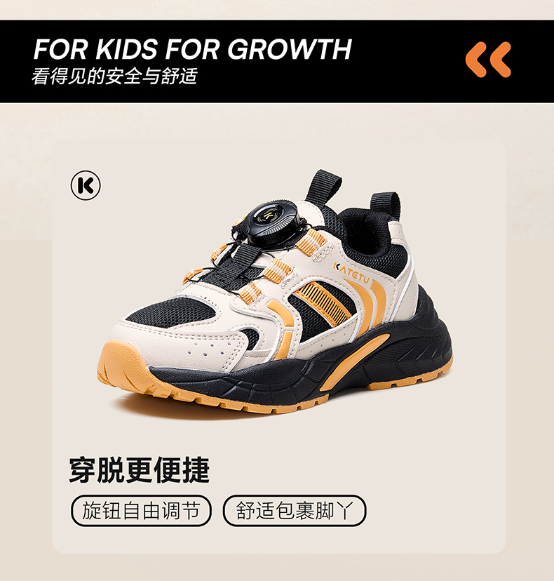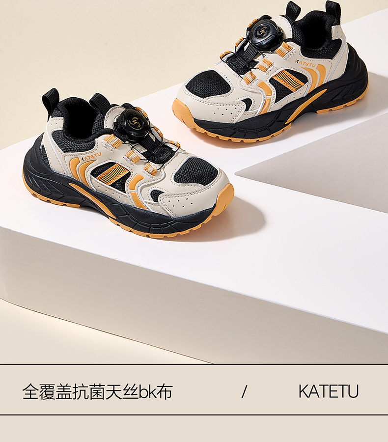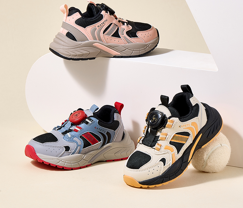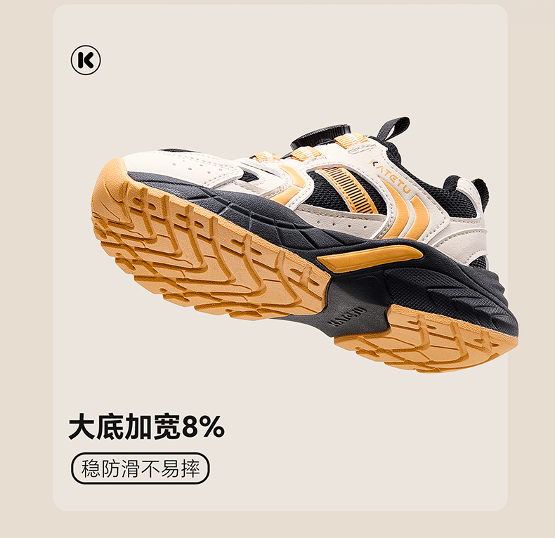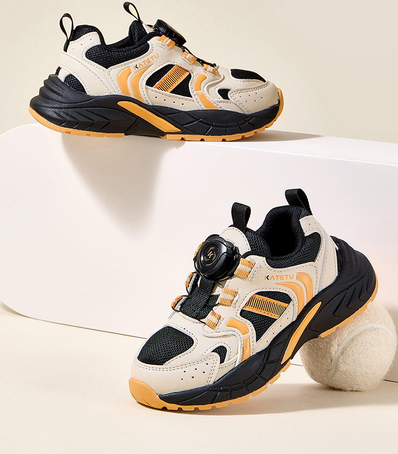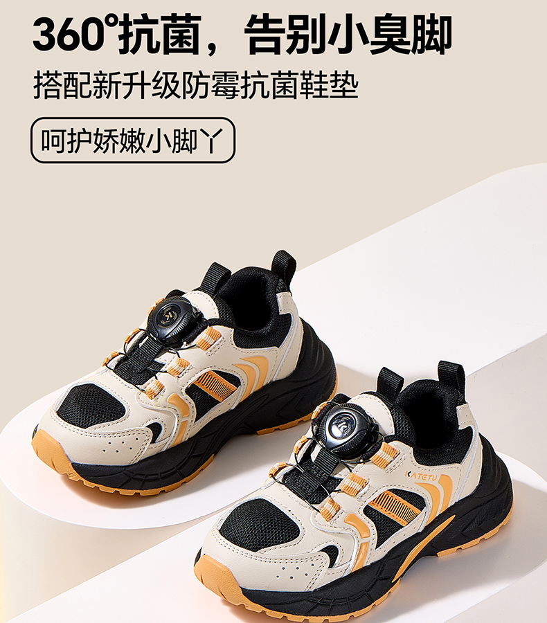 卡特兔儿童运动鞋2025秋季男童鞋子防滑网眼透气旋钮扣老爹鞋