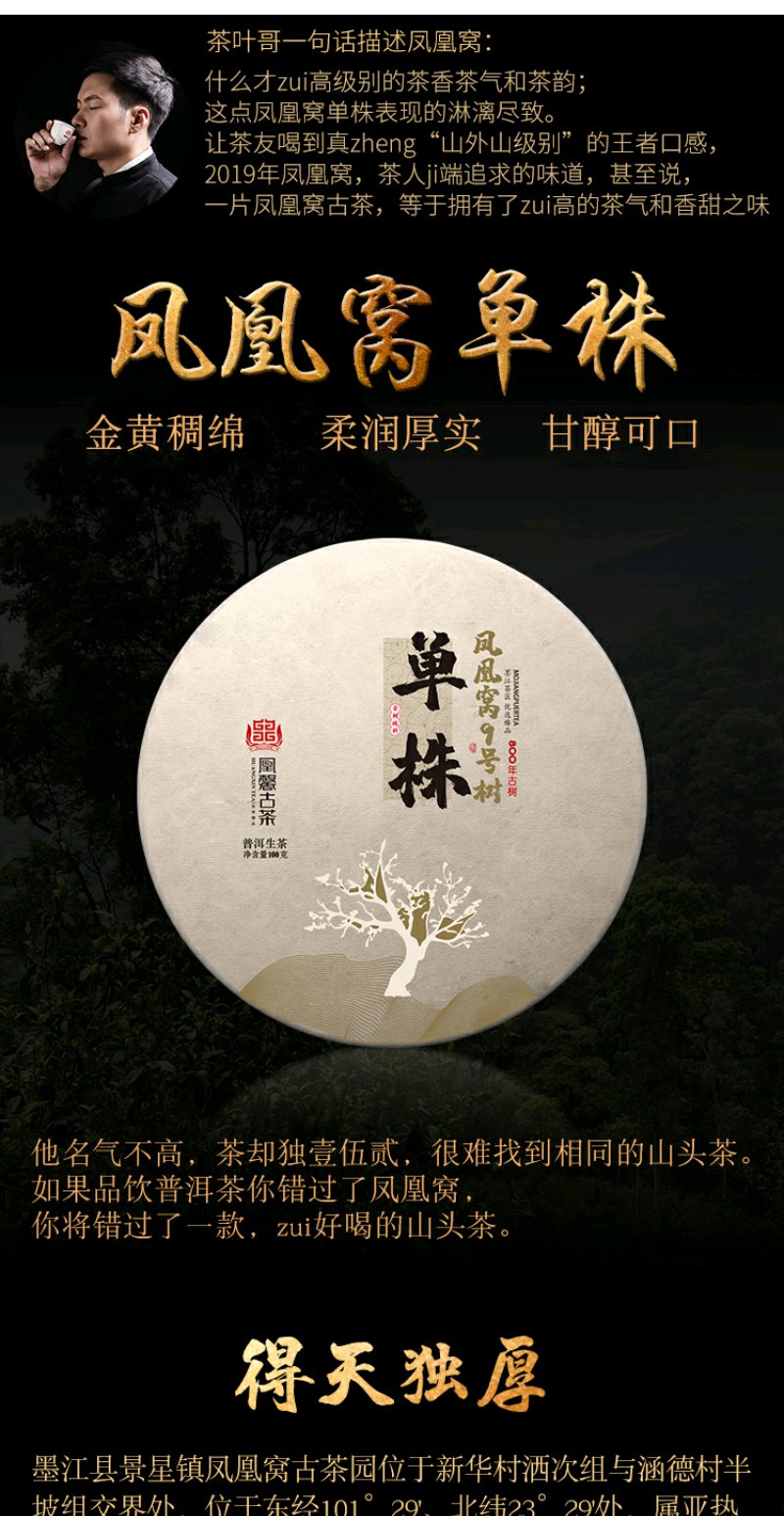 【凰馨古茶】凤凰窝单株普洱生茶800年古树19春100g