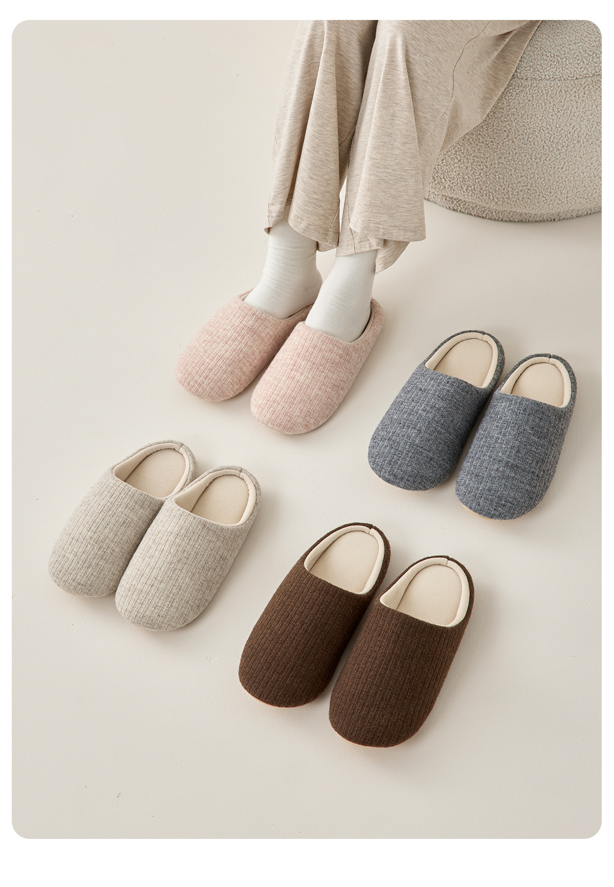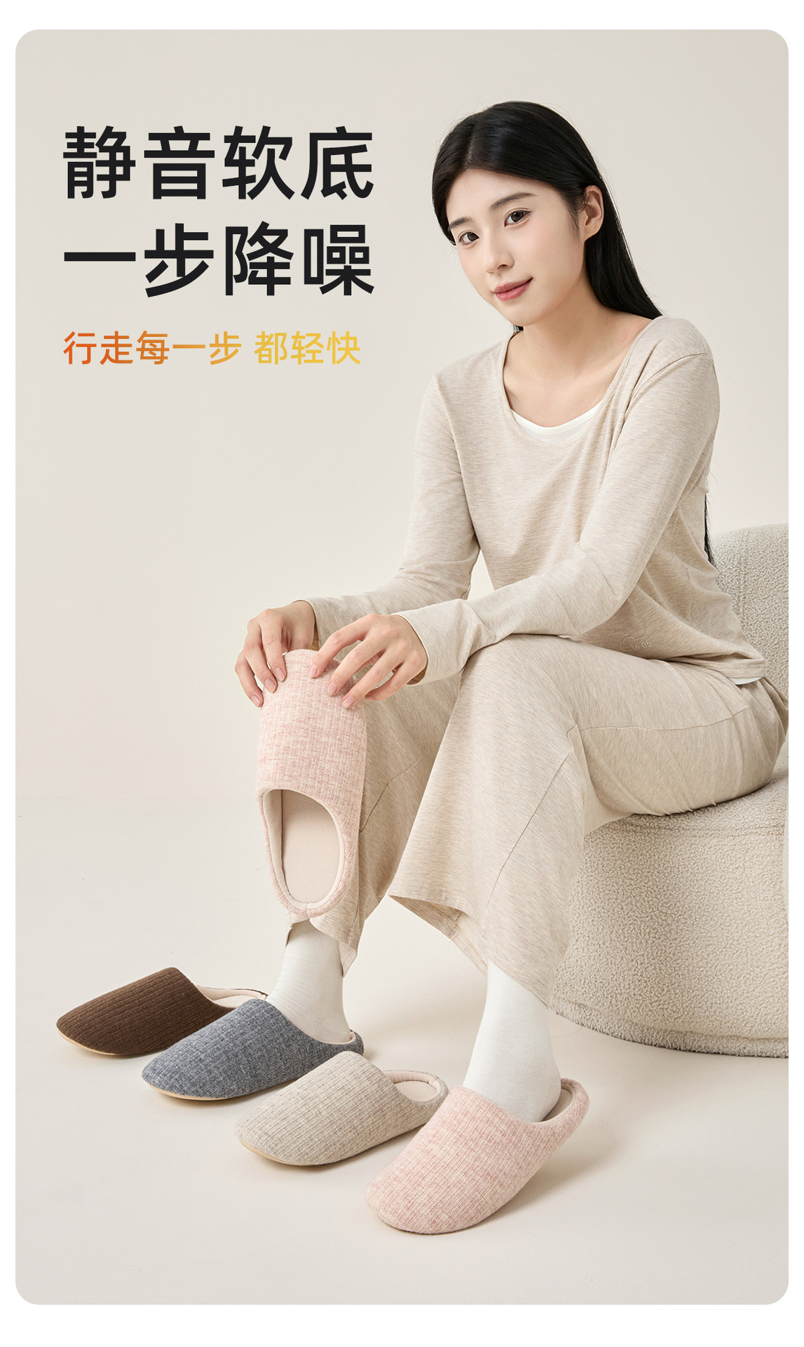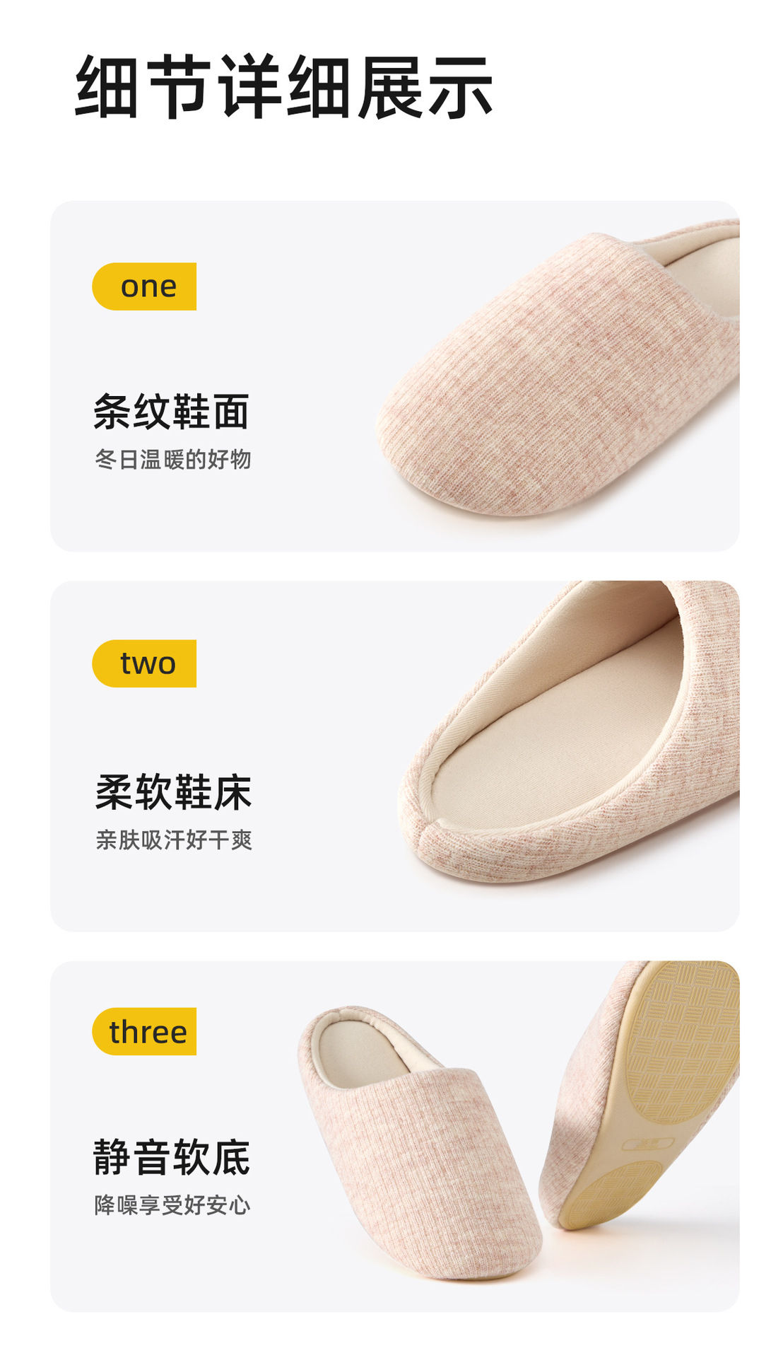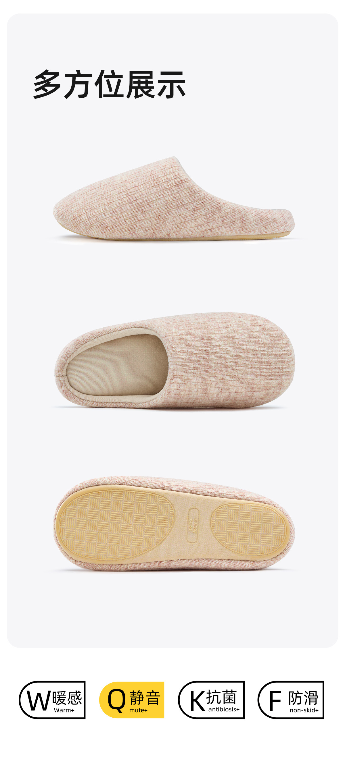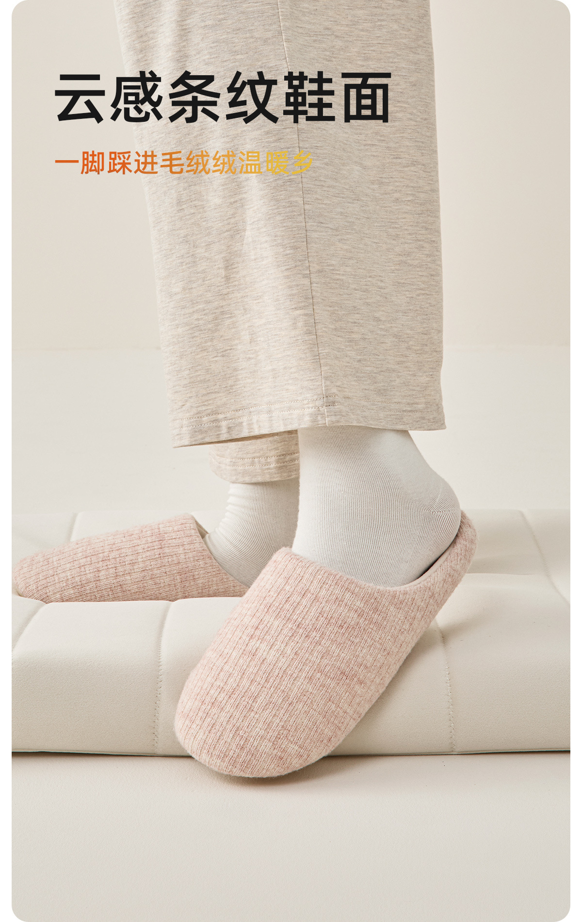 【超暖 静音无声】男女款日式静音拖鞋 柔软大底 走路无声 99.9%抗菌 云感条纹鞋面 亲肤温暖 防滑抓地更牢固