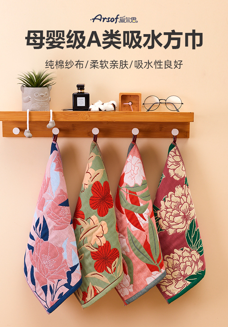A类纯棉方巾纯棉家用洗脸巾柔软吸水不易掉毛儿童四层纱布小毛巾