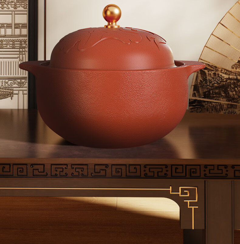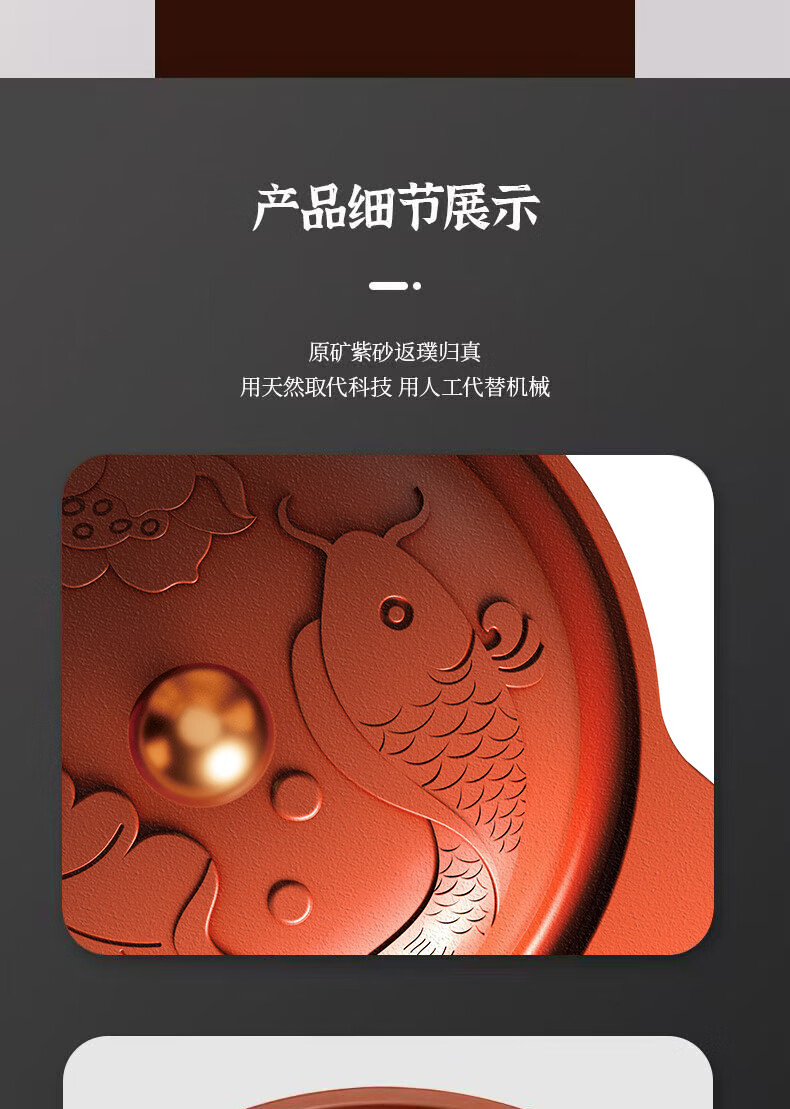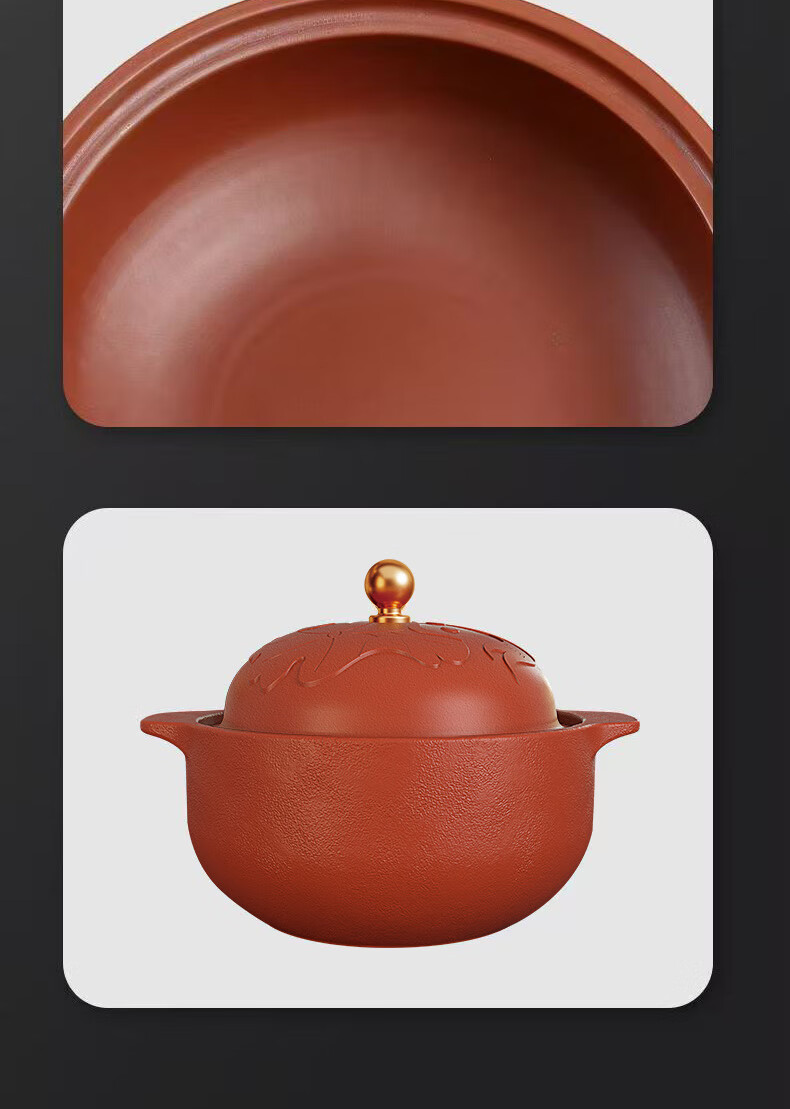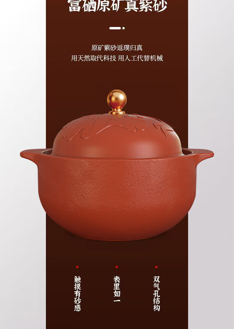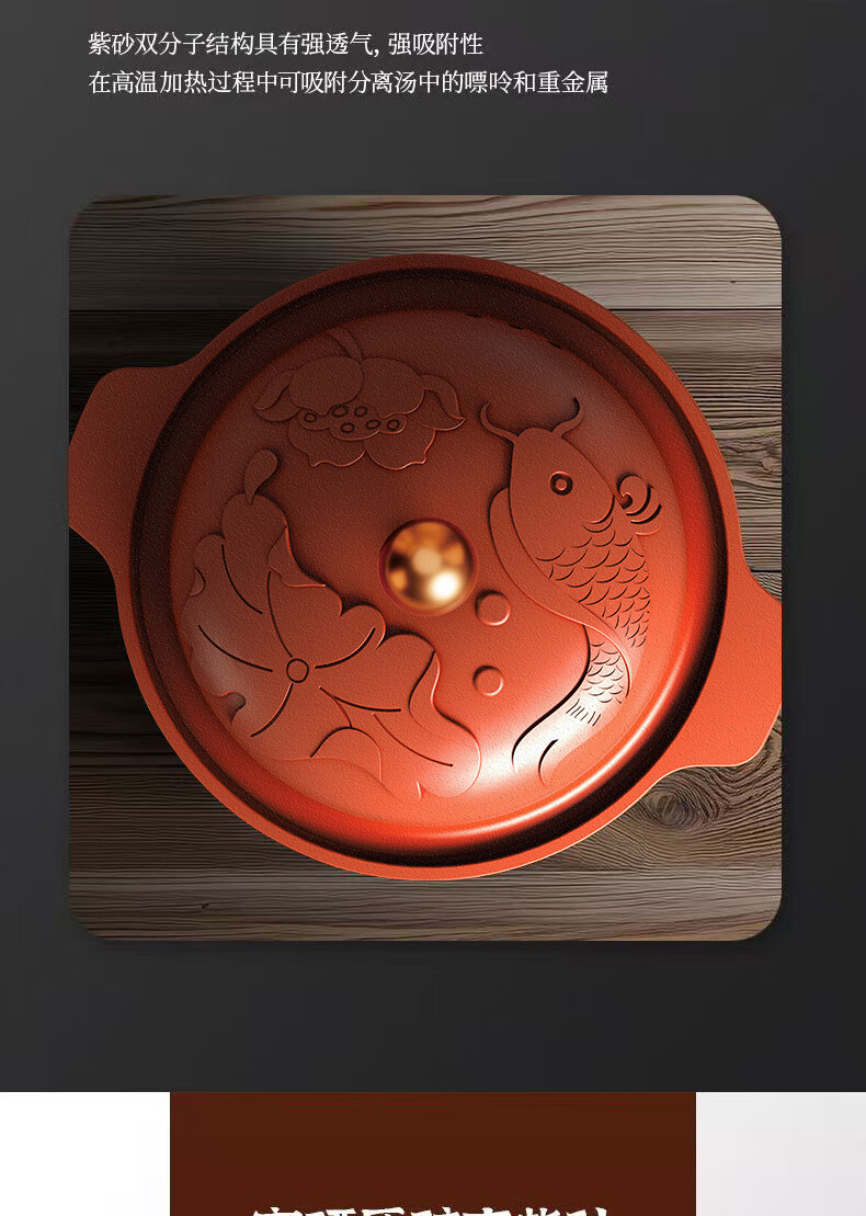【三源年年有鱼富硒紫砂煲】 埔富硒原矿朱泥 无任何化学添加 大师手作紫砂煲