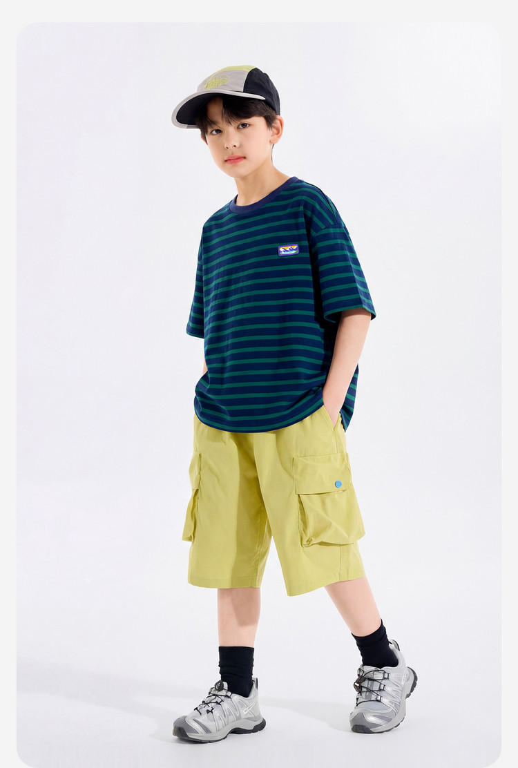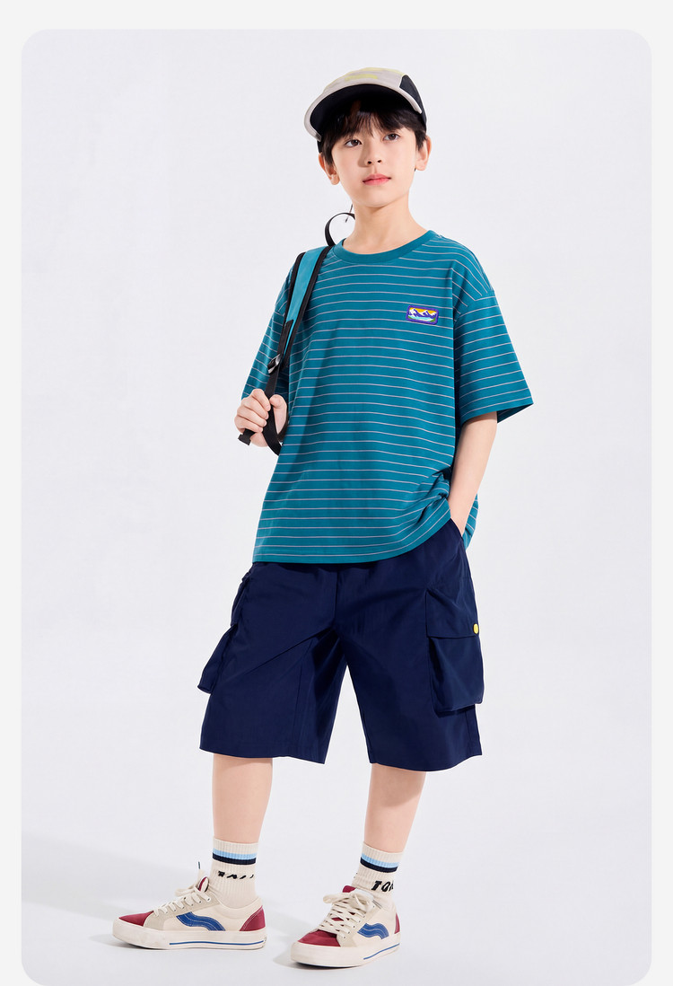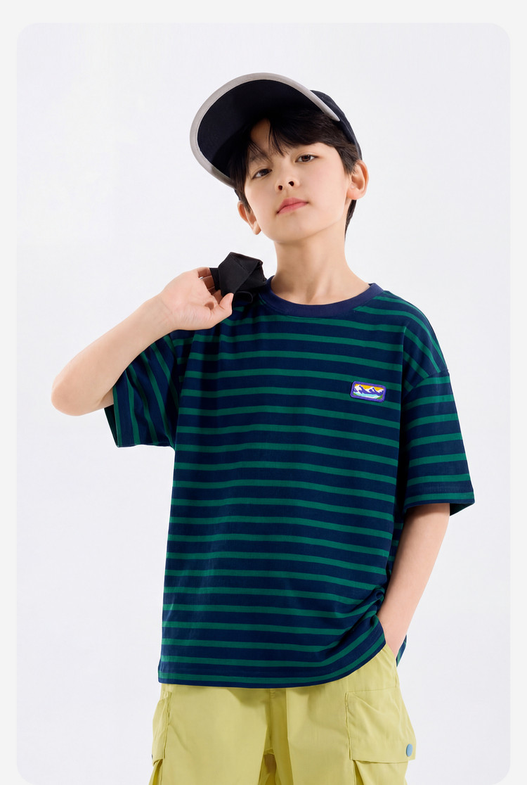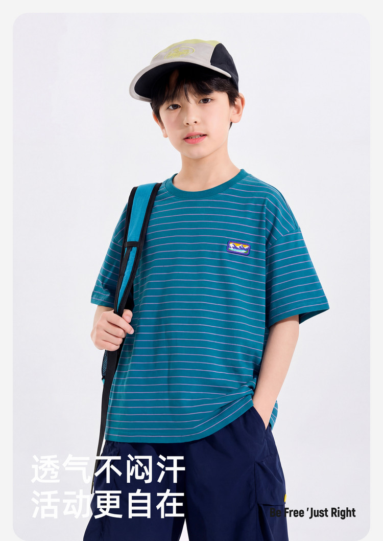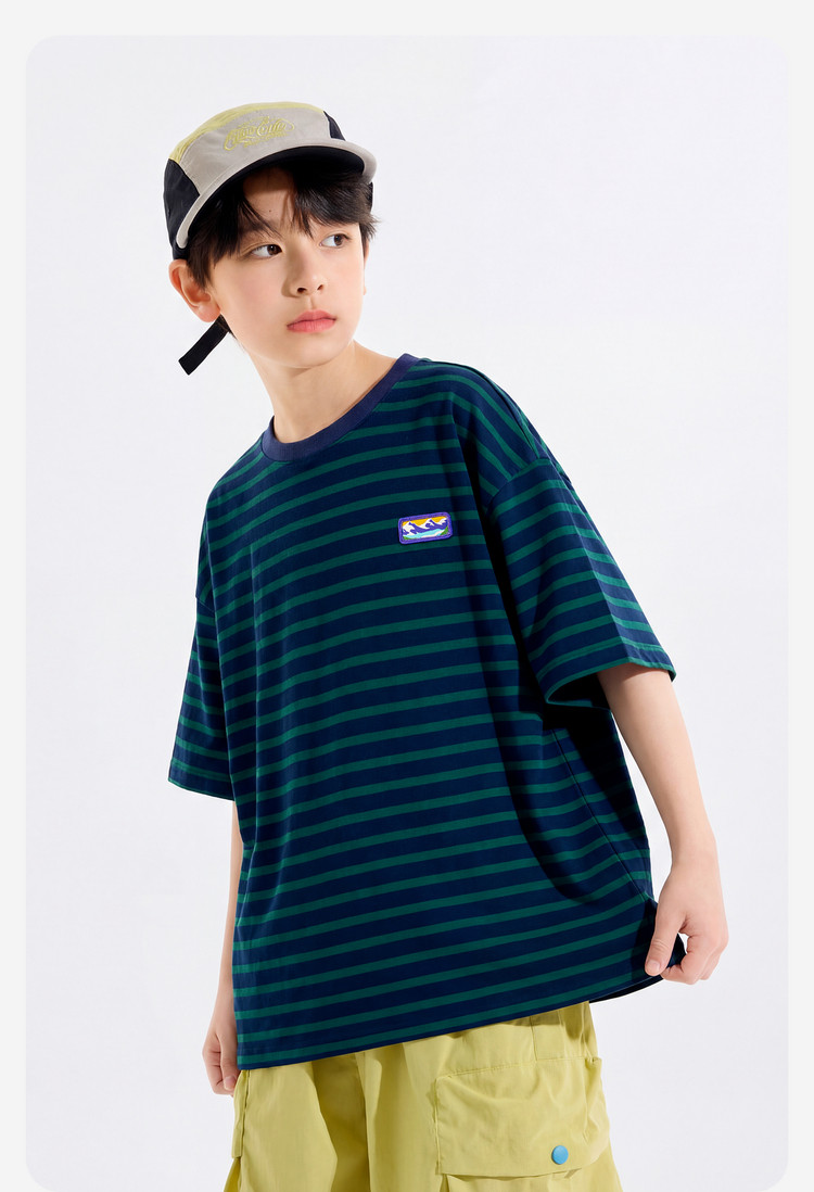 Bluem中大童T恤条纹夏季男童短袖新款时髦儿童上衣男孩衣服潮流类Z6BTX392