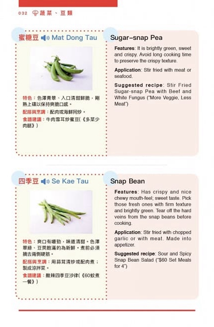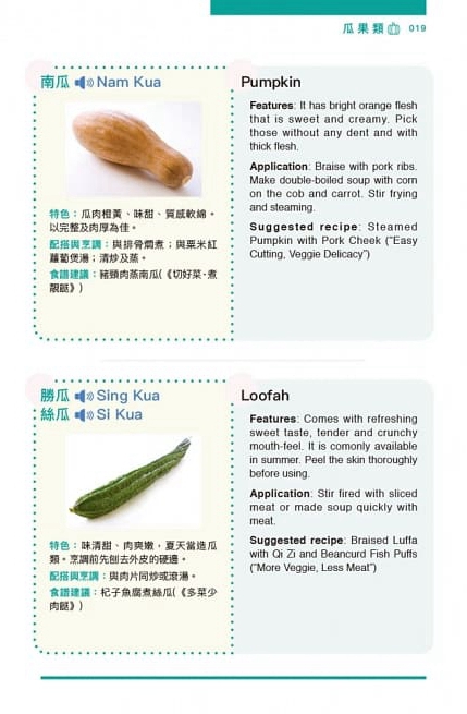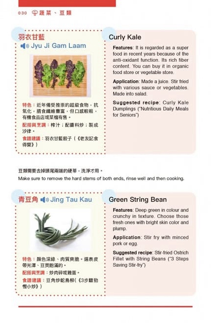 .材料介紹包括特色、選購貼士、處理方法、適宜配搭的食材、適宜烹調的方法及建議食譜,以清晰的文字令家傭全面認識材料。