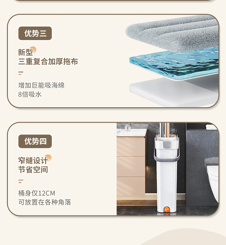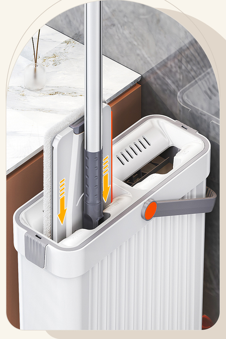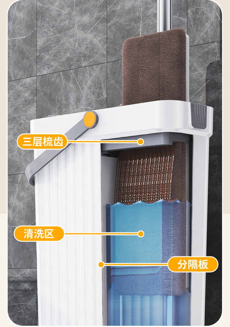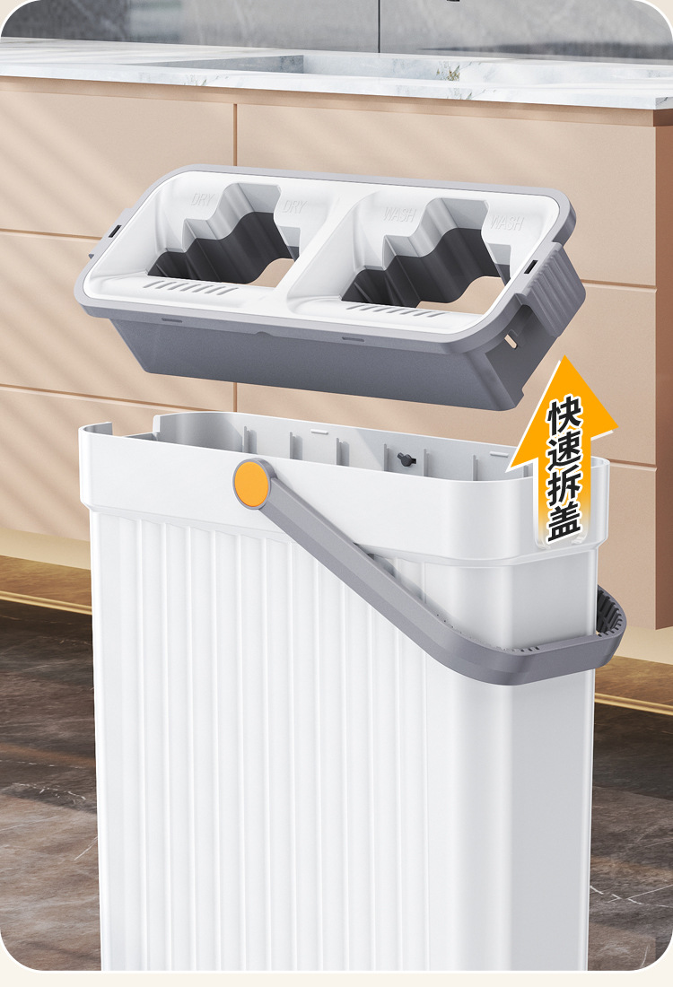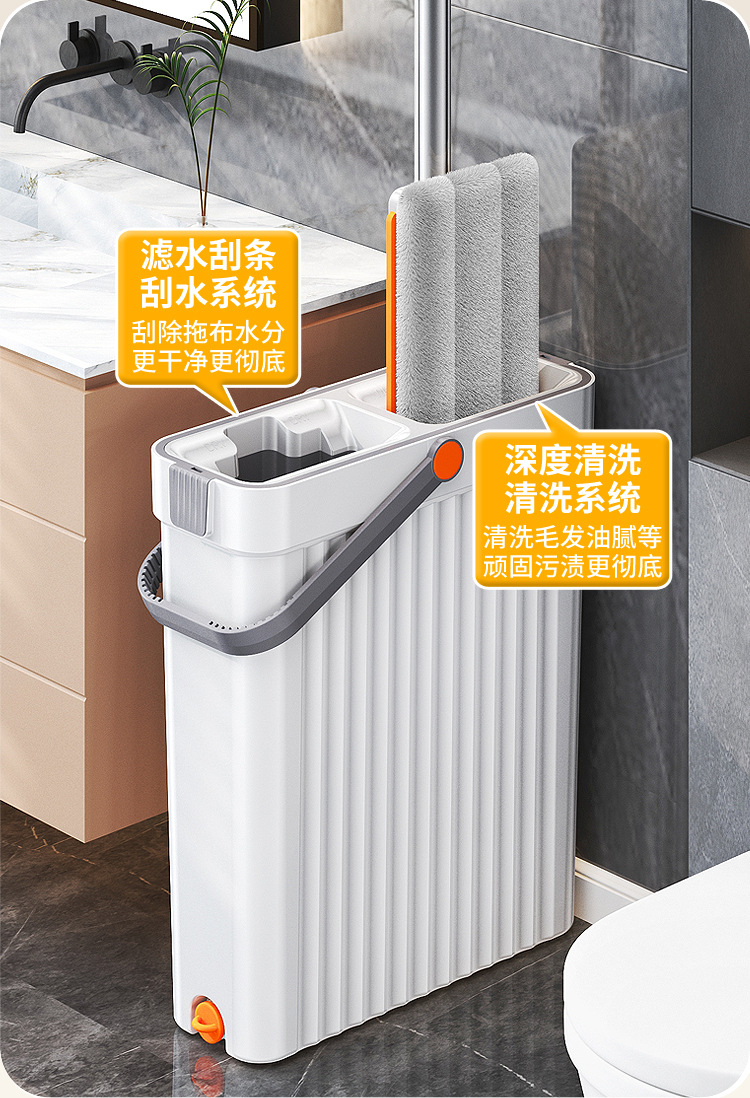 心选丨家居好帮手【免手洗!清洁不脏手】平板拖把家用免手洗款刮刮乐 懒人拖地神器墩布拖把桶套装,顶盖设有卡扣 轻松拆卸清理