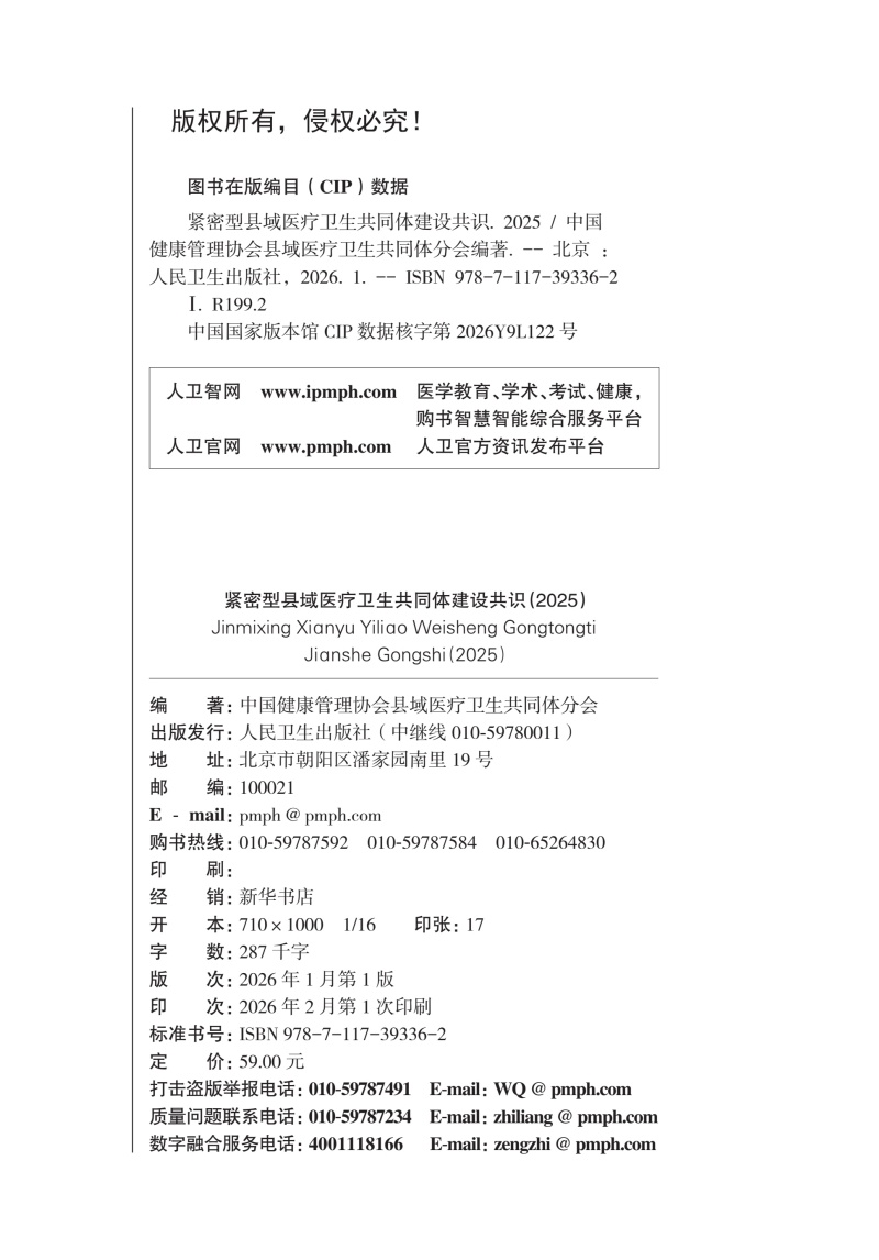 紧密型县域医疗卫生共同体建设共识(2025)中国健康管理协会县域医疗卫生共同体分会 编著 卫生学 9787117393362 人民卫生出版社