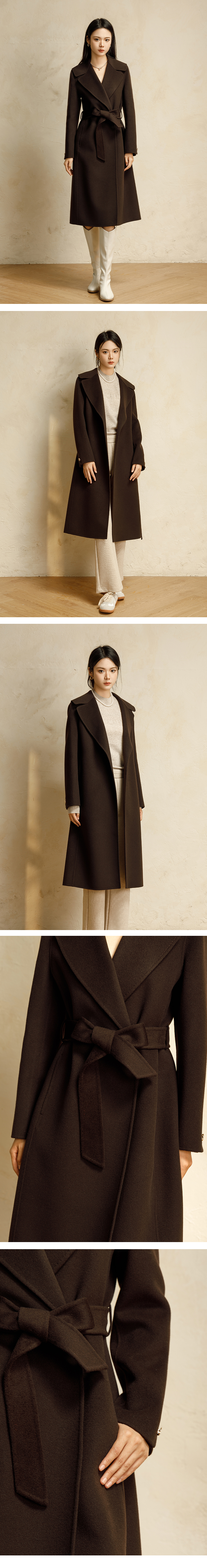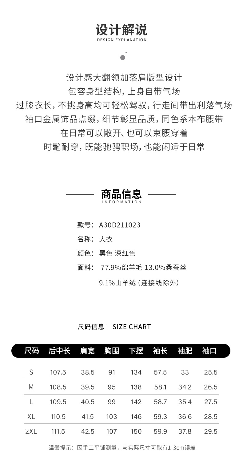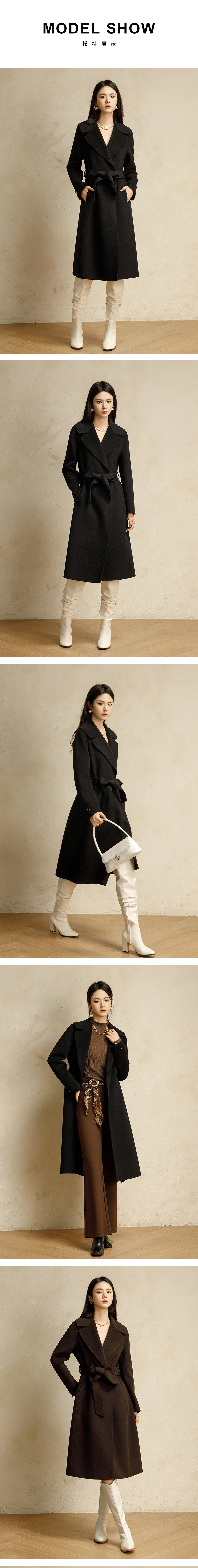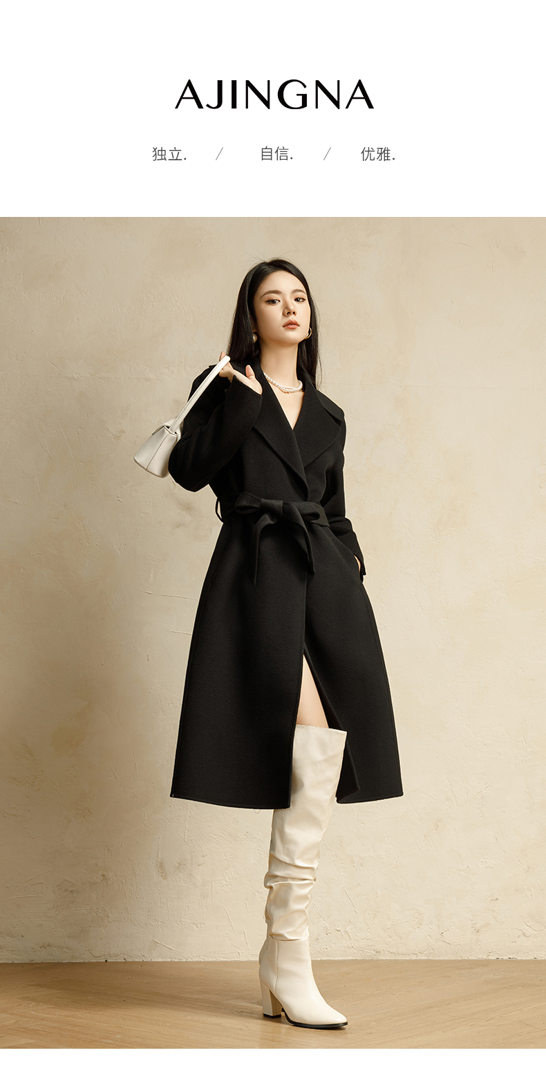 【商场同款】阿菁娜2024冬季新款设计感大翻领落肩款长款大衣A30D211023