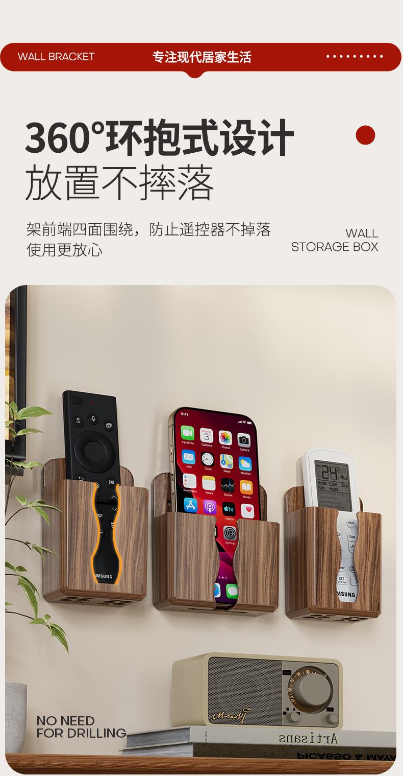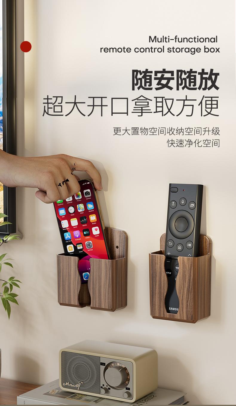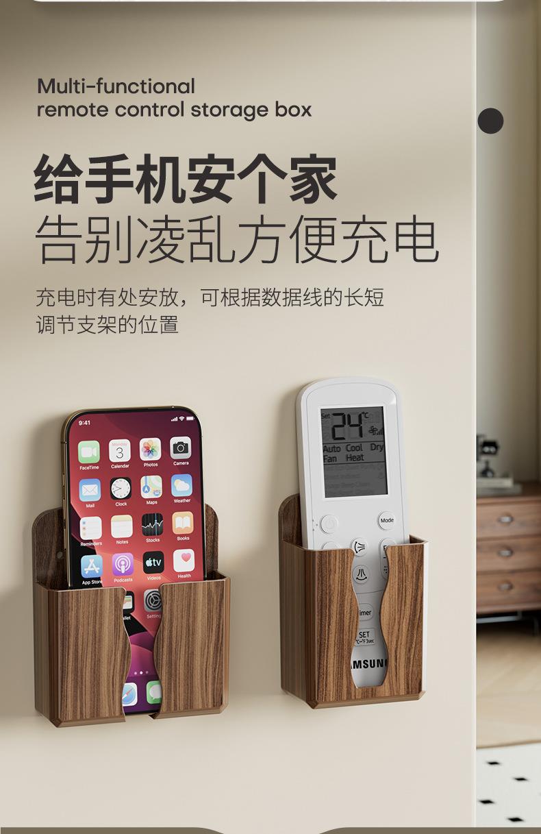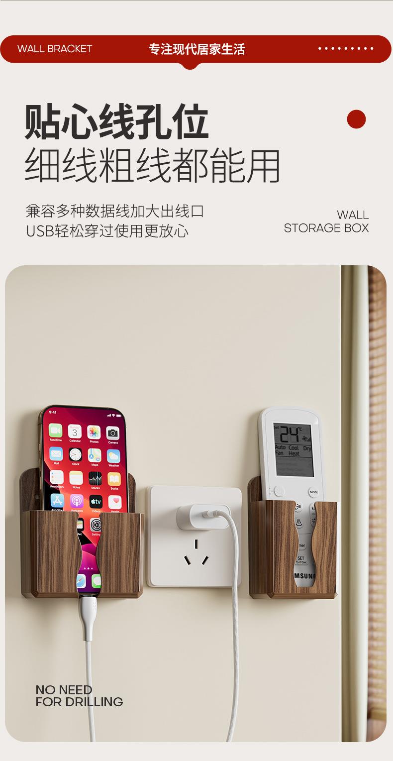免打孔壁挂式手机遥控收纳架美观实用贴心充电口桃木纹收纳架