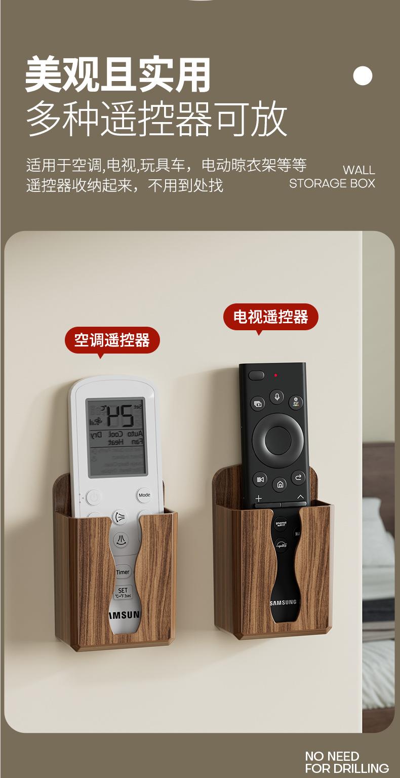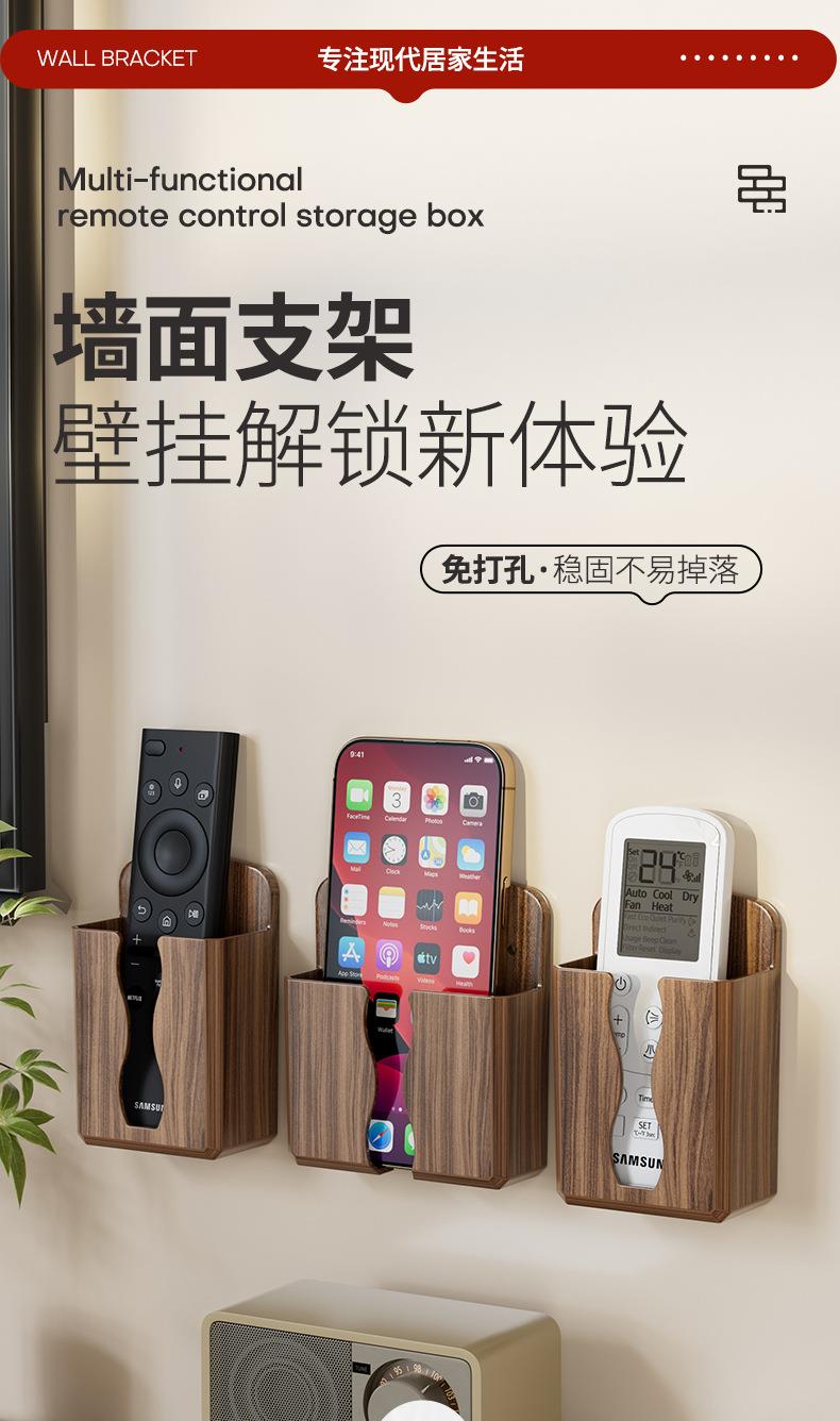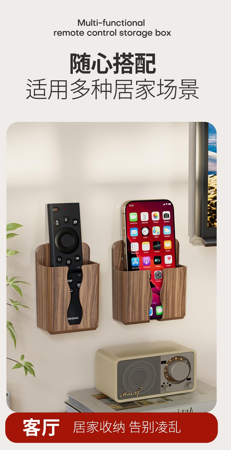 免打孔壁挂式手机遥控收纳架美观实用贴心充电口桃木纹收纳架