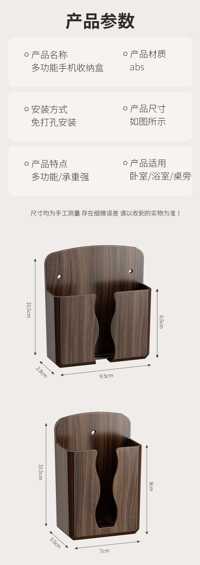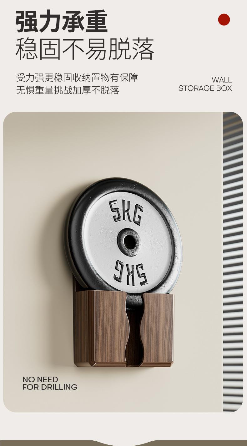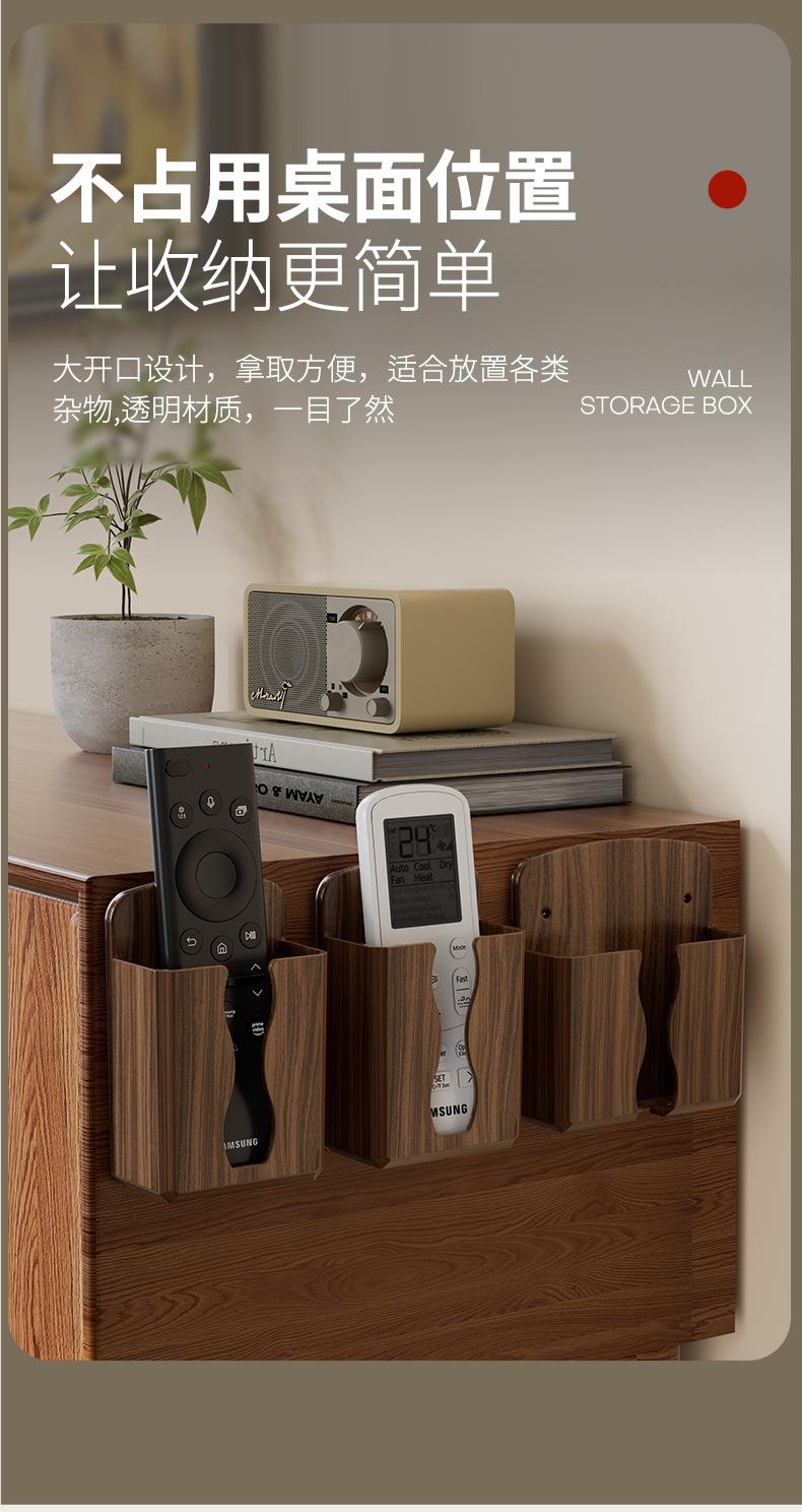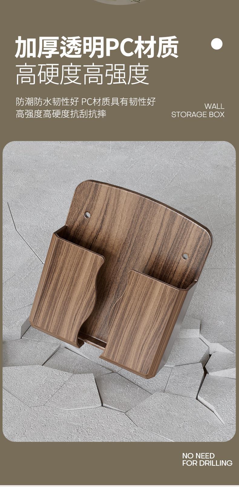 免打孔壁挂式手机遥控收纳架美观实用贴心充电口桃木纹收纳架