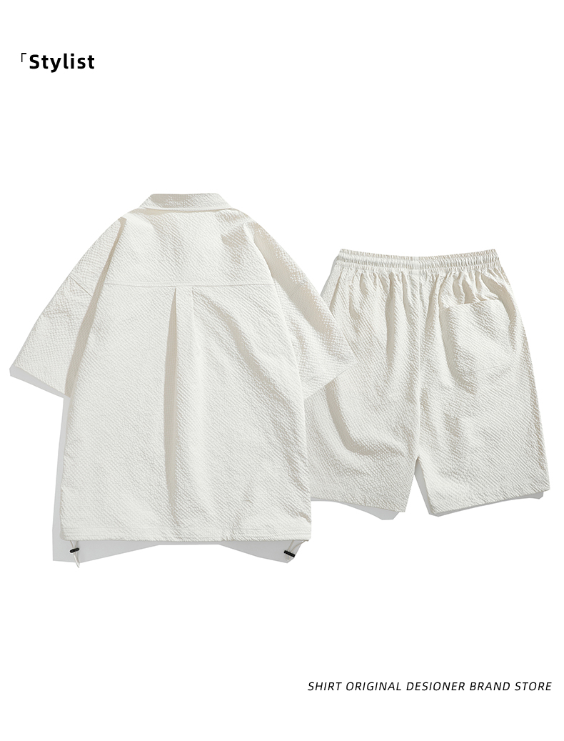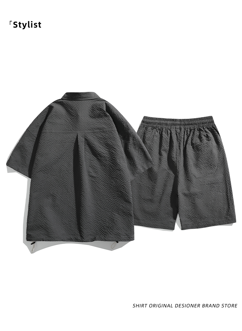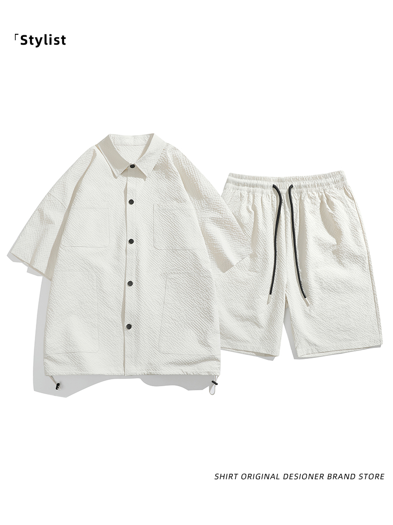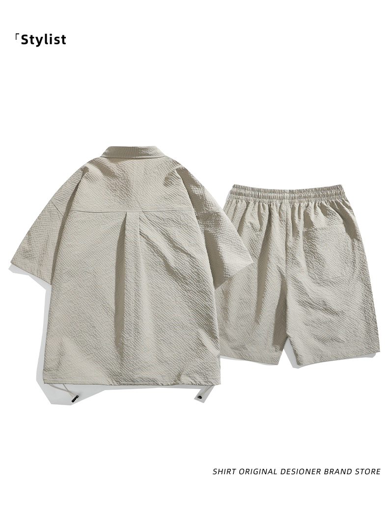 TZ101 休闲服套装男短袖夏季潮流高级感衬衫男生高街宽松短裤