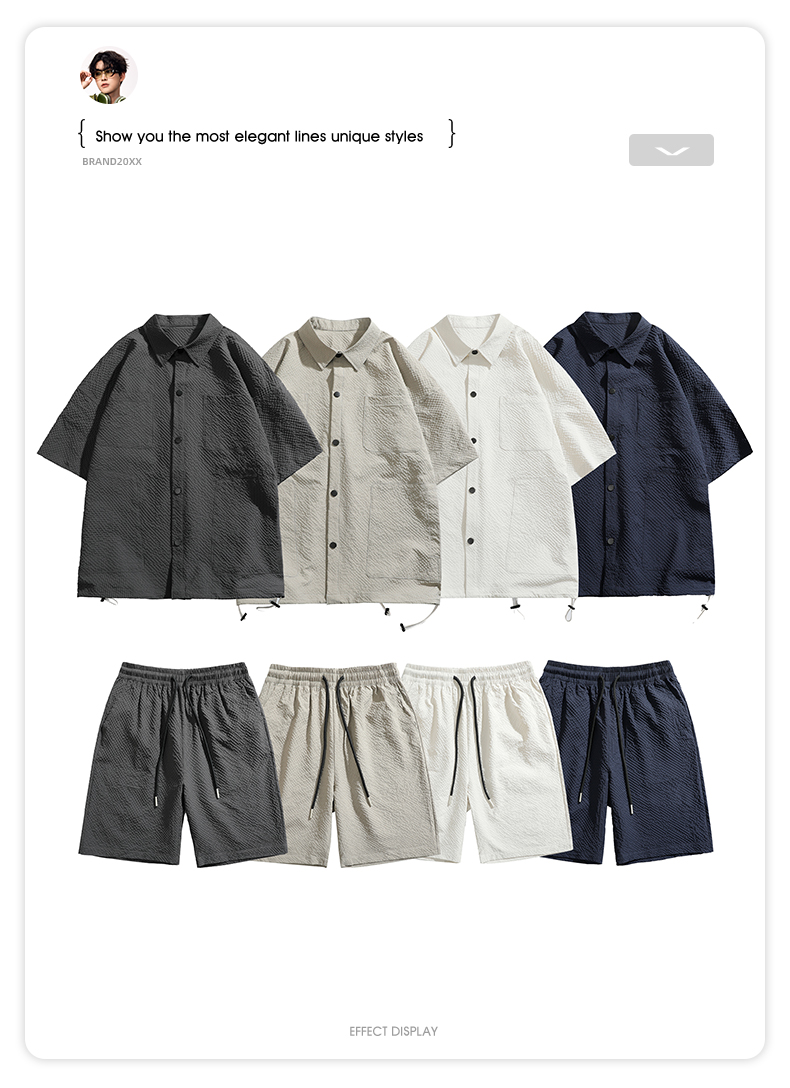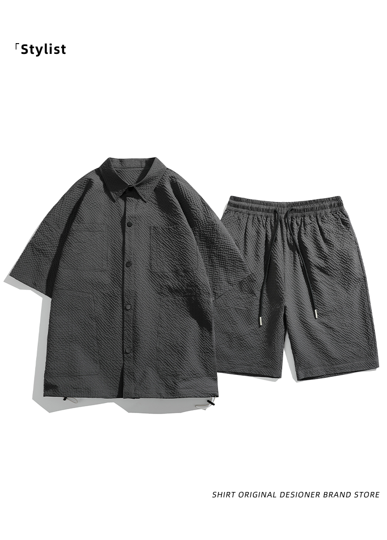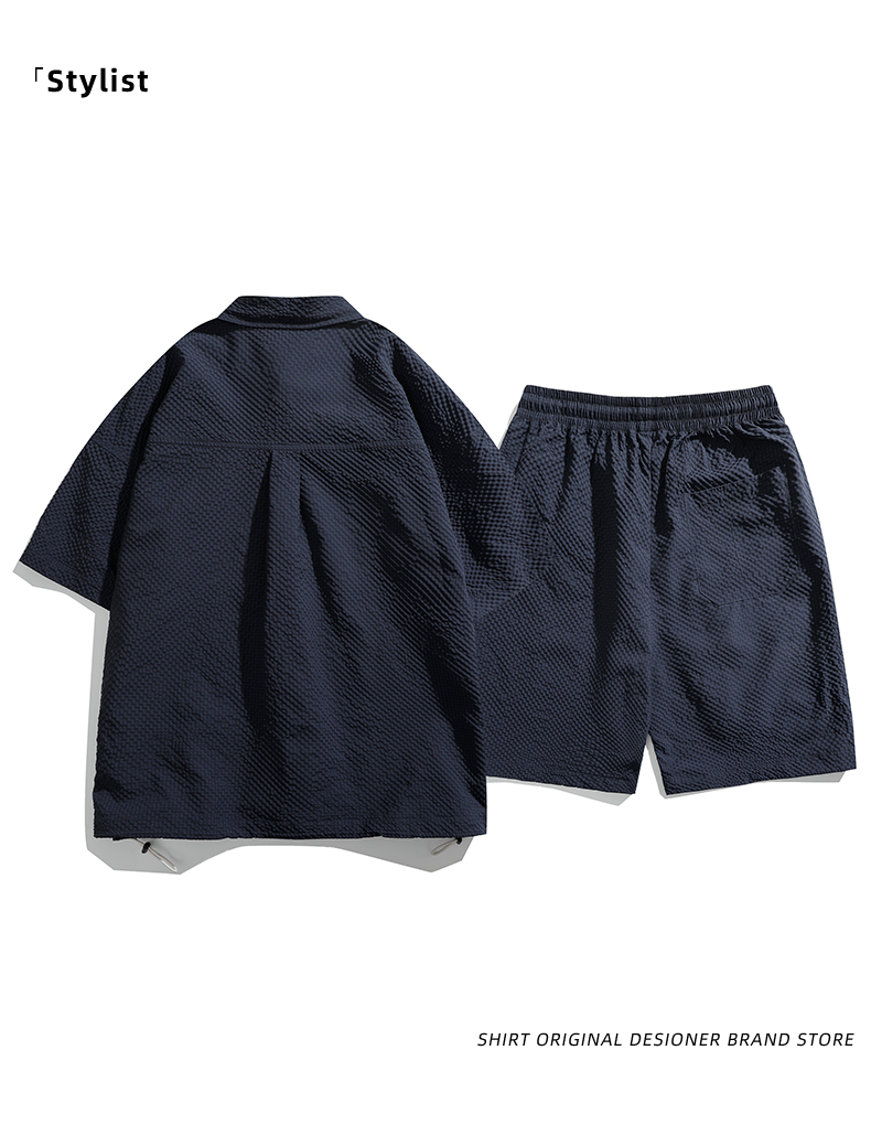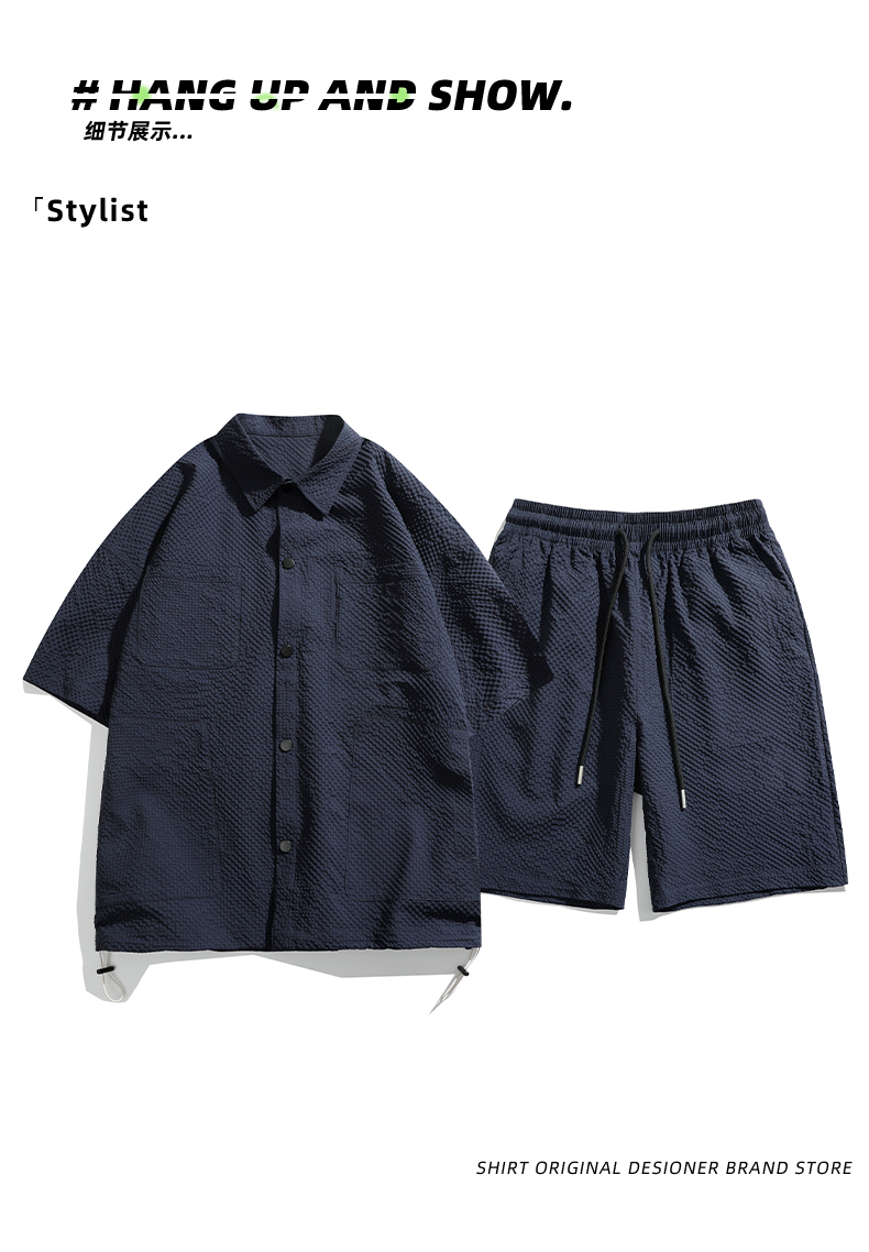 TZ101 休闲服套装男短袖夏季潮流高级感衬衫男生高街宽松短裤