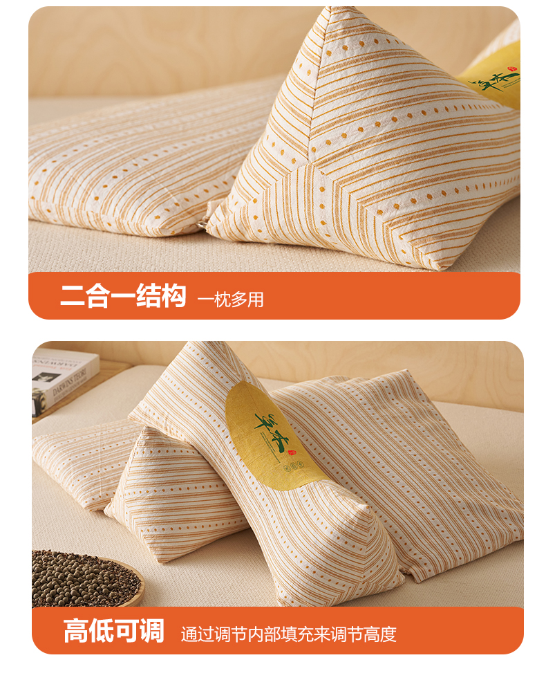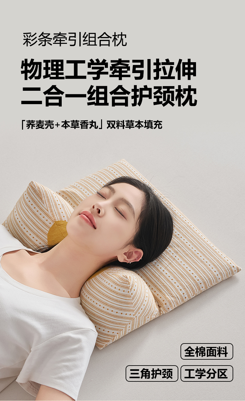 【品牌直发】加倍生活 彩条牵引组合枕荞麦枕香丸枕 4色可选 枕头枕芯yc0414012