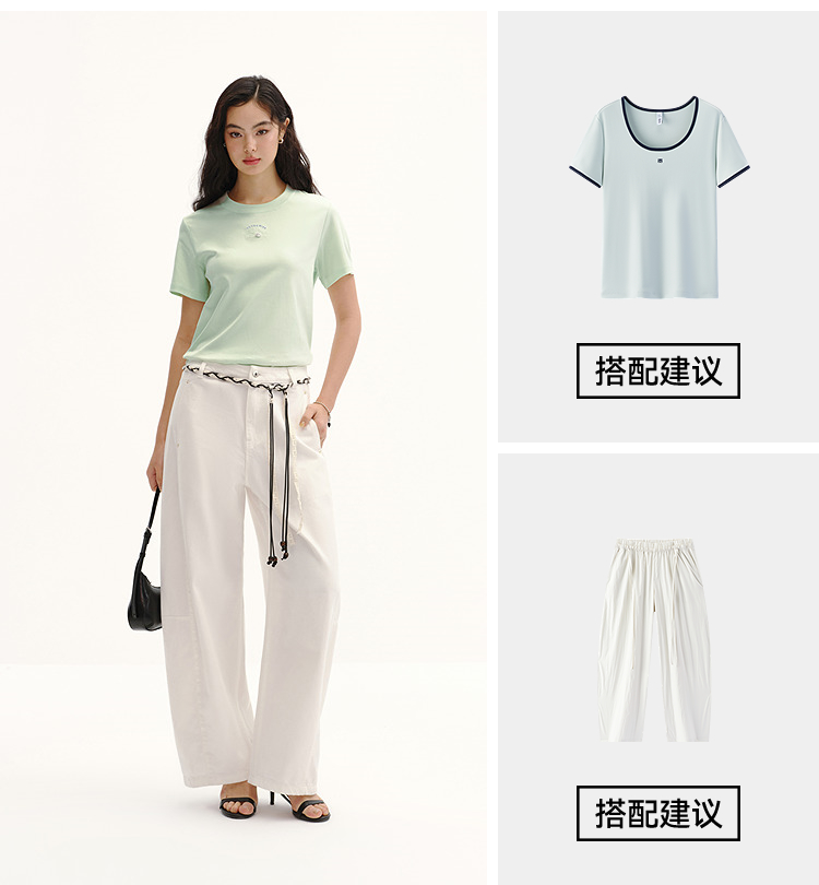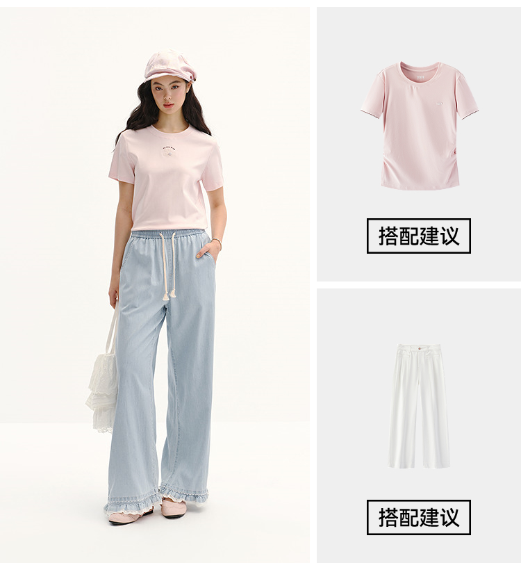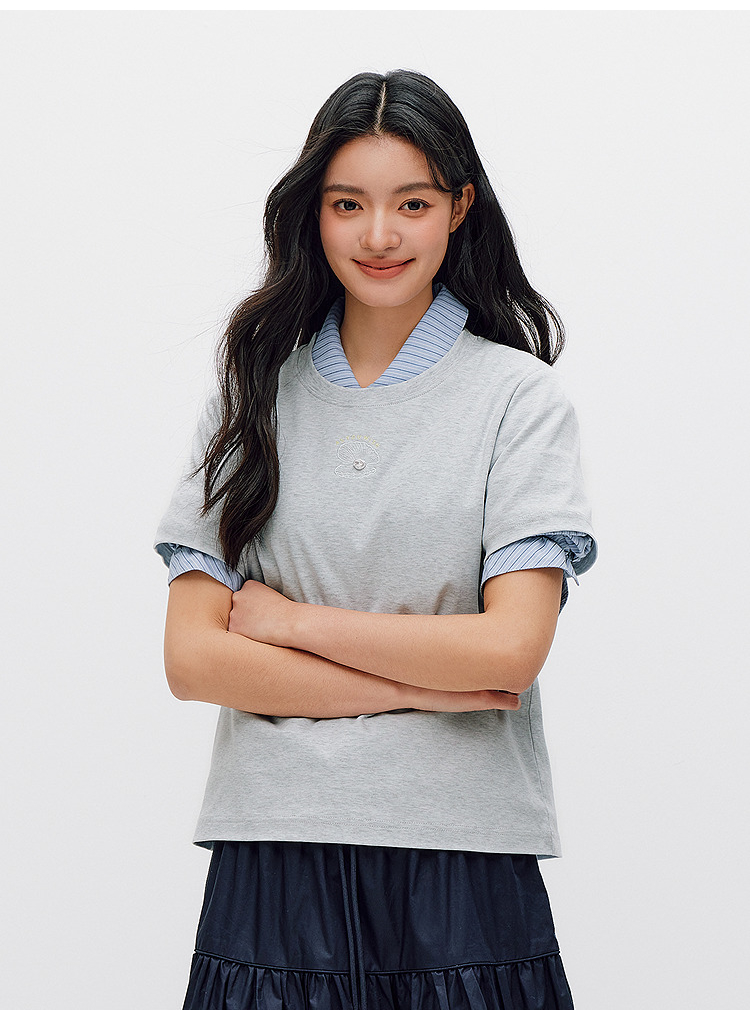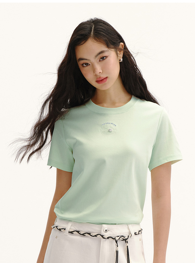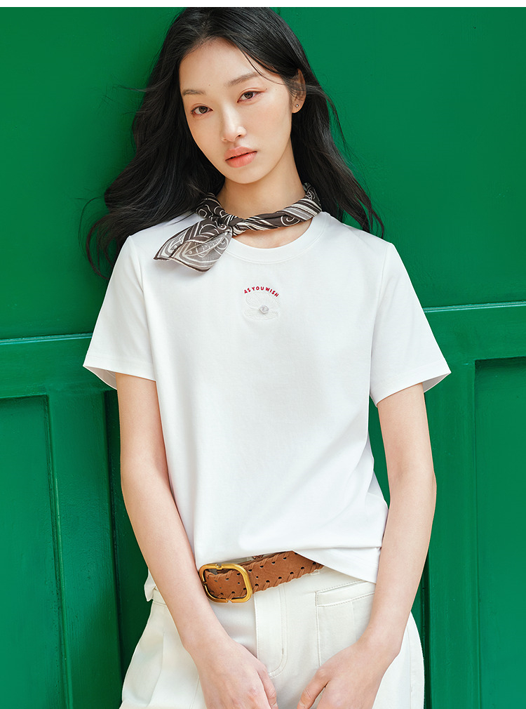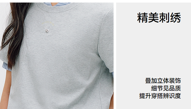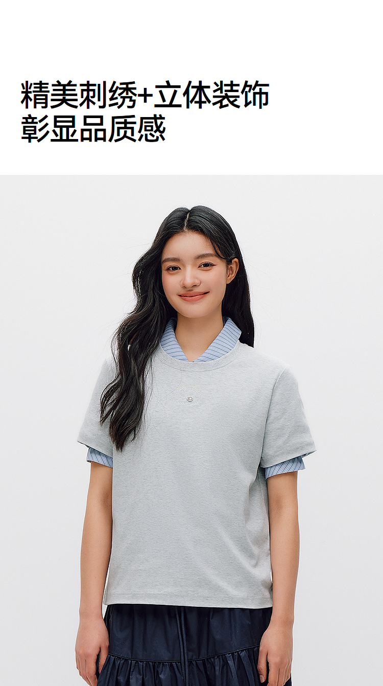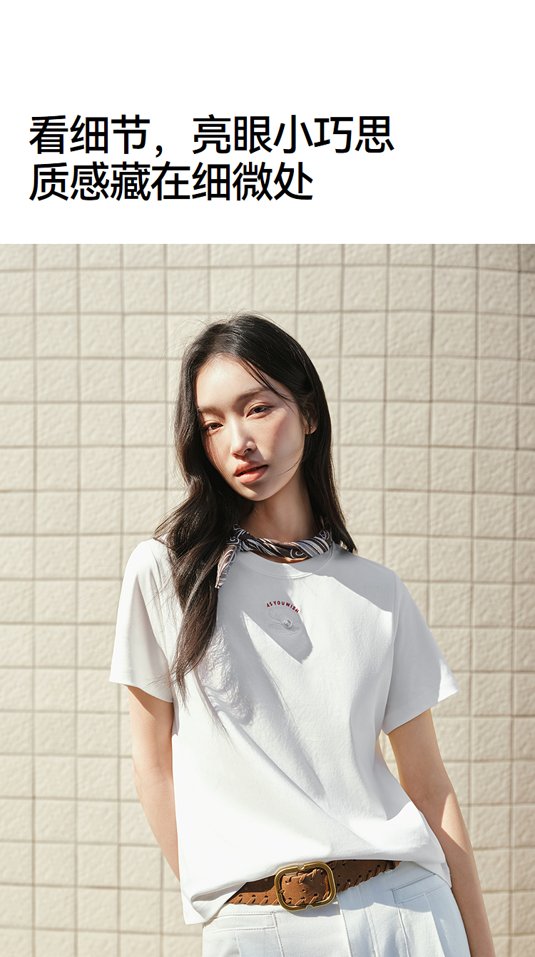 森柔|商场同款森马短袖T恤女夏季圆领刺绣2026新款简约休闲套头衫