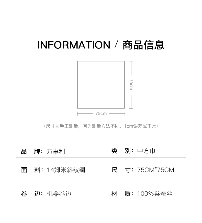 万事利“露华浓”63厘米双面印花真丝中方巾