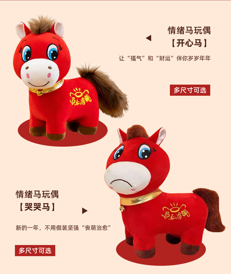 【情绪马玩偶❗哭笑马】创意马上有钱哭哭马生肖马摆件毛绒玩具年会礼品开心马马年吉祥物。rg