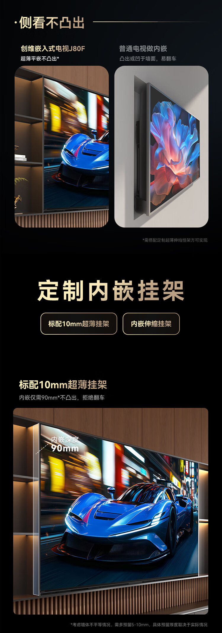 创维(Skyworth) 75寸 行业首款嵌入式电视 超越Mini LED 330Hz超高刷 无缝平嵌 4+128GB大内存 4.2声道回音壁75J80F