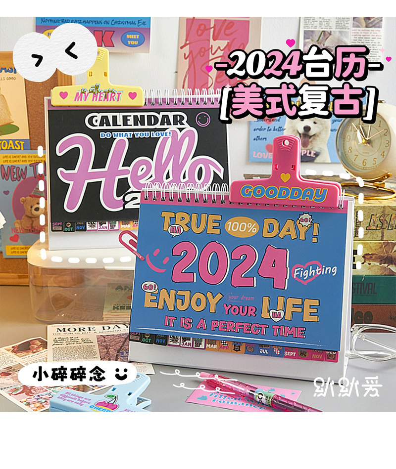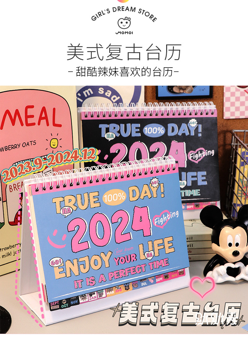 【美式复古台历!甜酷辣妹喜欢的台历-】2024年新款台历美式复古创意桌面儿童摆件倒计时记事日历,既是台历也是桌面摆件。