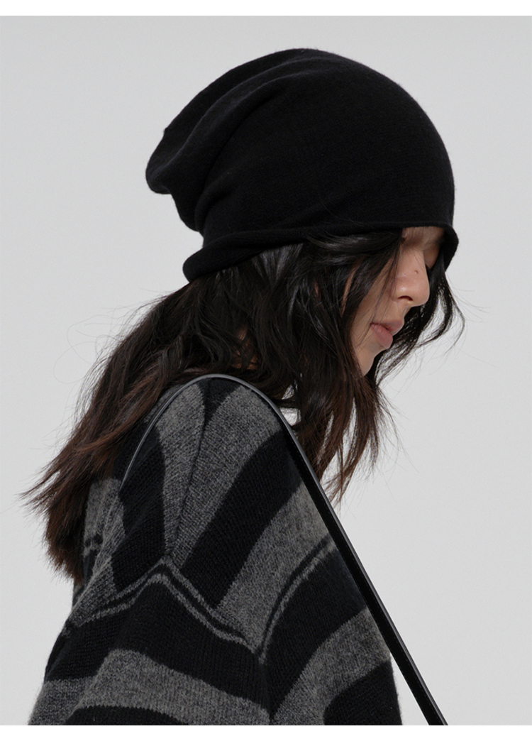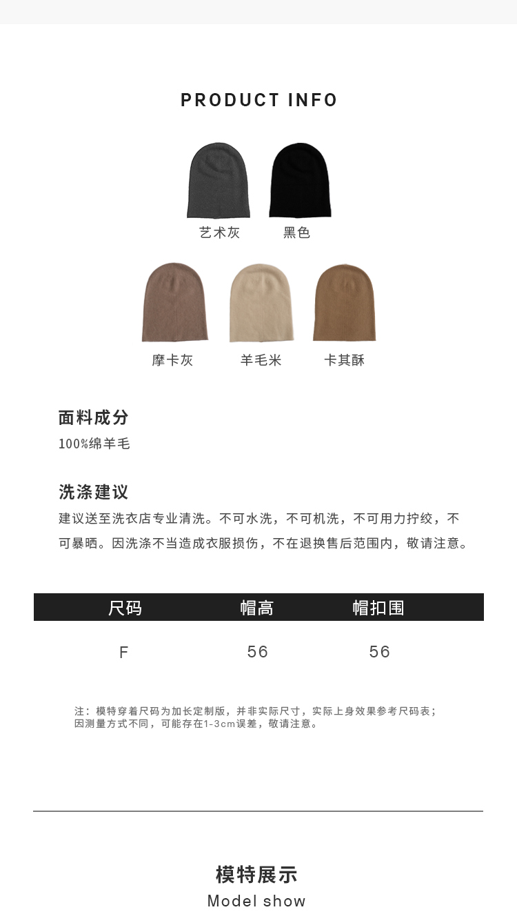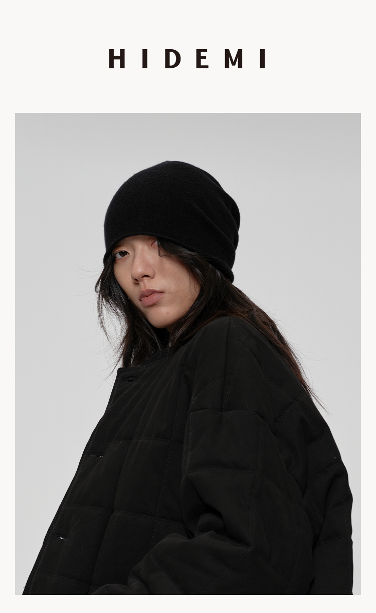 HIDEMI【辛芷蕾同款】进口美利奴羊毛极简堆堆感慵懒冷帽 黑色/摩卡灰/羊毛米/卡其酥/艺术灰