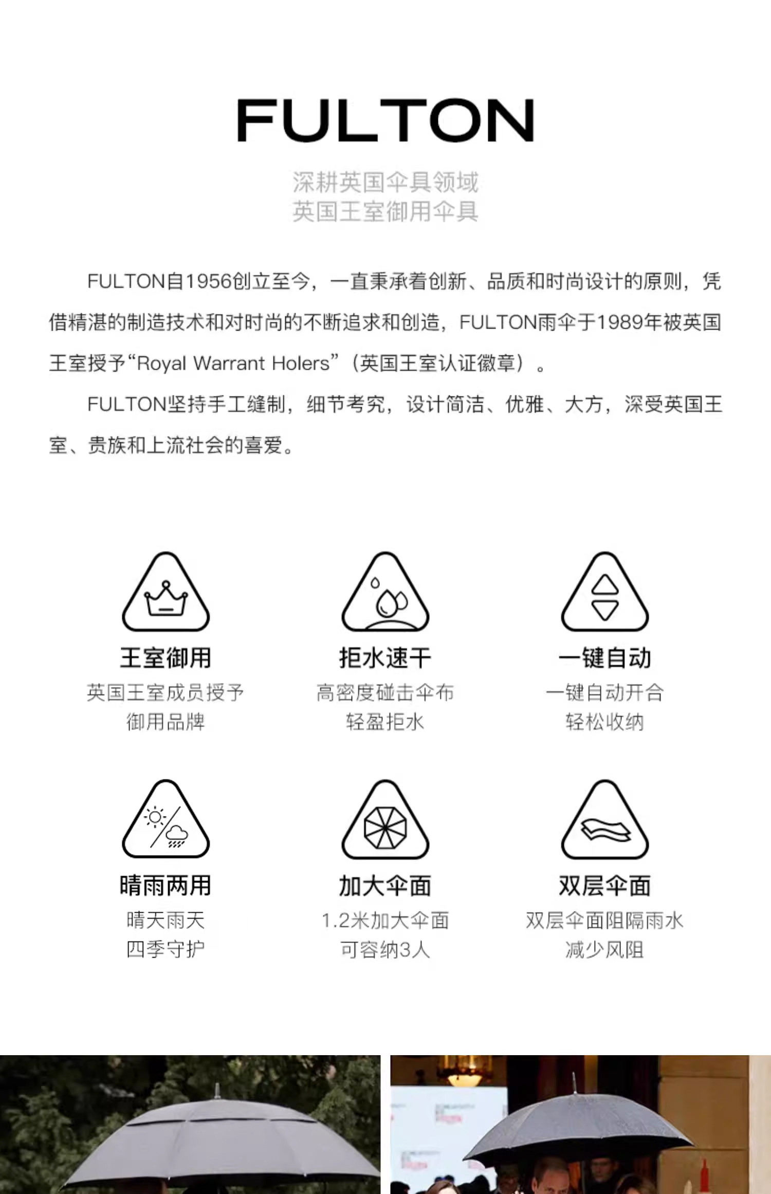 【FULTON大号男士自动折叠伞】重量:约545g撑开伞幅:约120cm折叠伞长:约37cm 款式:折叠自动伞伞骨:8骨【英国皇室指定供应商】