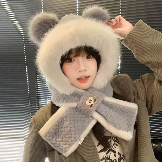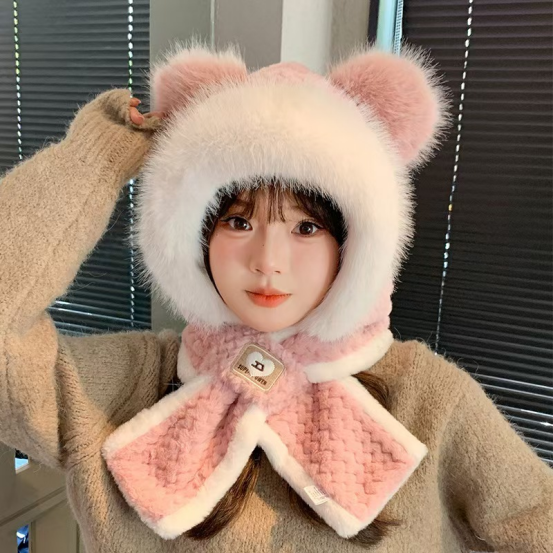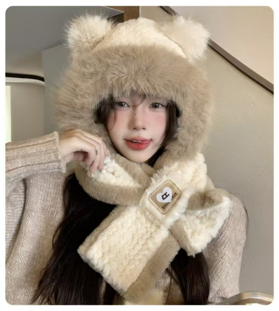 💥▫️救命!🥇终于找到本命保暖神器【觅贝思 拼色小熊帽子】🔥谁能拒绝这顶毛绒绒的三合一神帽!五色all in也不过分! 帽子+围巾+耳罩三合一设计