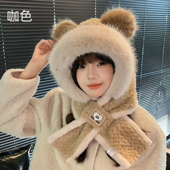 1️⃣ 帽子+围巾+耳罩一体式!护头护颈护耳朵,再也不怕妖风钻领口! 2️⃣ 5种软糯配色:咖色/米色/灰色/红色/粉色~黄皮白皮都能找到本命色! 3️⃣ 内里亲肤绒超细腻,戴眼镜也不会卡鬓角!