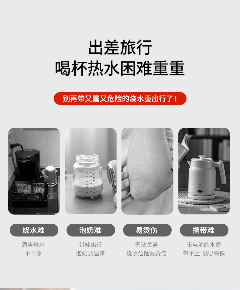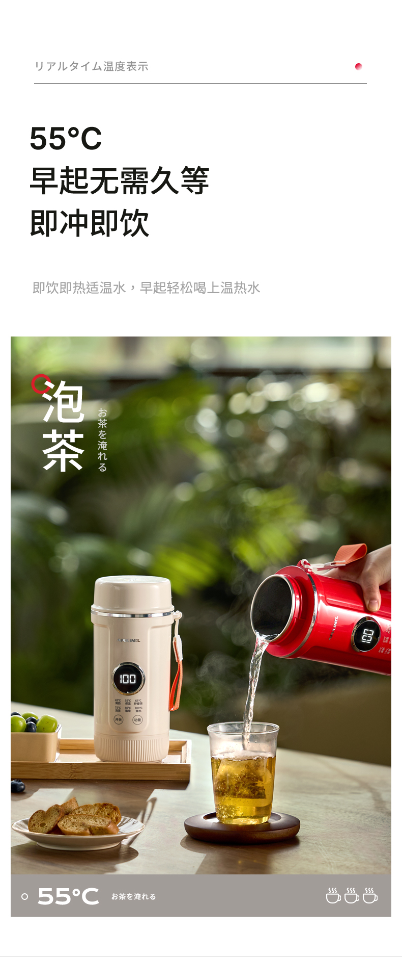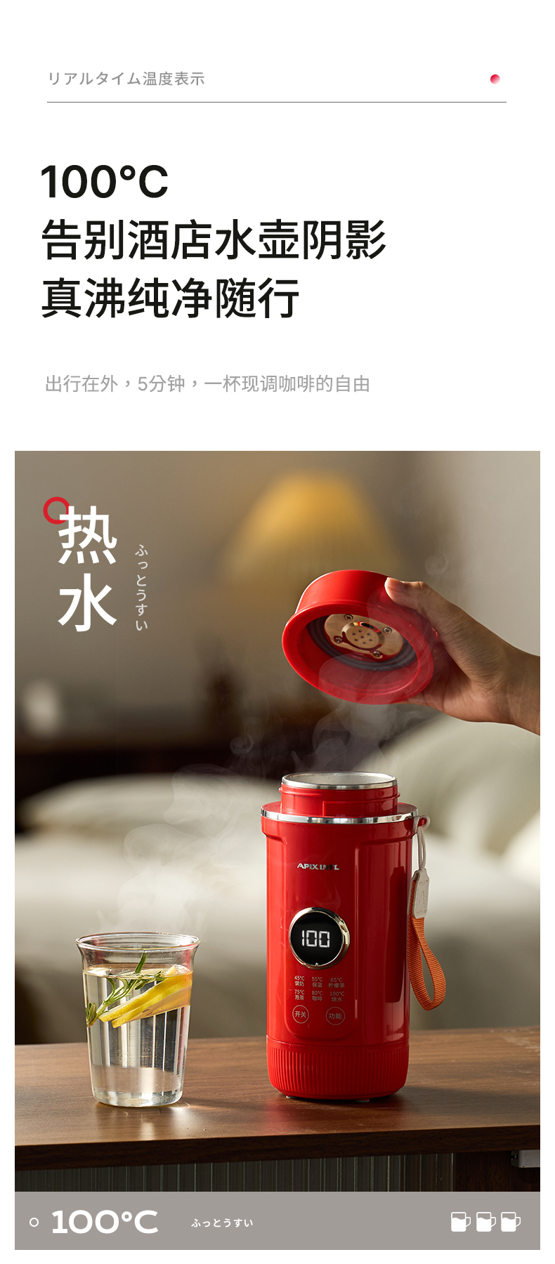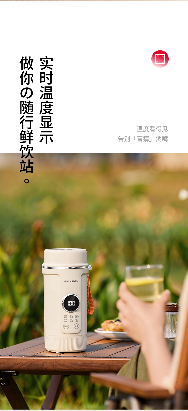 【烧水保温二合一】安本素便携电热水壶APIX-MC04 烧水5分钟保温12小时 6档调温 304/316不锈钢内胆 LED实时显温 容量650ml 无电池高铁飞机随身带