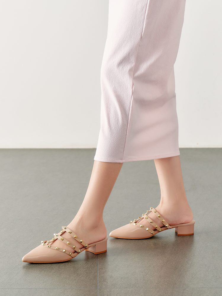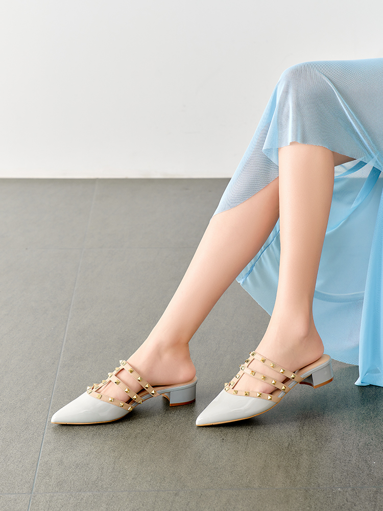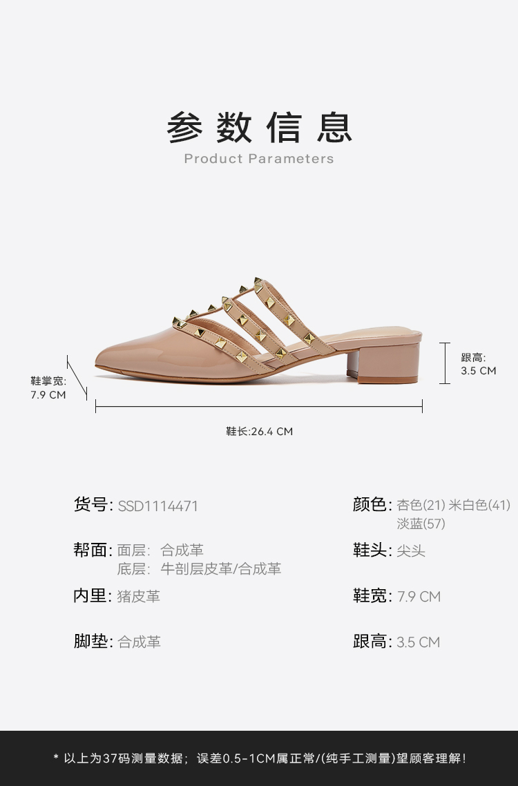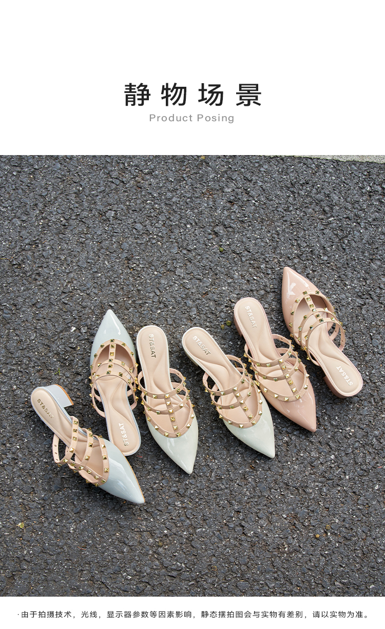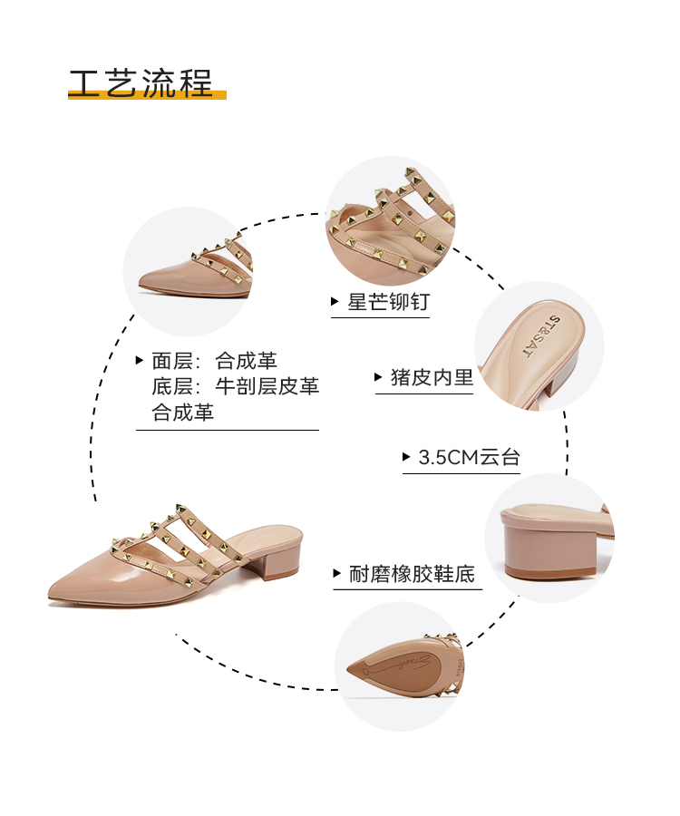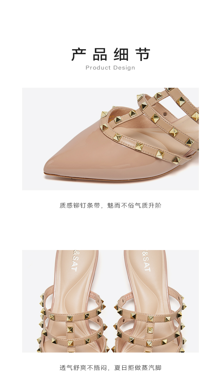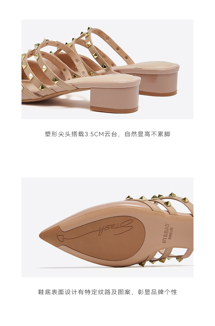 【铆钉系列】星期六时尚尖头粗跟穆勒拖SSD1114471