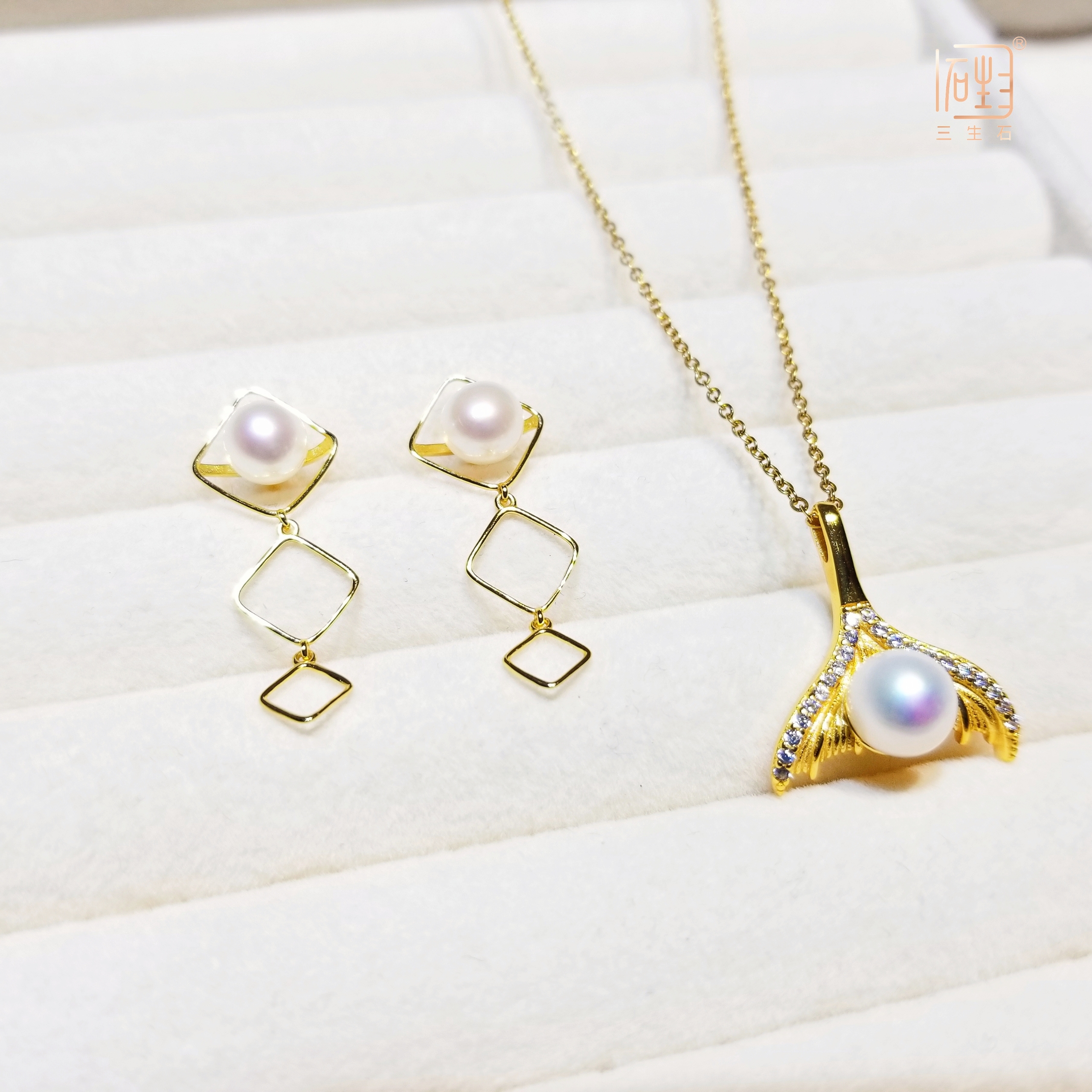 三个菱形叠加与珍珠的搭配设计