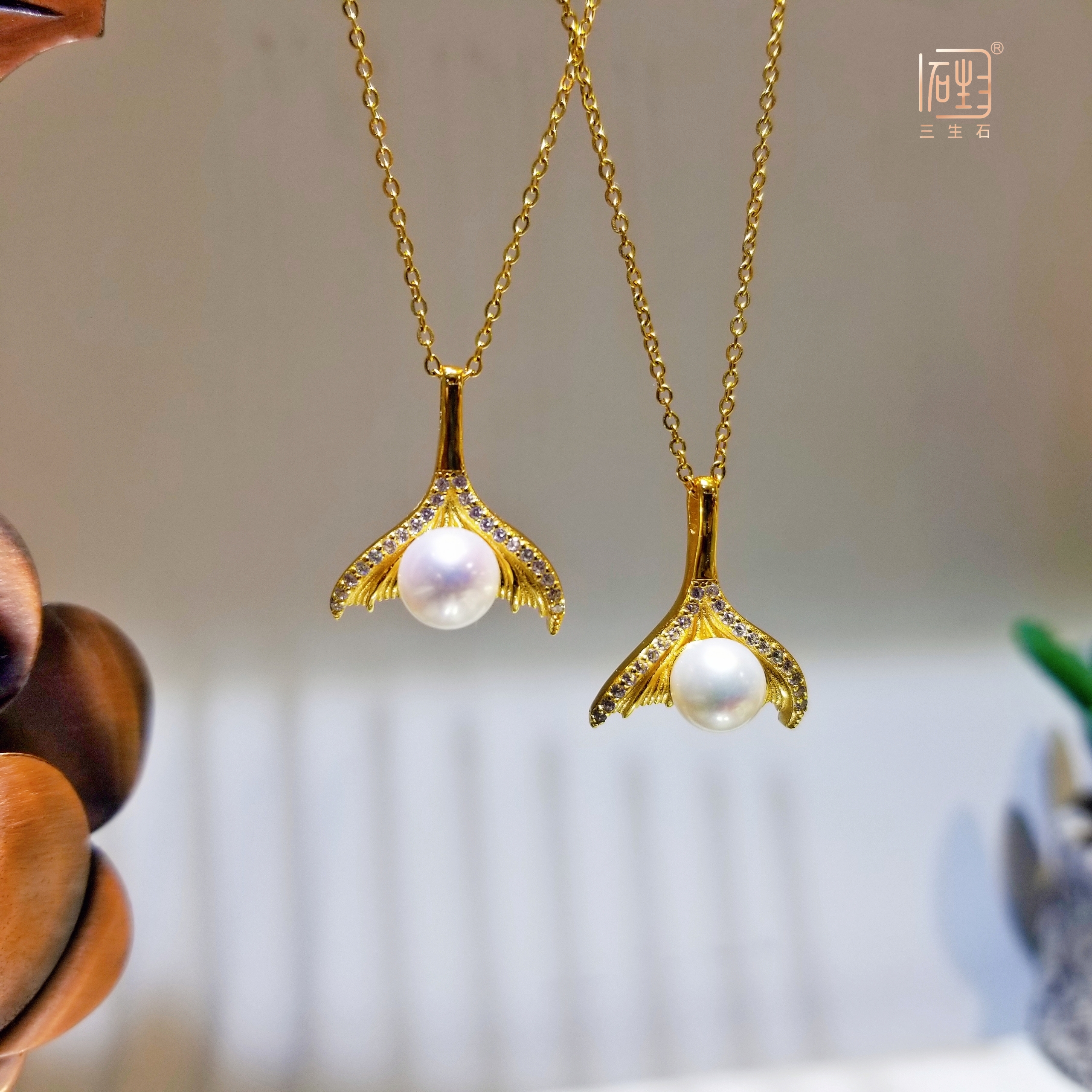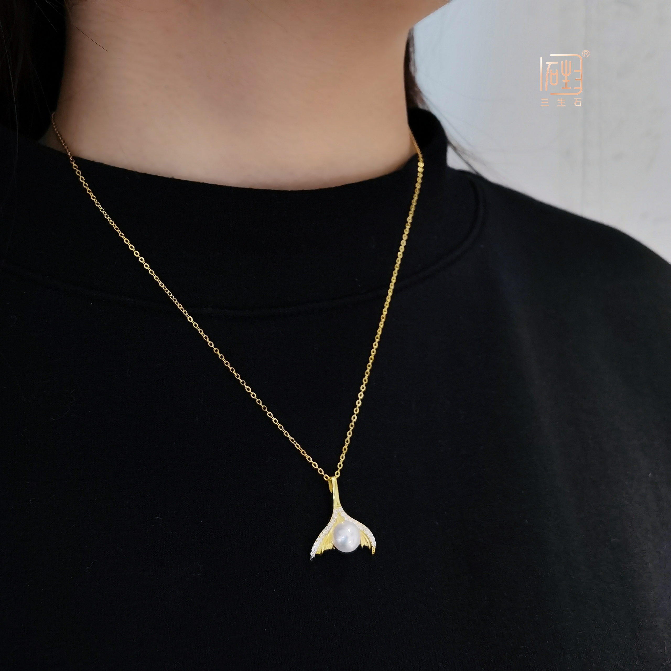 天然akoya珍珠鱼尾项链