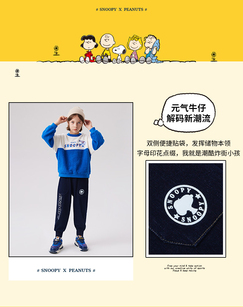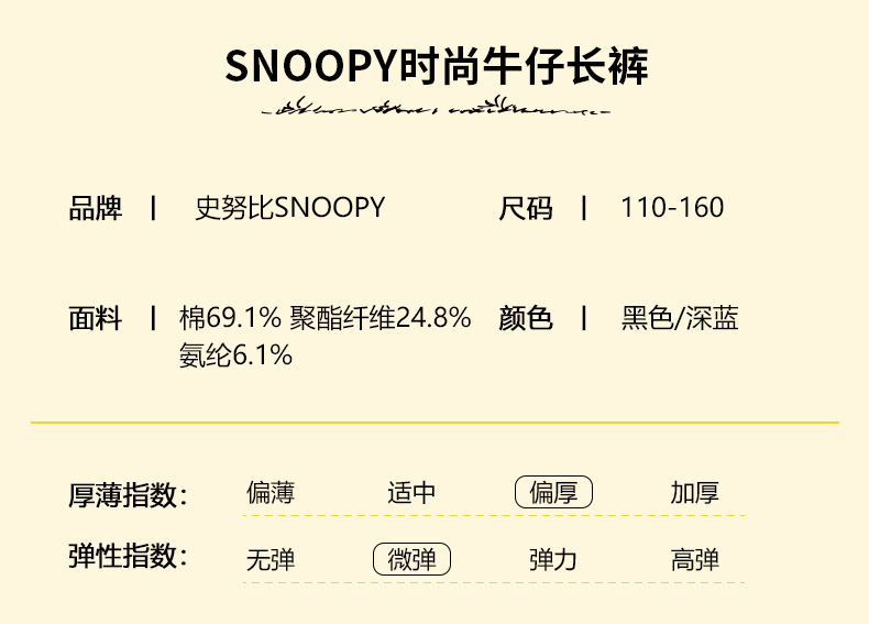 SNOOPY史努比童装春秋休闲运动牛仔裤束脚裤110-160 SF3356003
