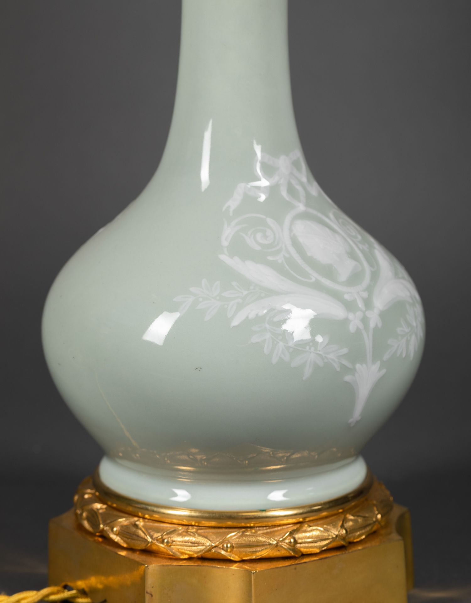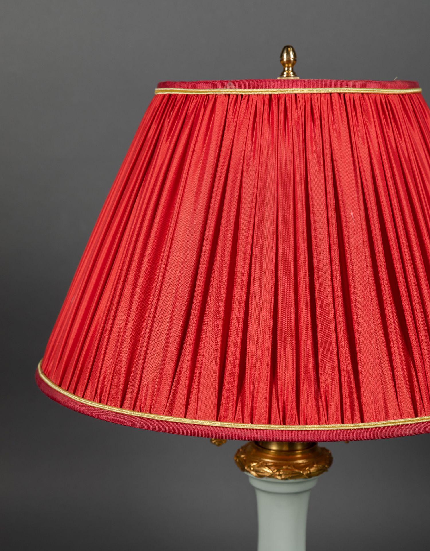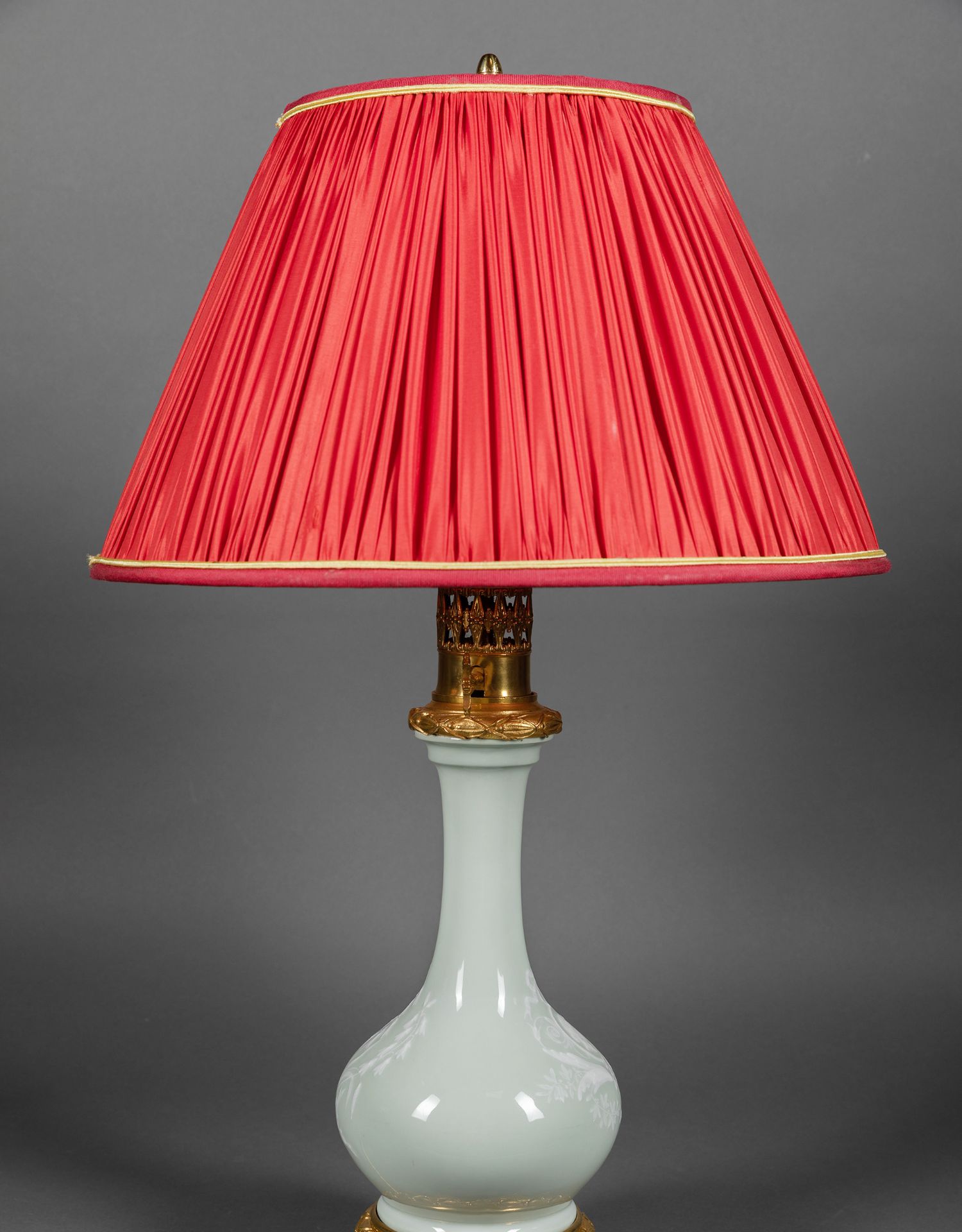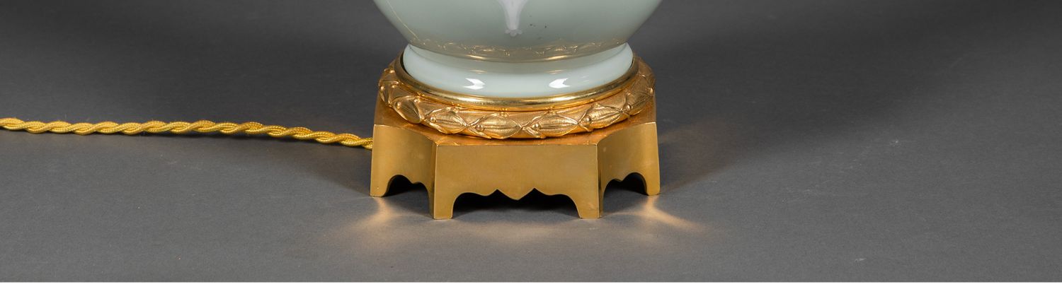 独角鹿西洋古董铜鎏金堆白纹饰青釉瓷瓶手工百褶灯罩台灯一对