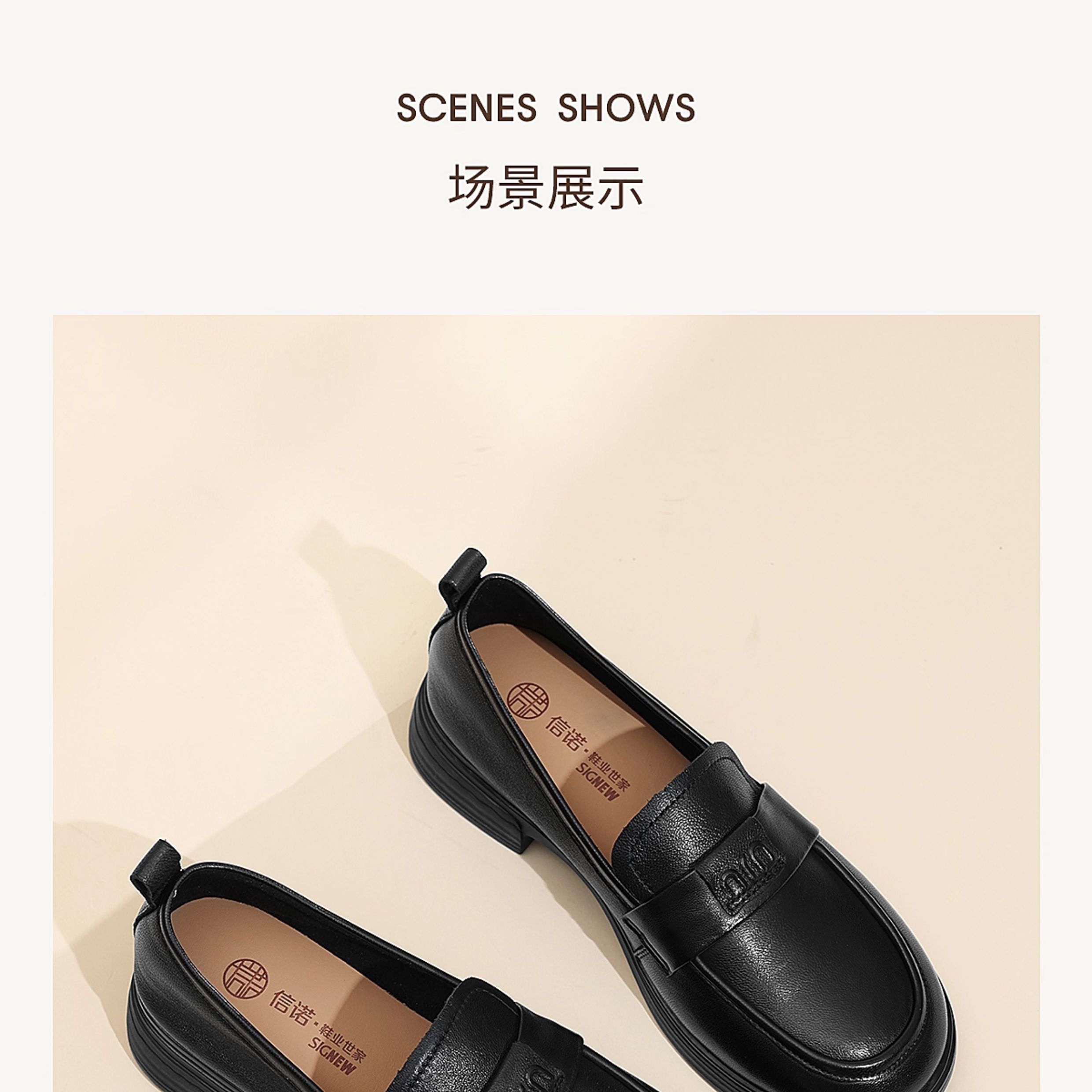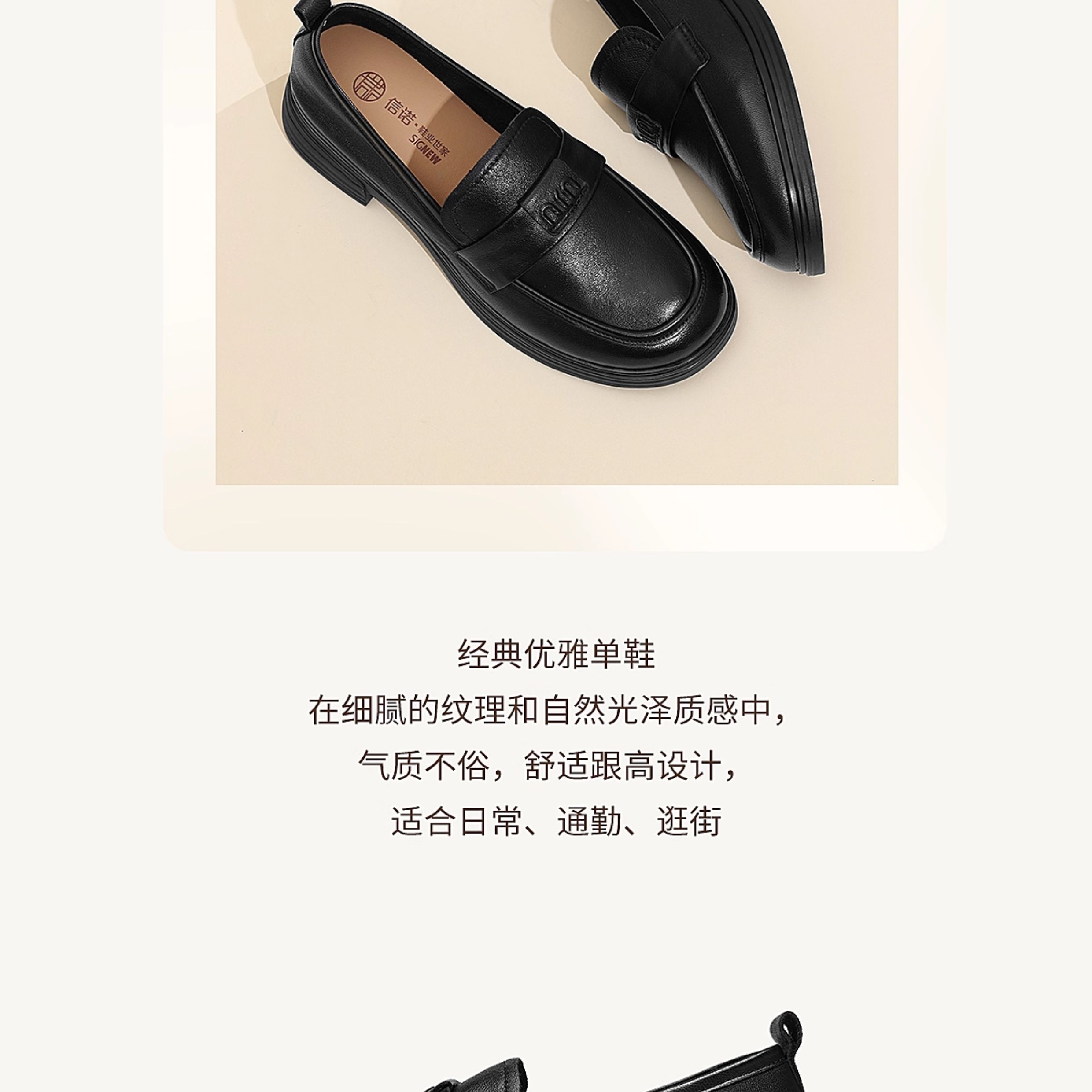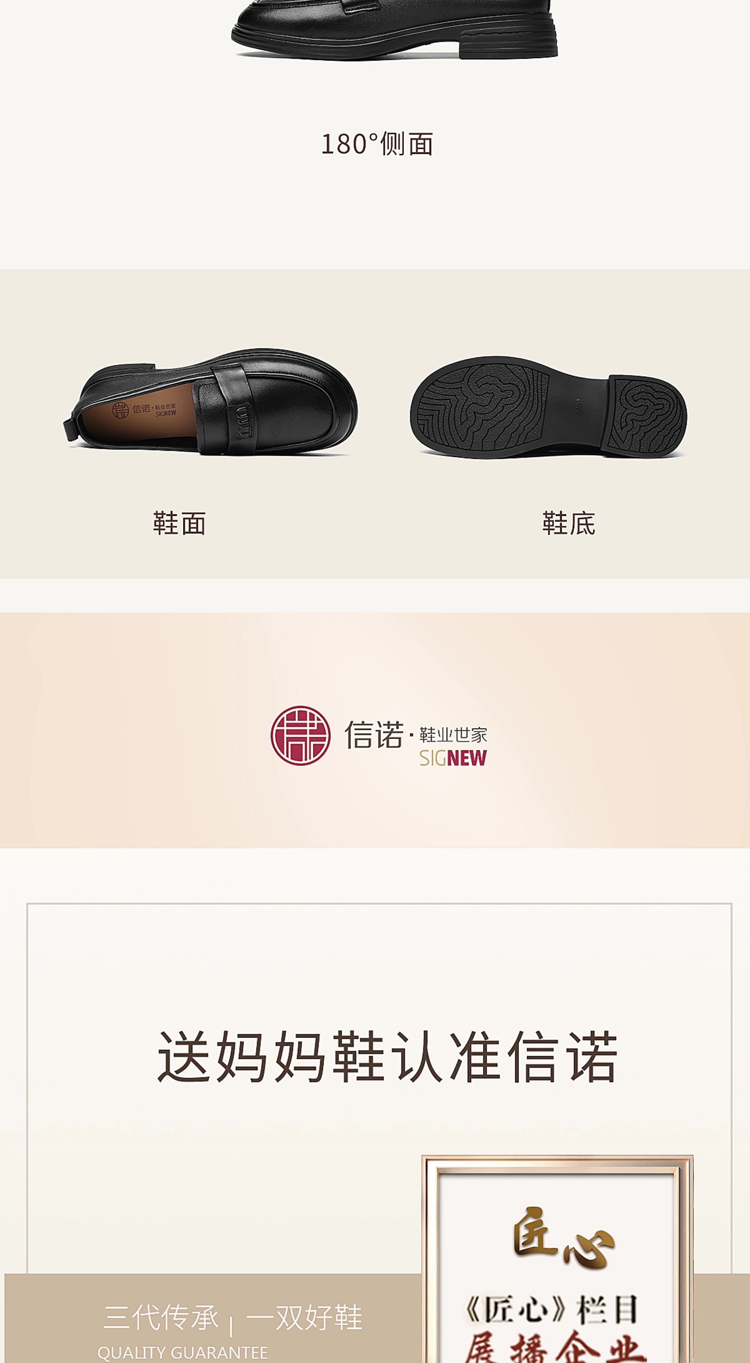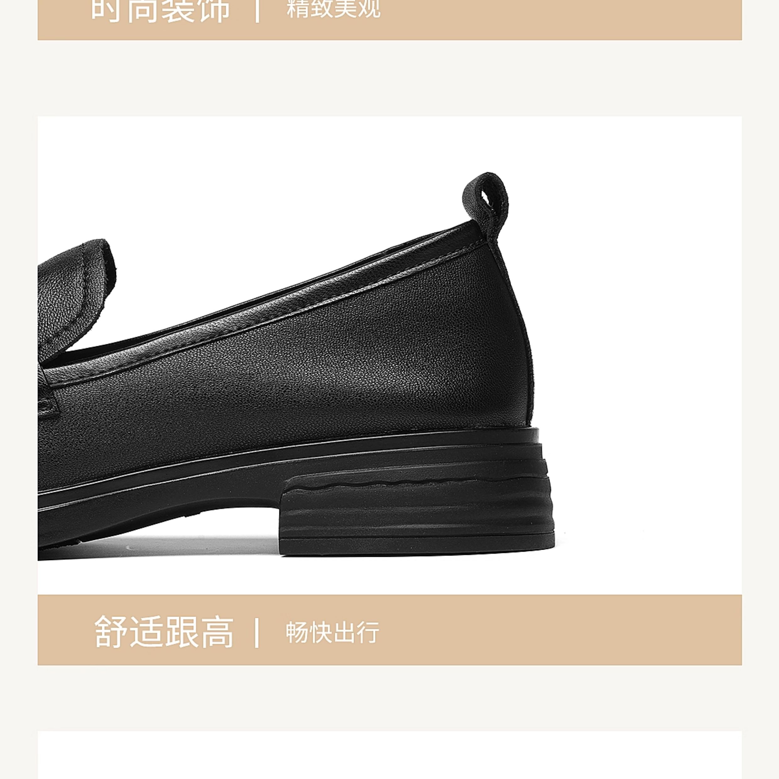 信诺羊皮乐福鞋软底妈妈鞋英伦风粗跟一脚蹬小皮鞋女2025秋季新款X5Q032-165