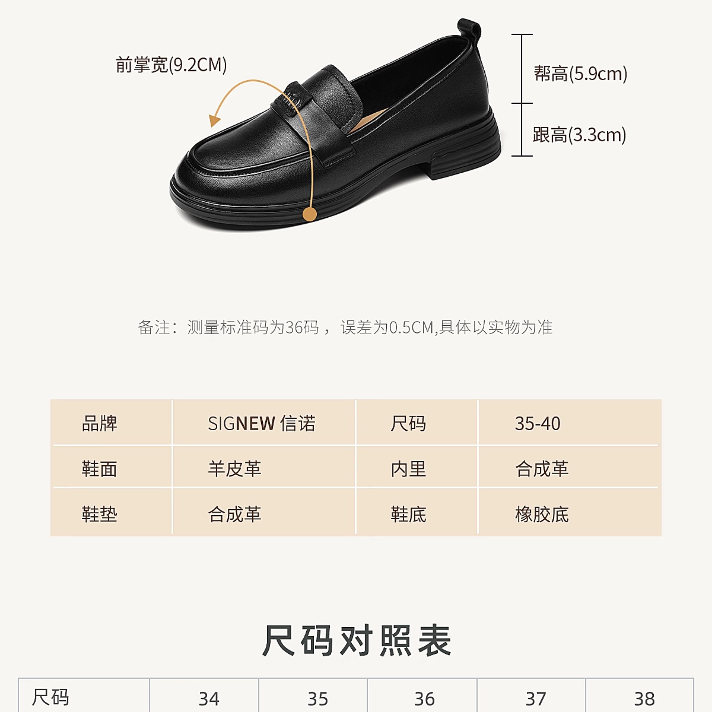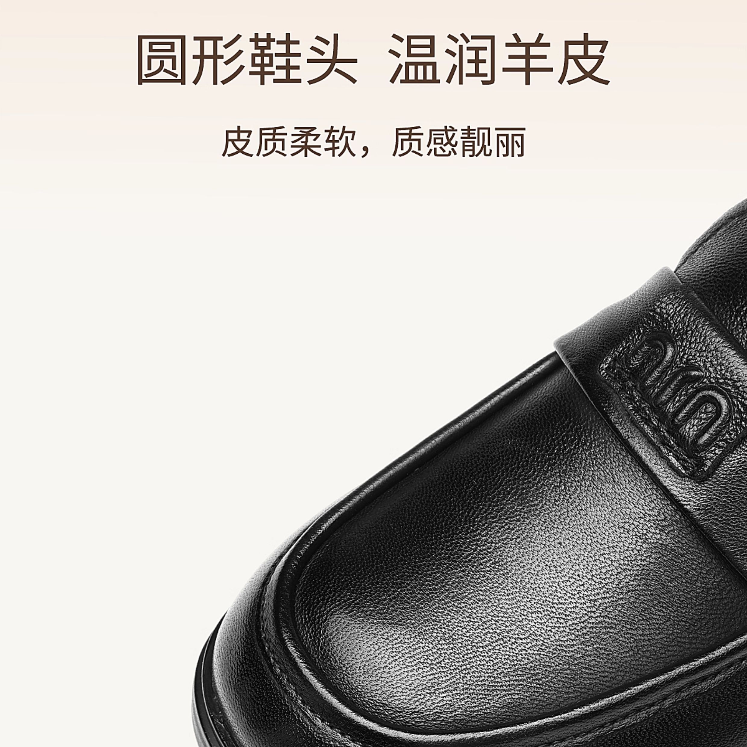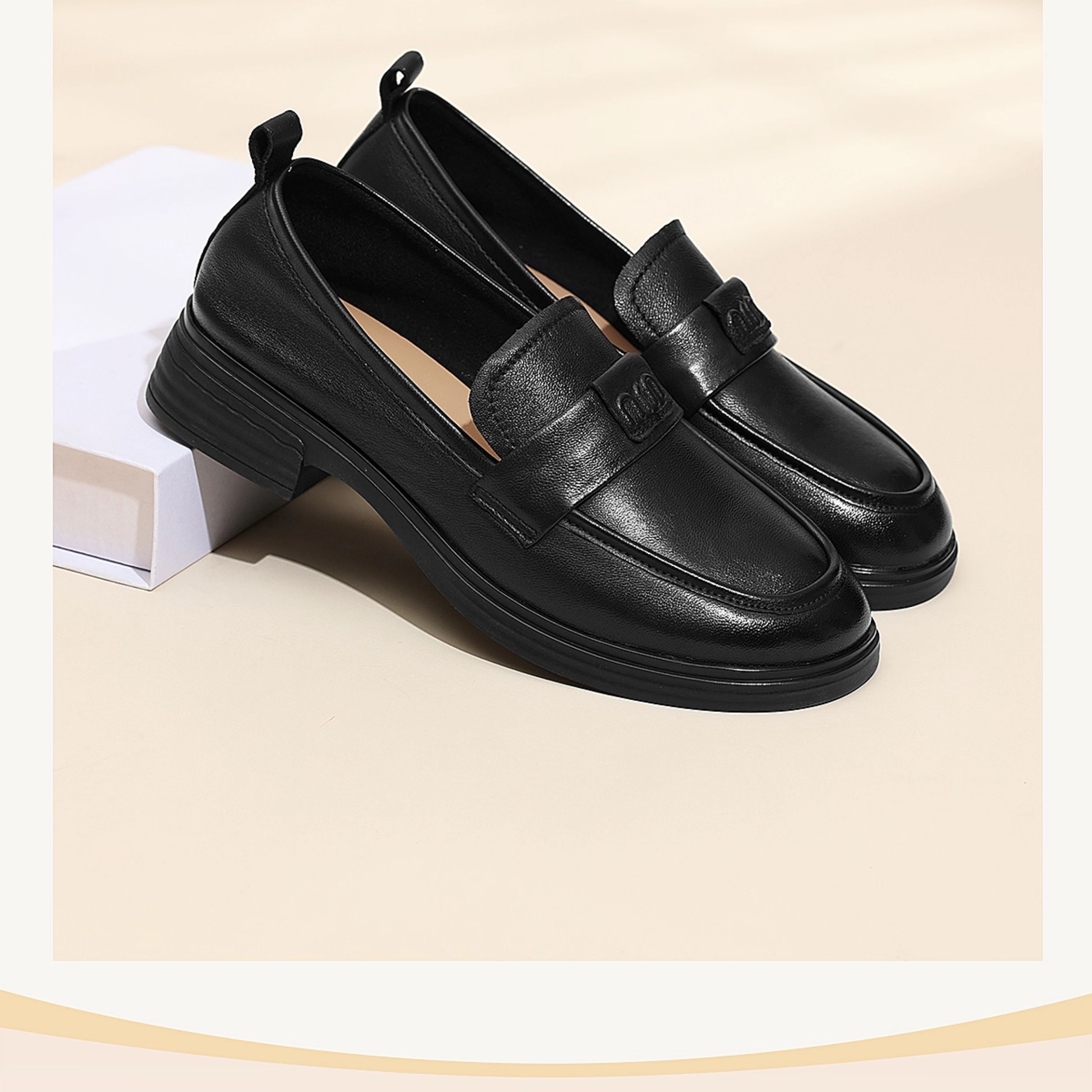 信诺羊皮乐福鞋软底妈妈鞋英伦风粗跟一脚蹬小皮鞋女2025秋季新款X5Q032-165