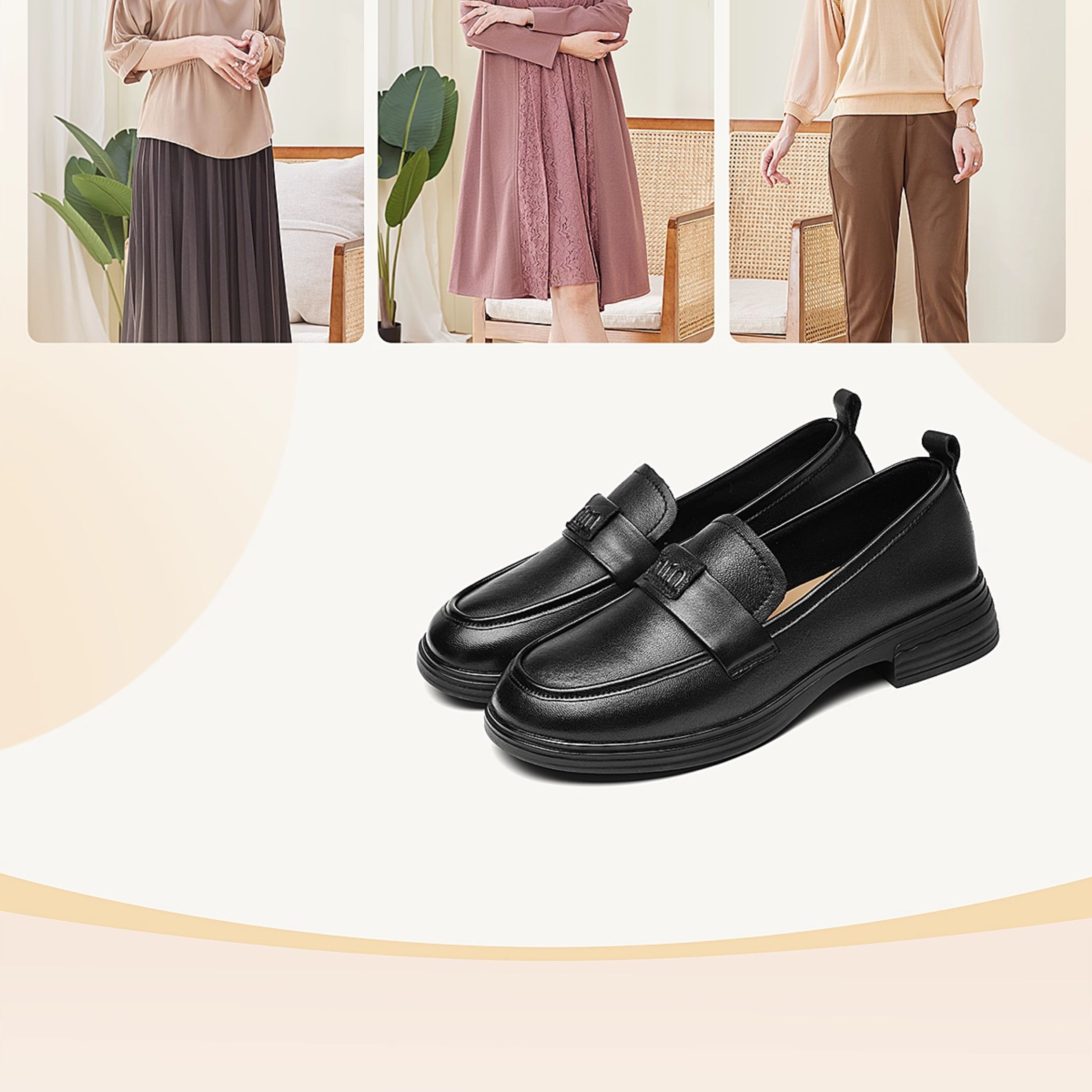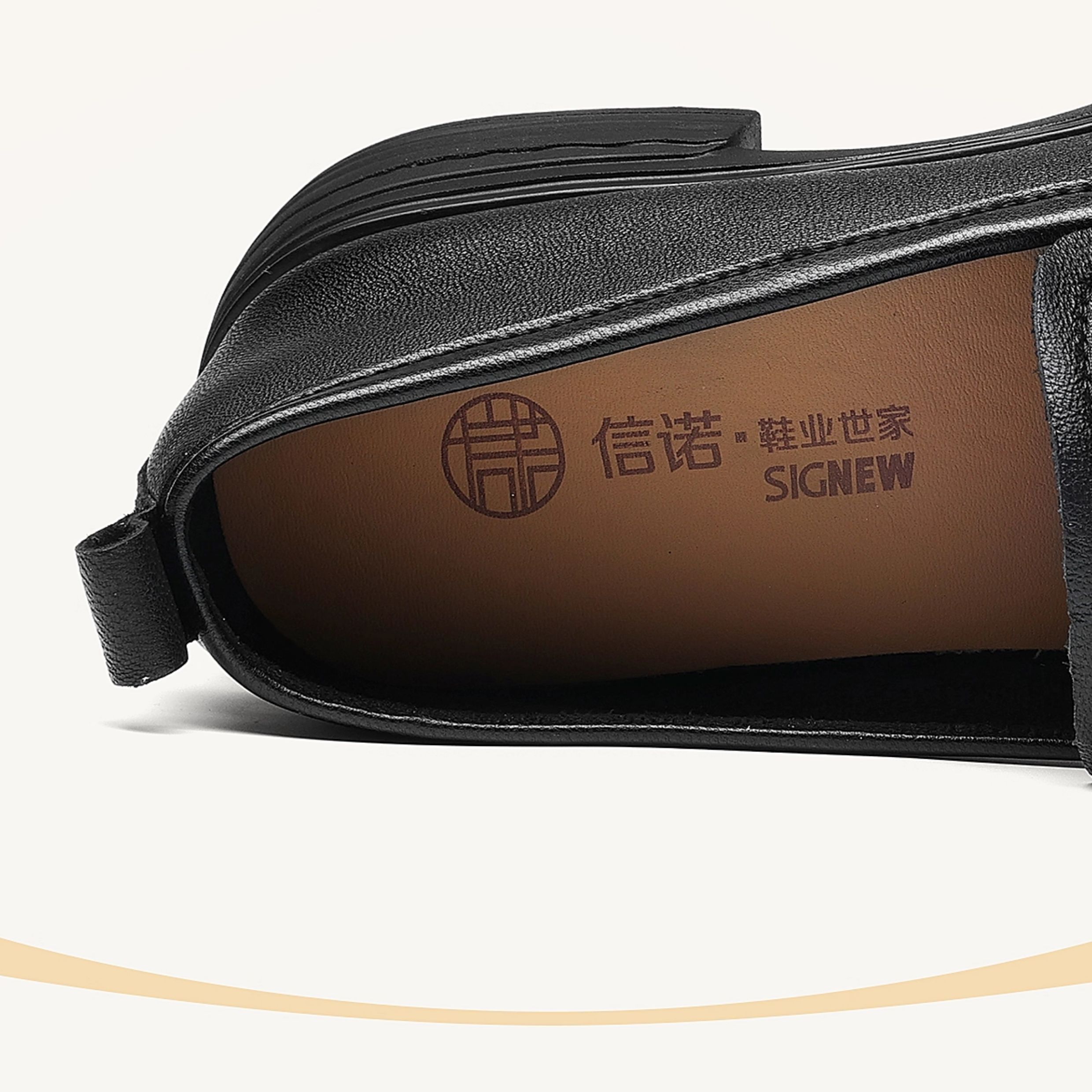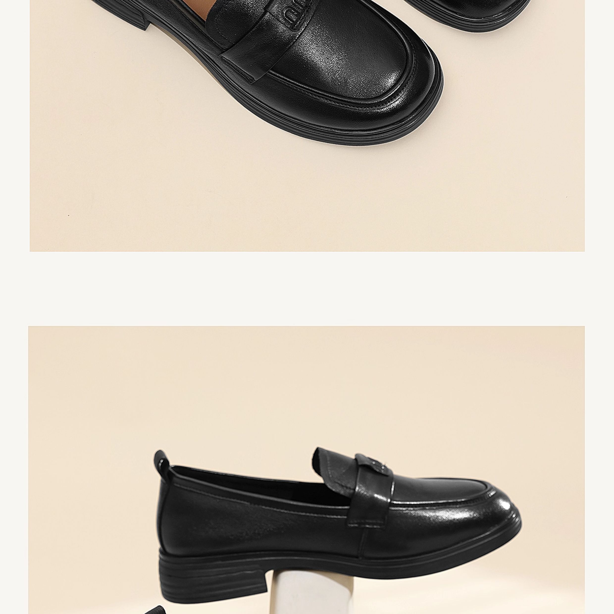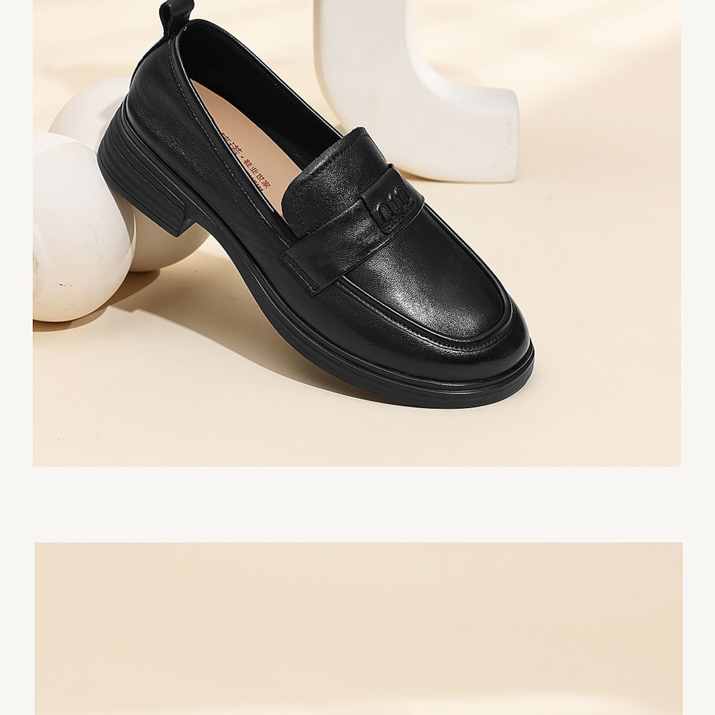 信诺羊皮乐福鞋软底妈妈鞋英伦风粗跟一脚蹬小皮鞋女2025秋季新款X5Q032-165