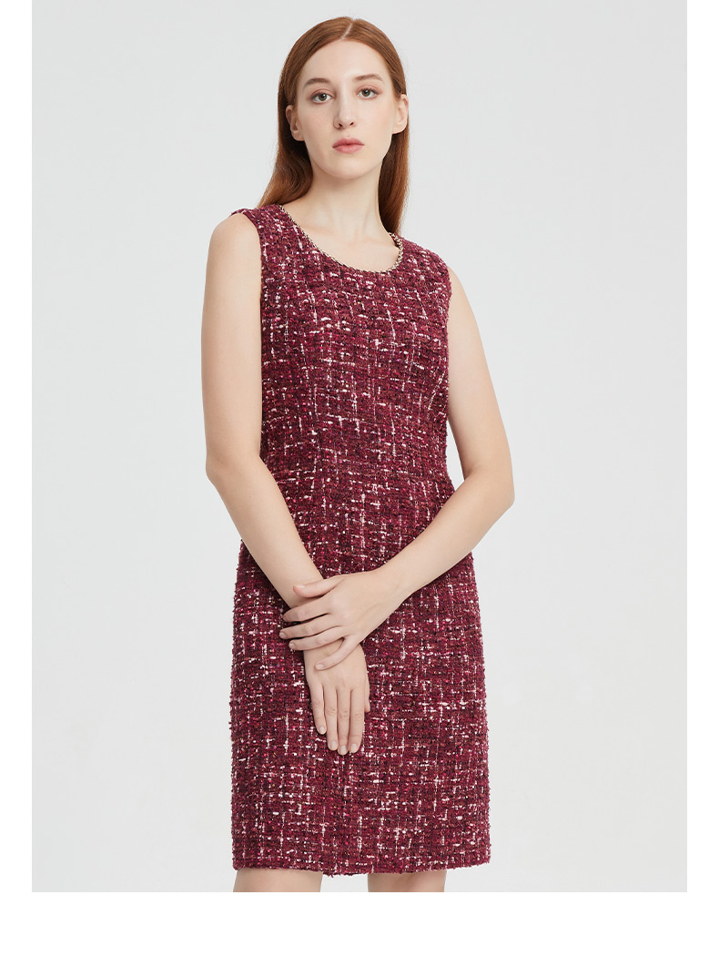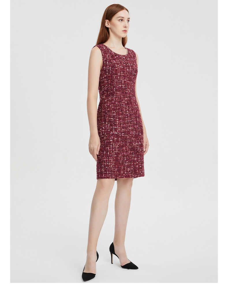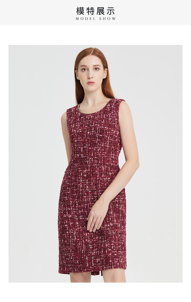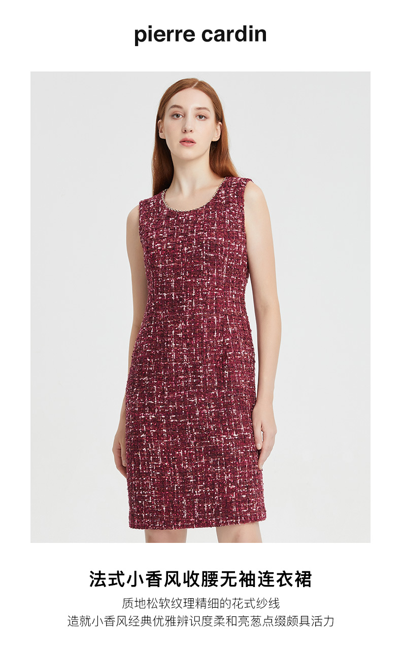 皮尔卡丹女装连衣裙法式圆领无袖小香风通勤裙子P1401D1986D0
