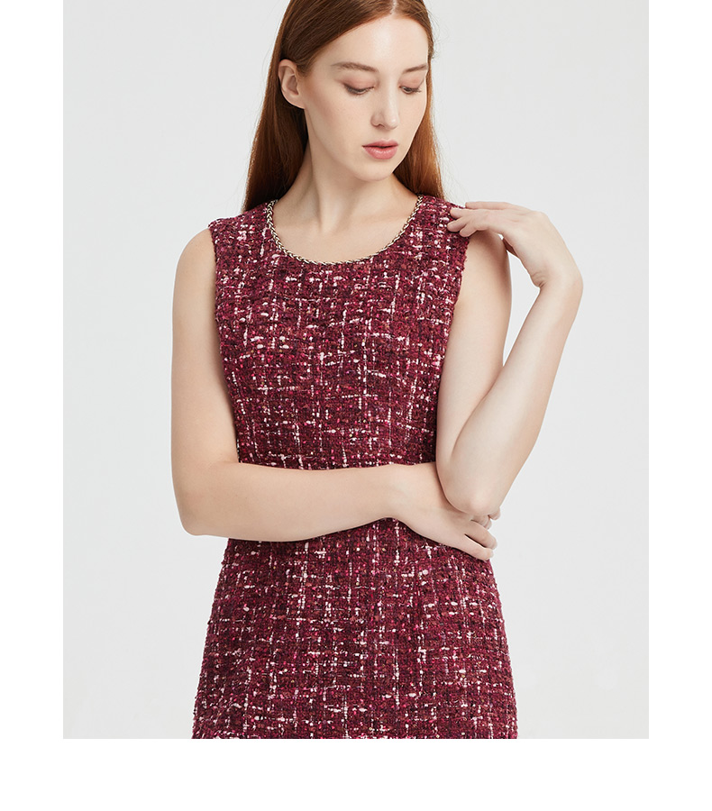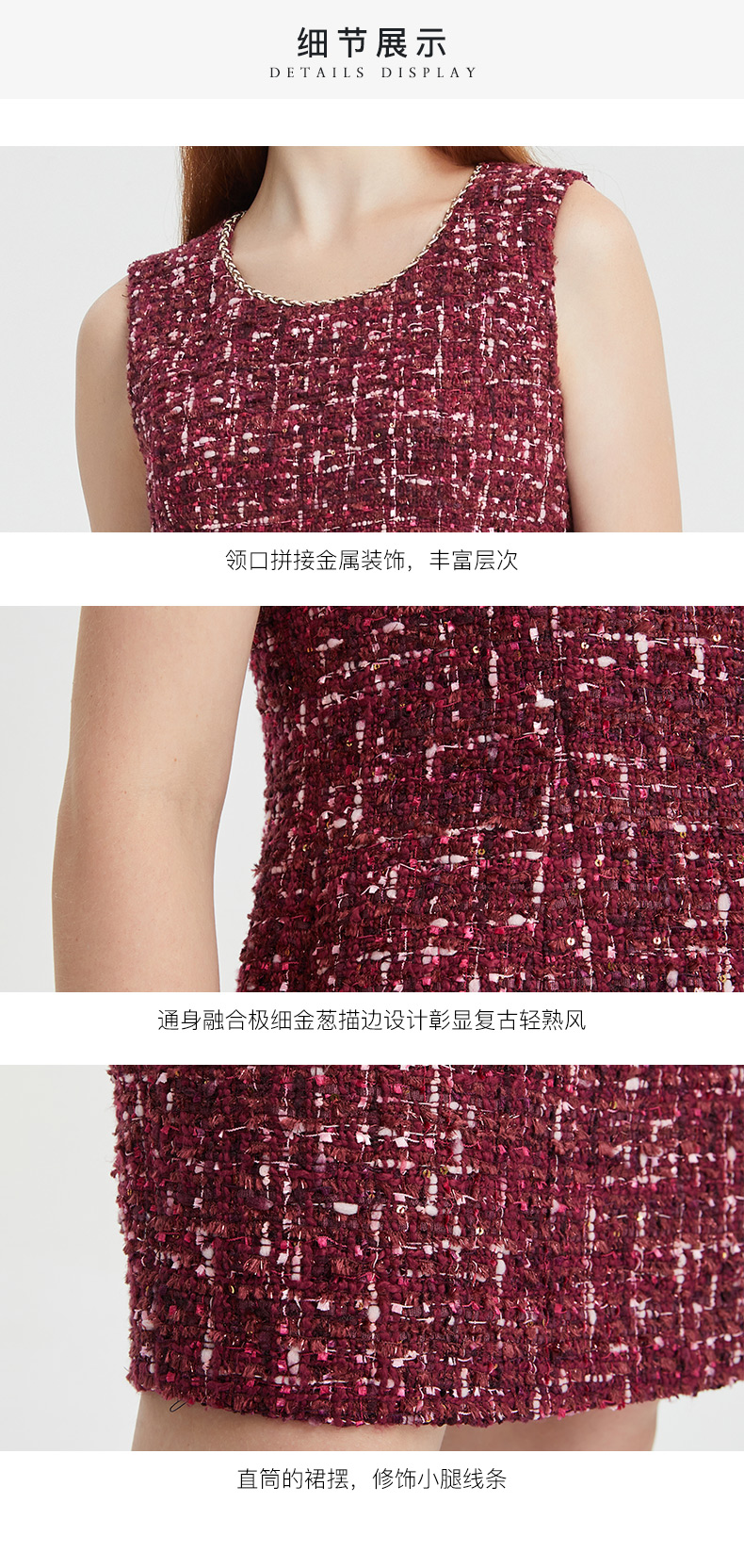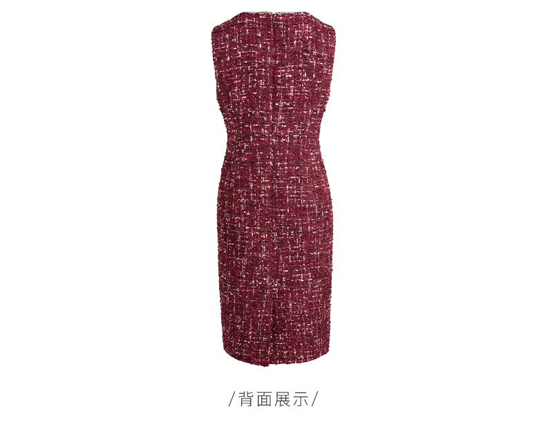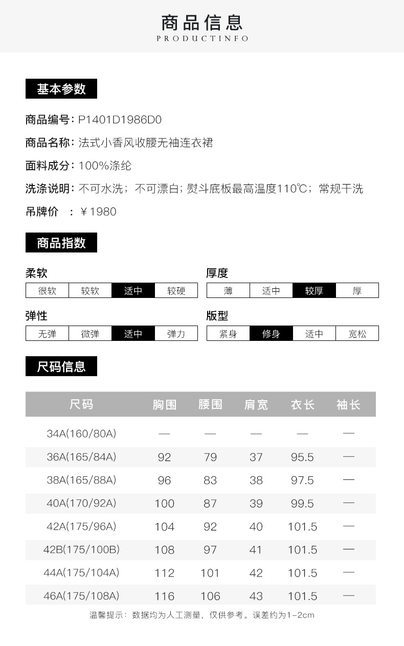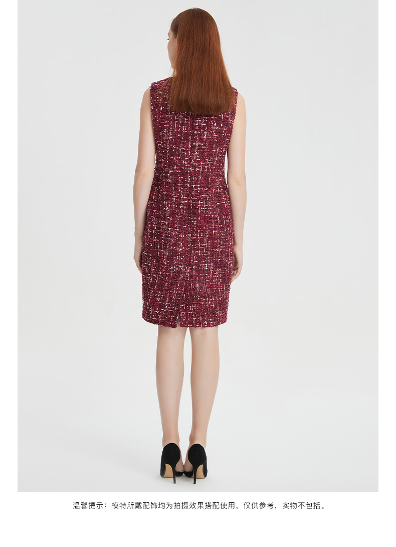 皮尔卡丹女装连衣裙法式圆领无袖小香风通勤裙子P1401D1986D0