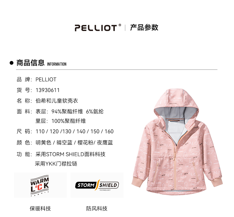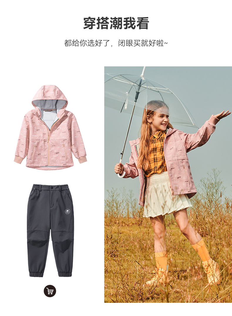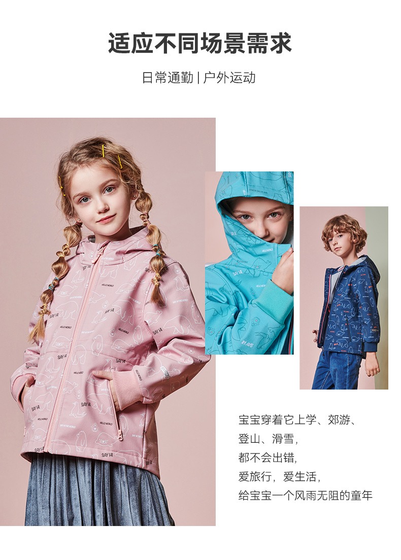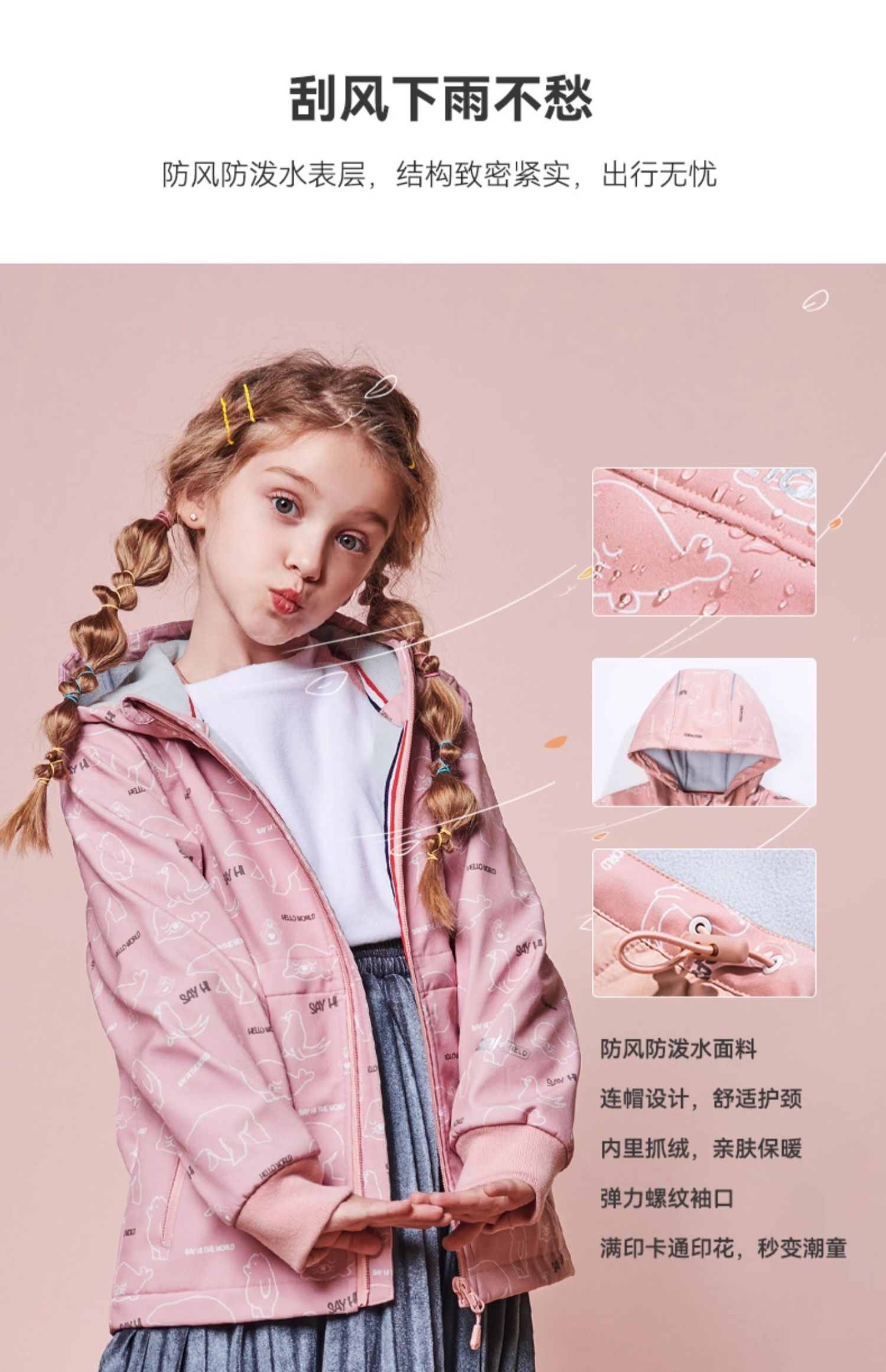 伯希和户外软壳衣男童女童防风防泼水运动外套冲锋衣内胆休闲上衣