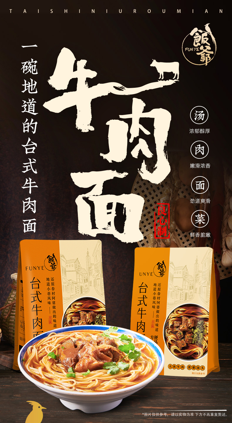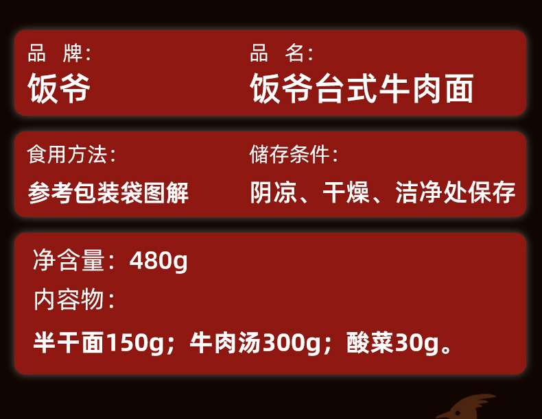 饭爷牛肉面480g*4袋装林依伦台式红烧牛肉面方便速食非油炸牛肉面