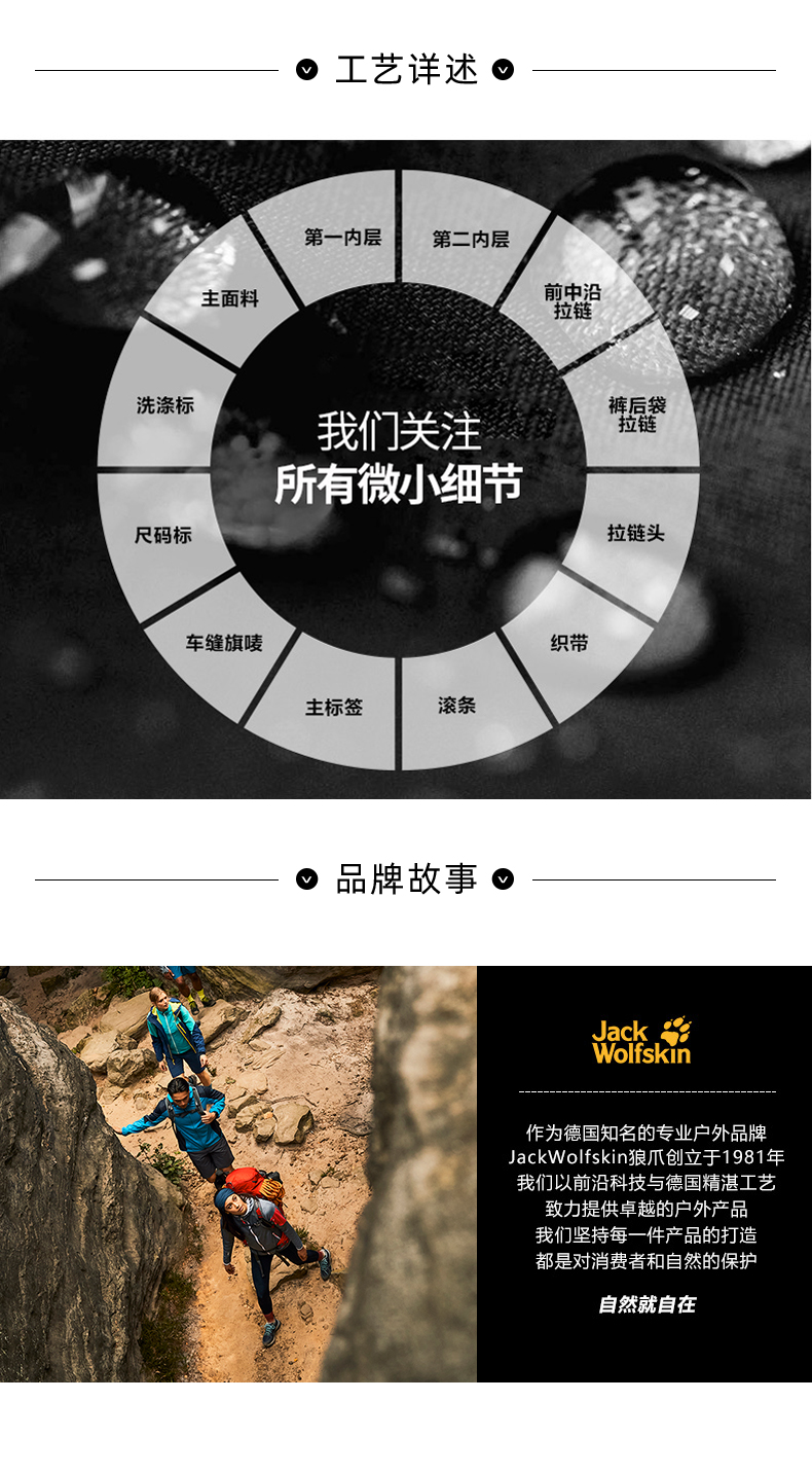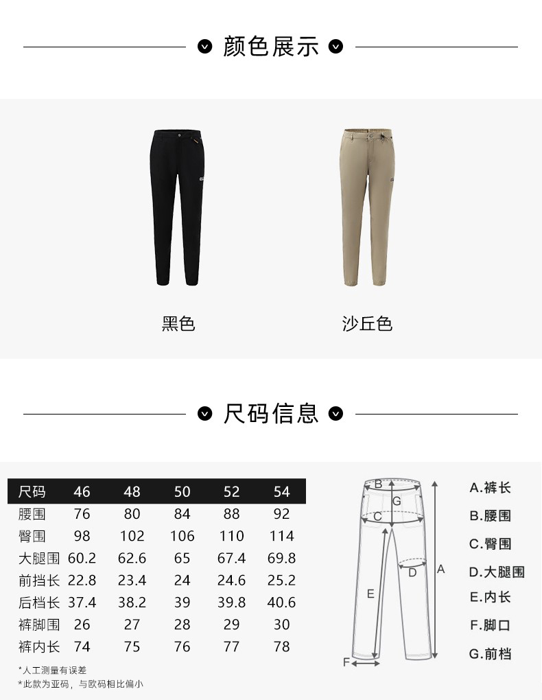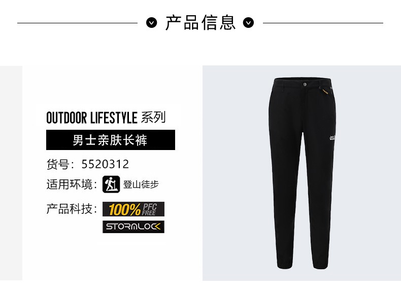 库存尾货JackWolfskin德国狼爪春秋新品带弹力防风标准版型长裤男(断码只有XL52)