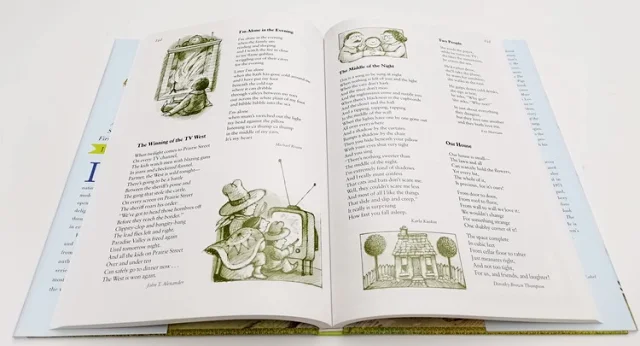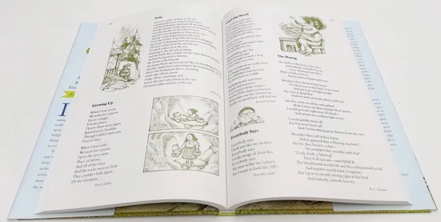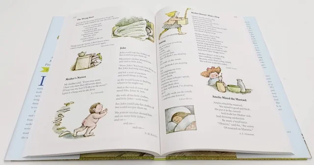 《兰登儿童诗选》内容全,体量大,覆盖面广,选取的诗作非常经典。从作者的角度,有历史上赫赫有名的大诗人,现当代大家熟知的童书新锐作家;从选材的角度,有思想深刻的伟大作品,也有无厘头的顺口溜和打油诗,我们可以读到各种各样有趣味、有哲理的经典作品。